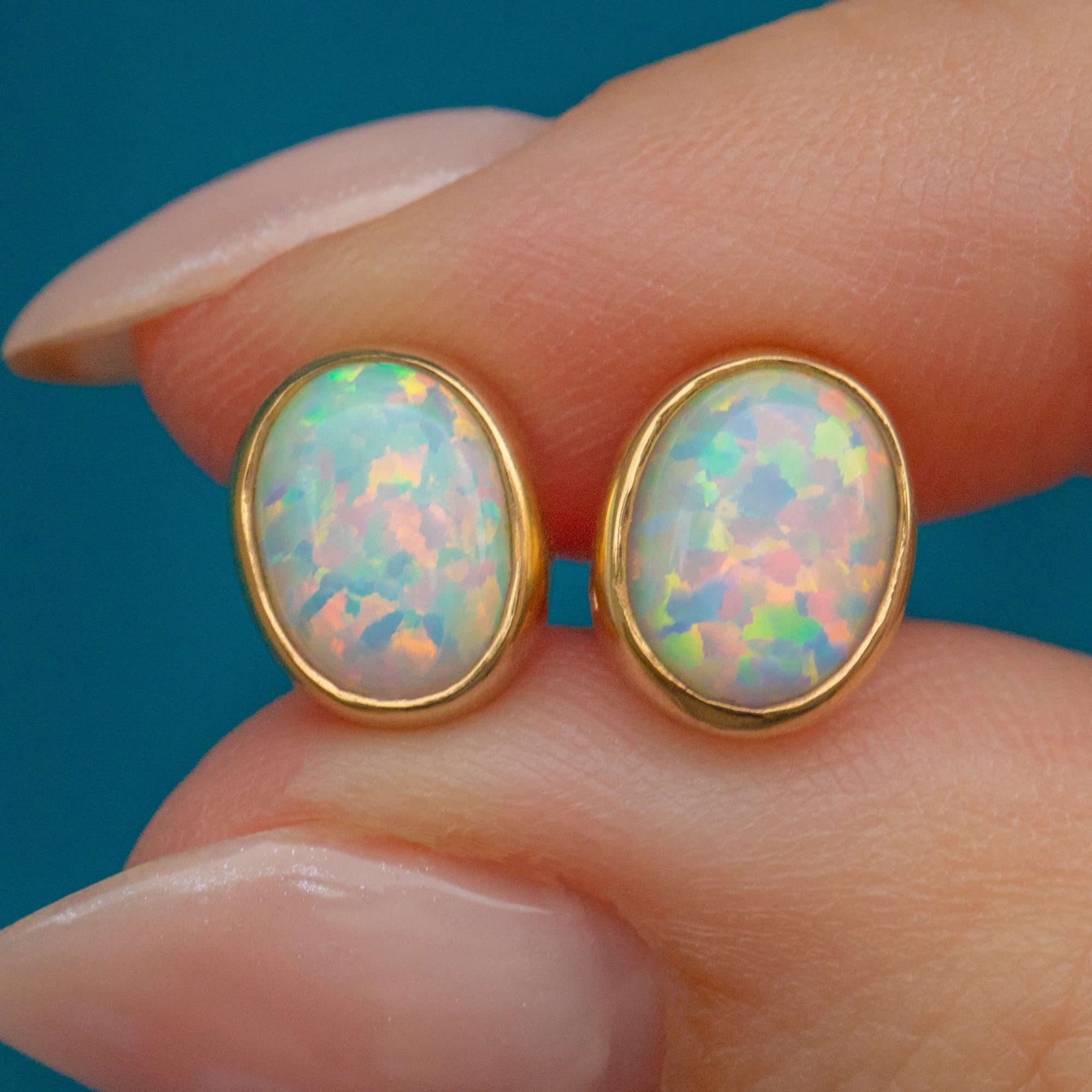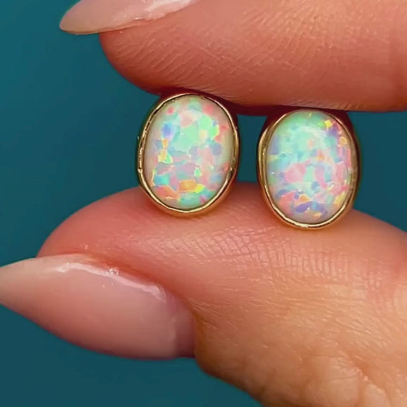 These 9ct Gold Opal bezel stud earrings are sure to wow any onlooker!
