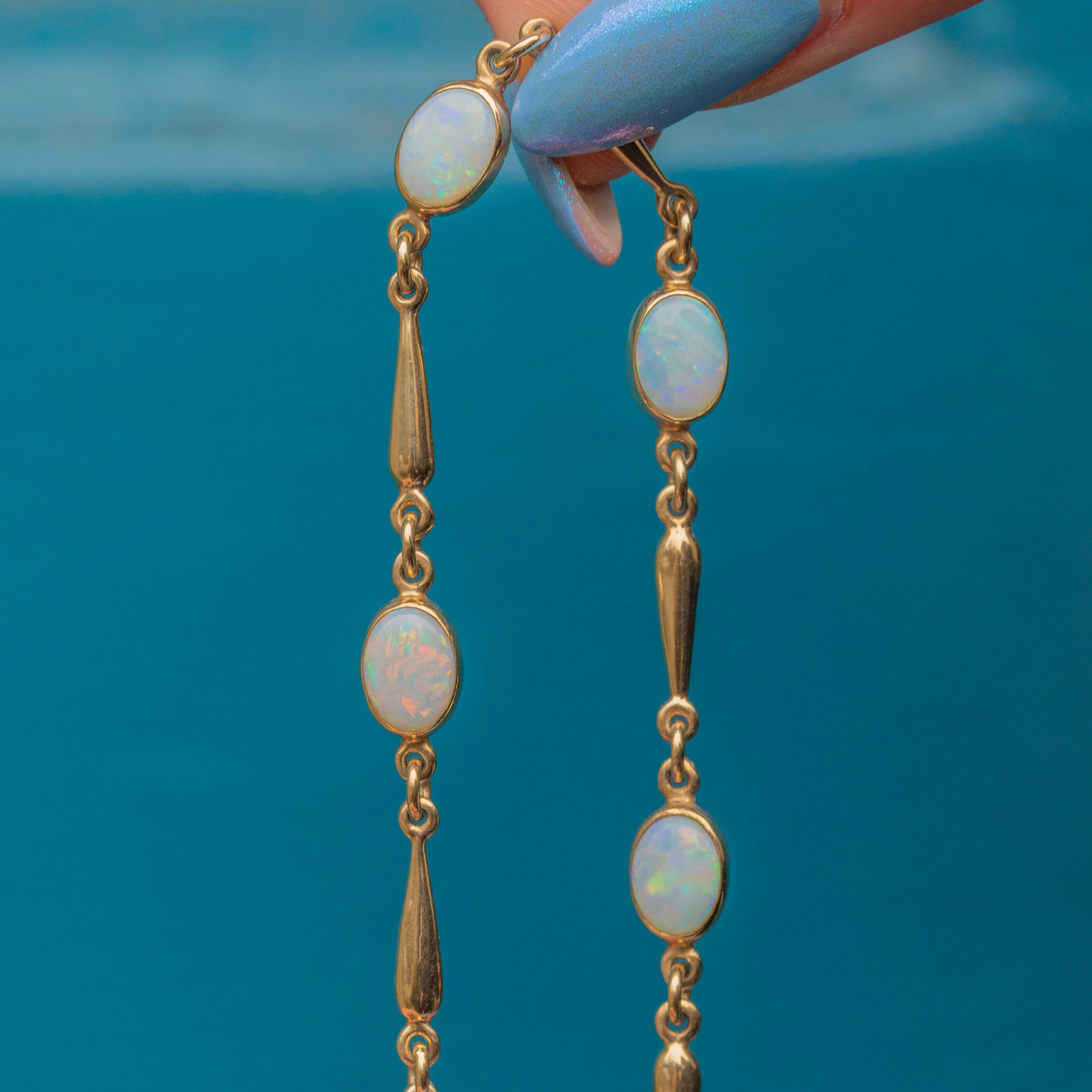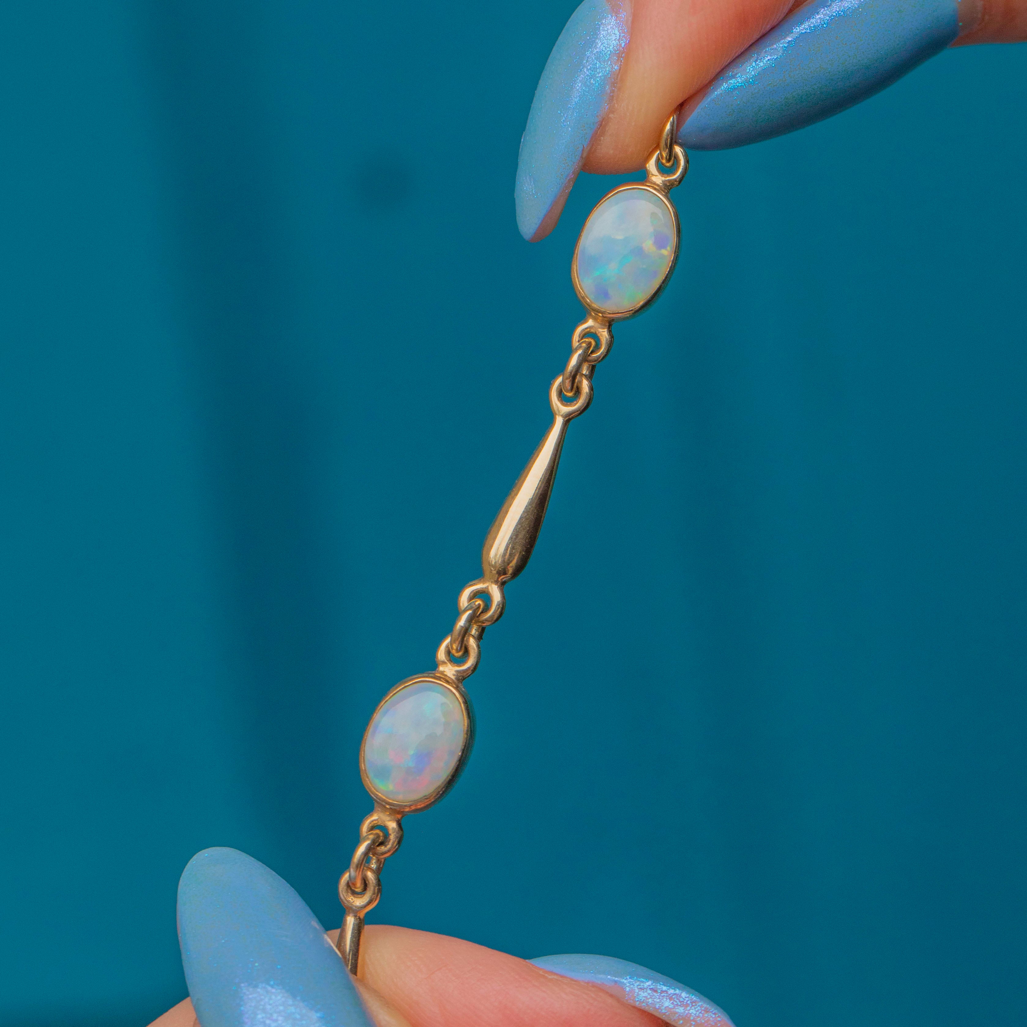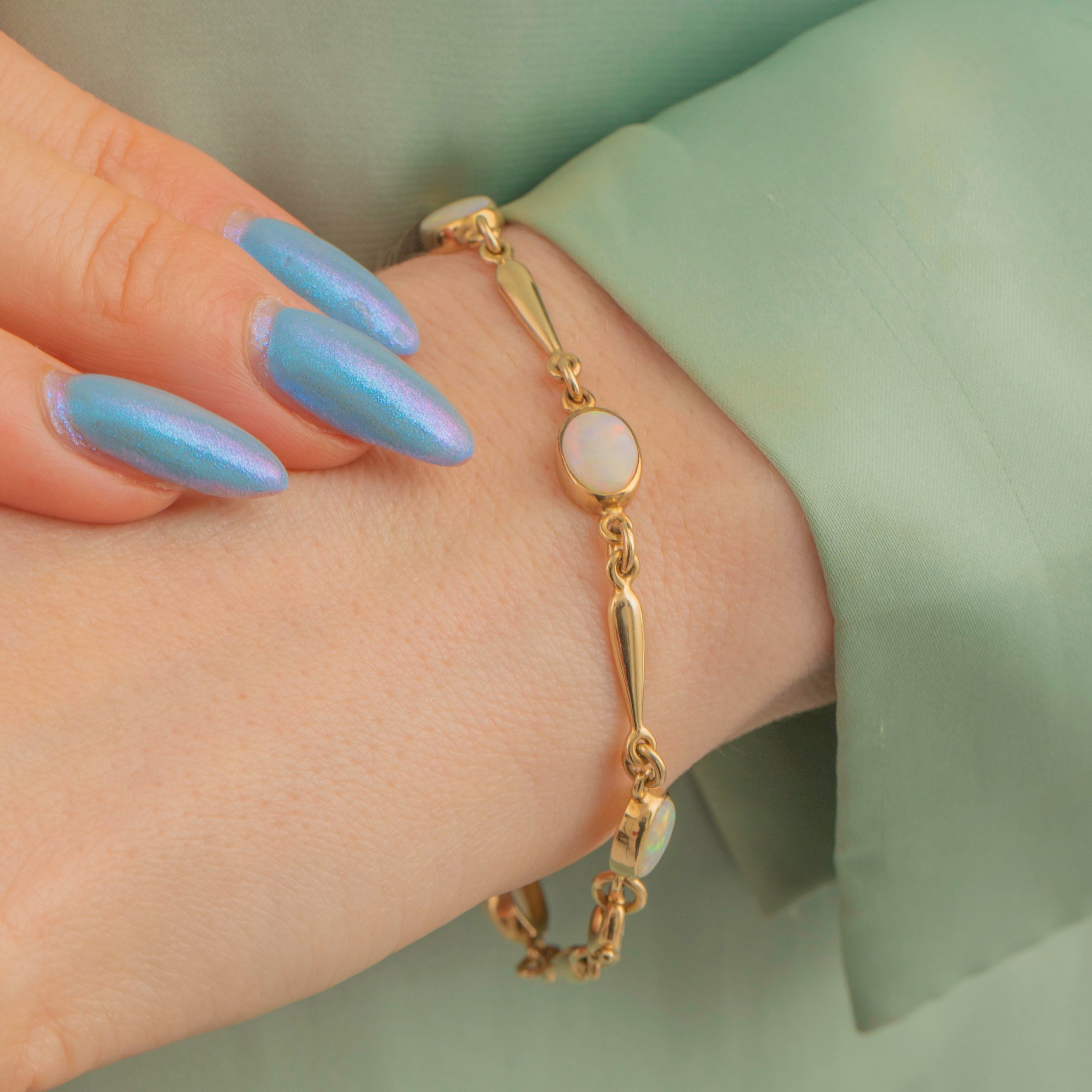 EXCELLENT. This 9ct Gold Opal bracelet is in excellent condition. Each Opal is free from notable signs of wear, sitting securely within its bezel and the bracelet is fully hallmarked to the year 1998. With a secure clasp you can wear this sleek piece of vintage jewellery with absolute confidence!