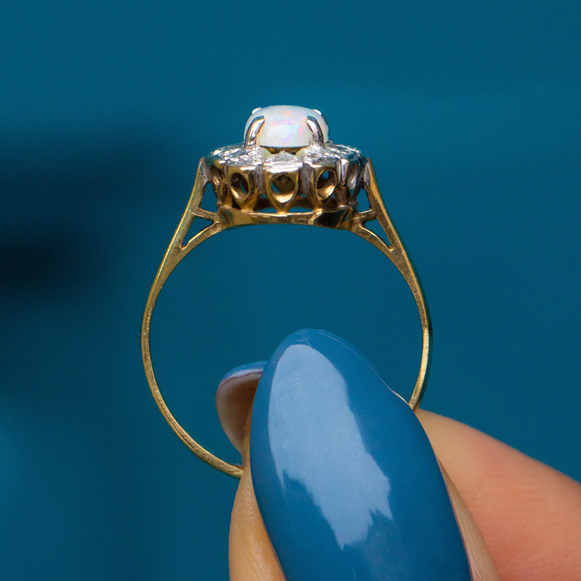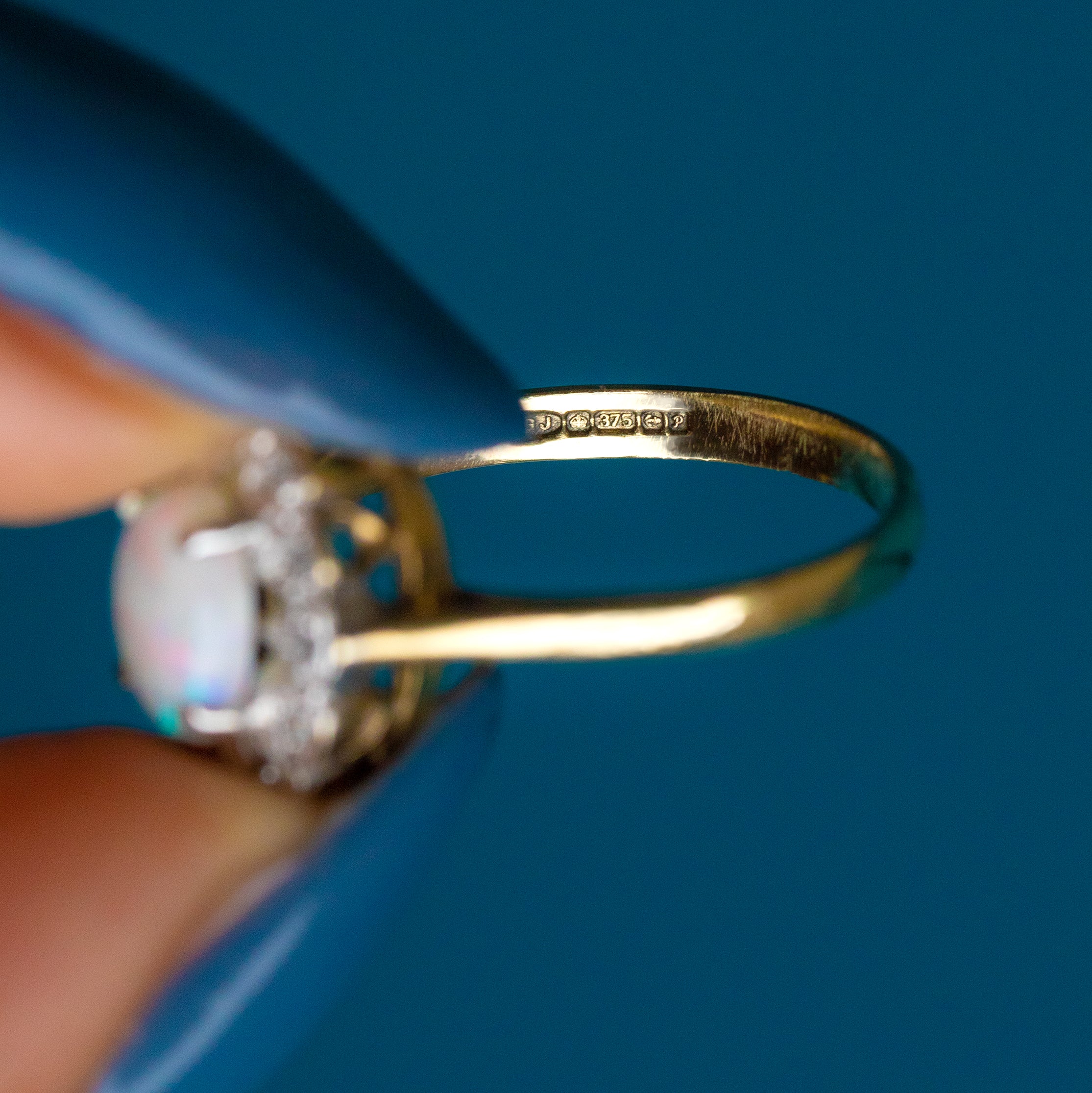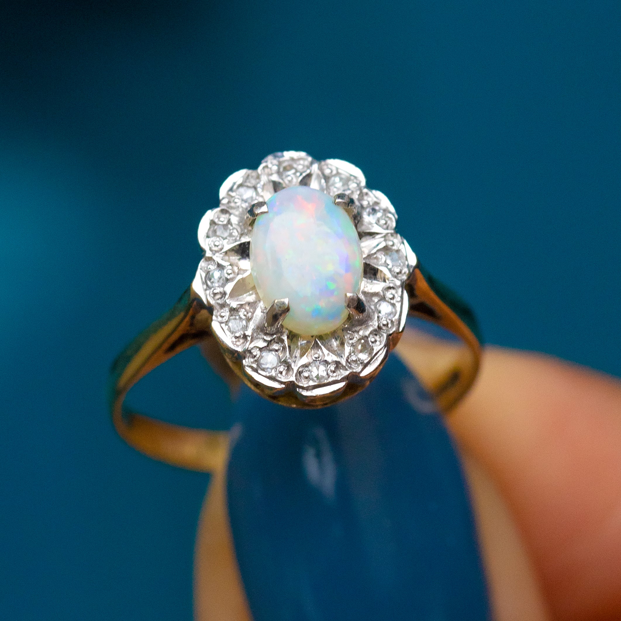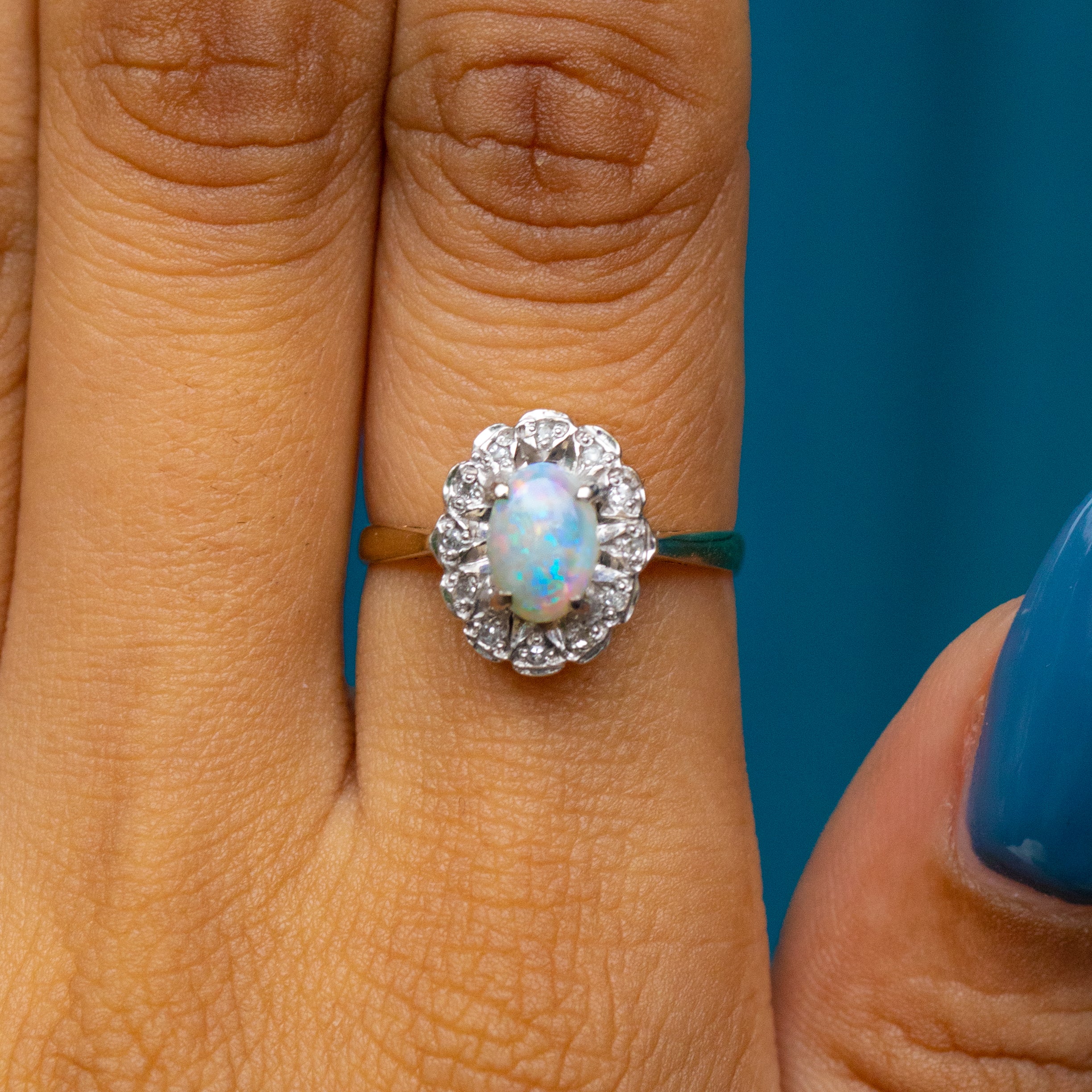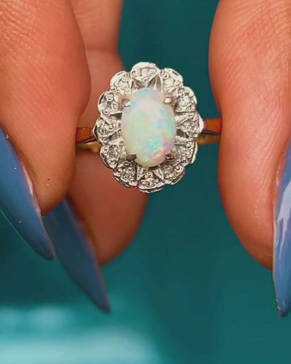 9ct ゴールド オパール ダイヤモンド クラスターリング、0.40ct オパール