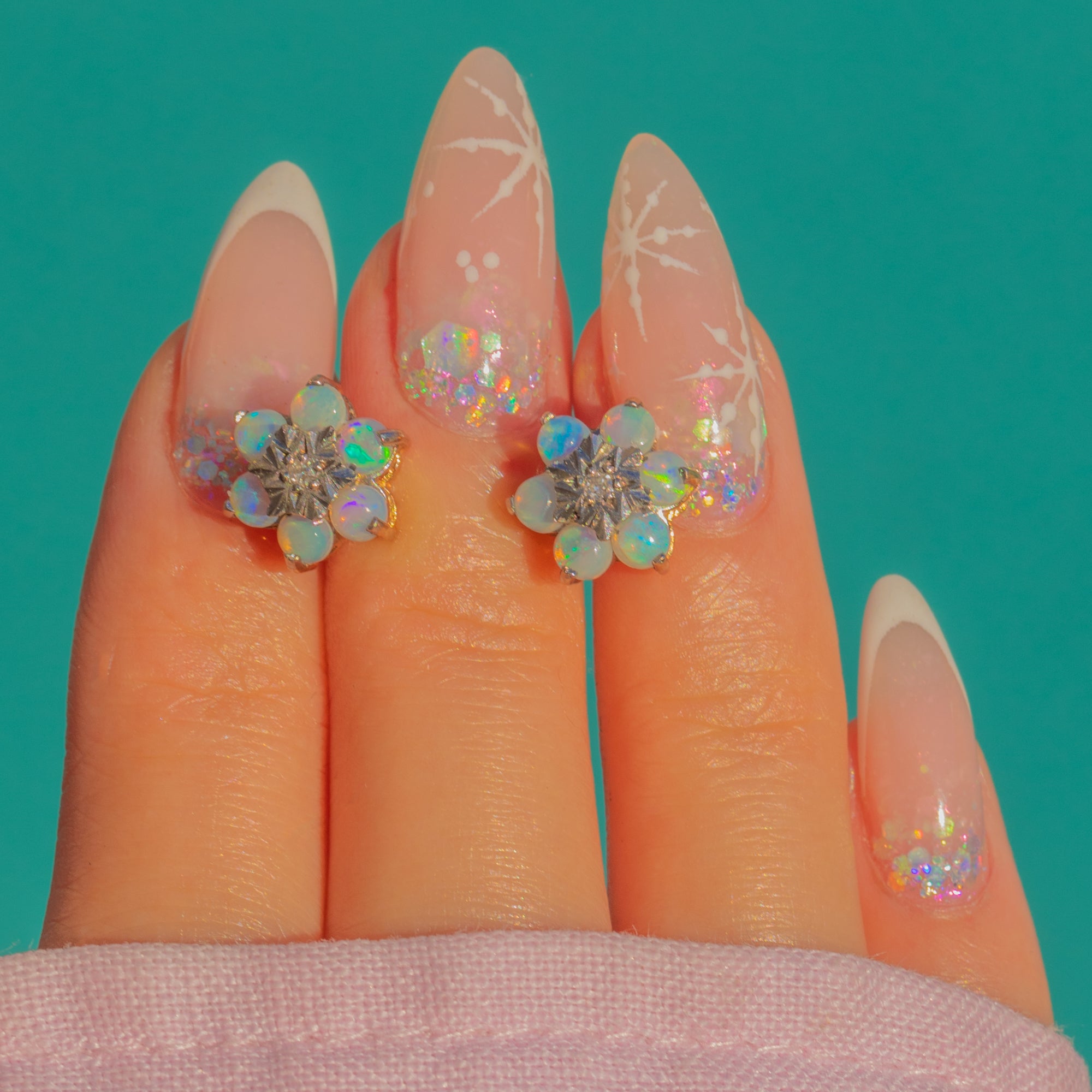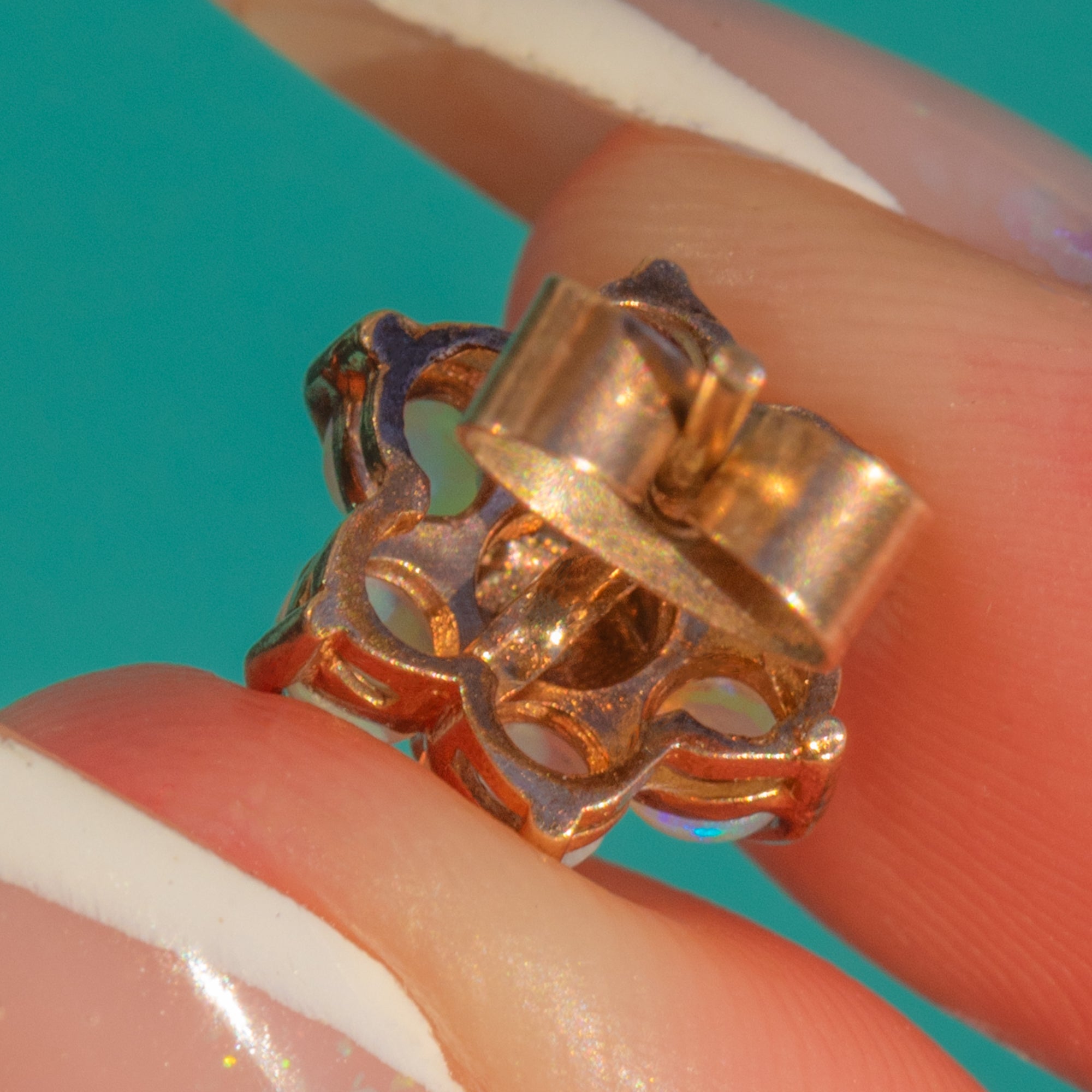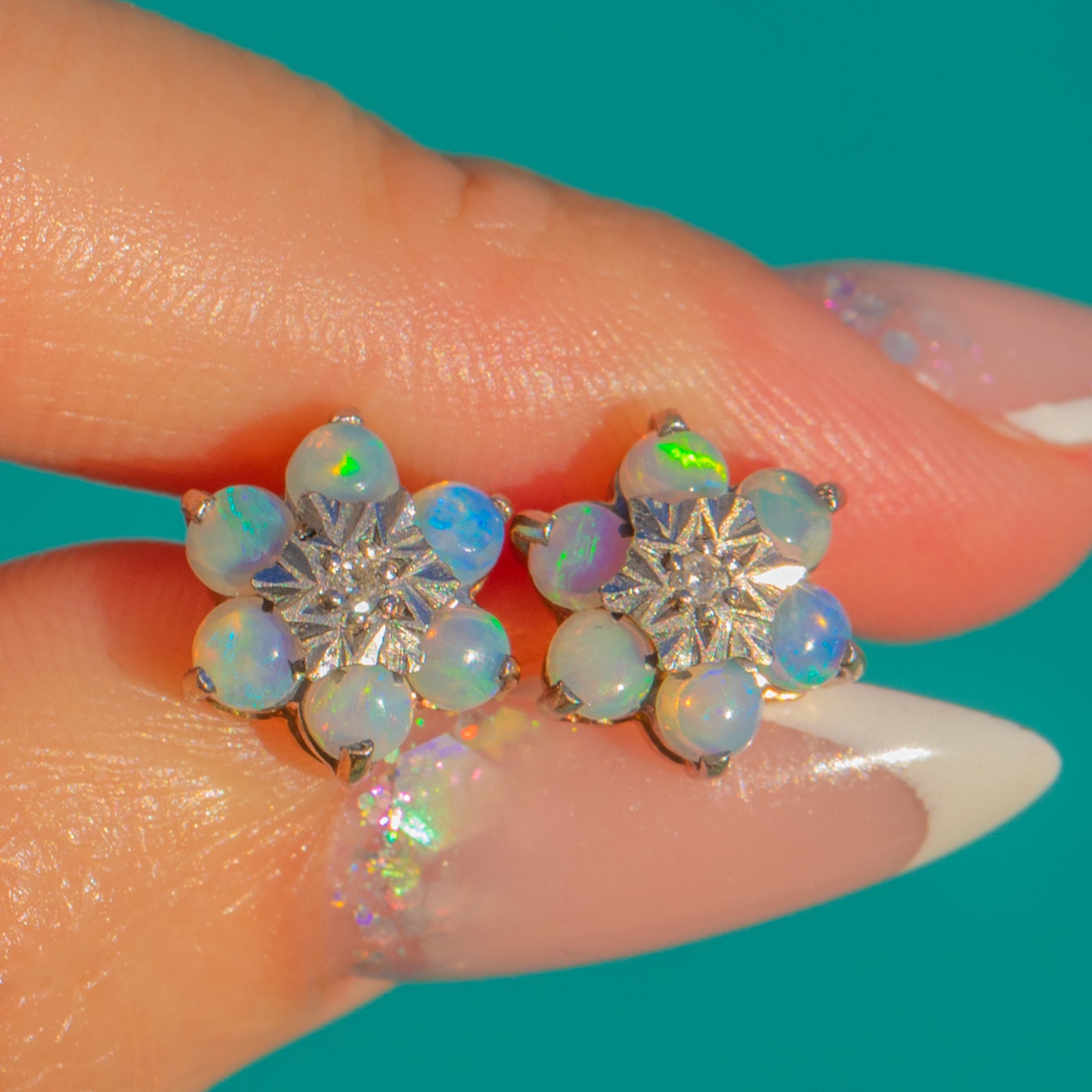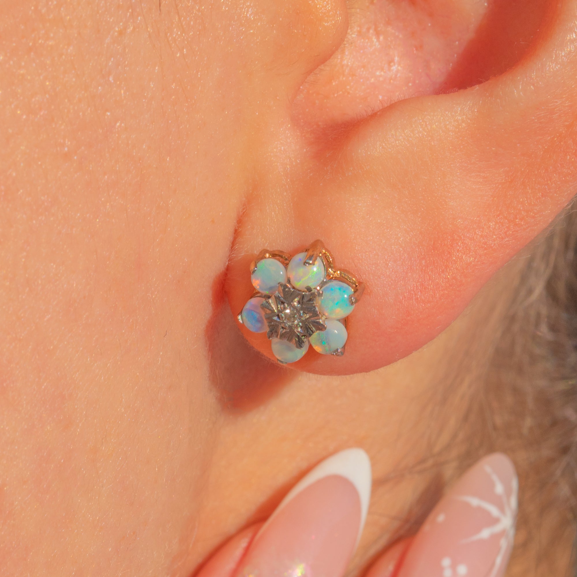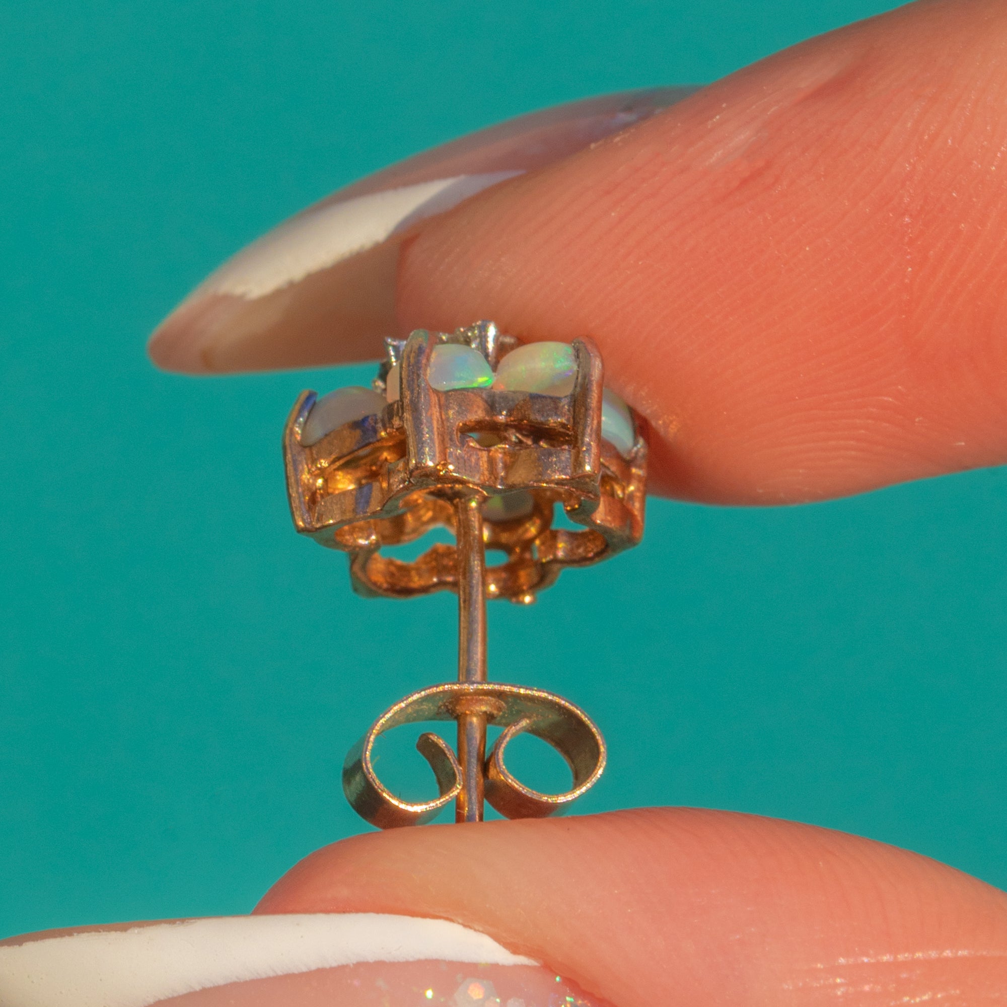 9ctゴールド オパール ダイヤモンド クラスター スタッド ピアス