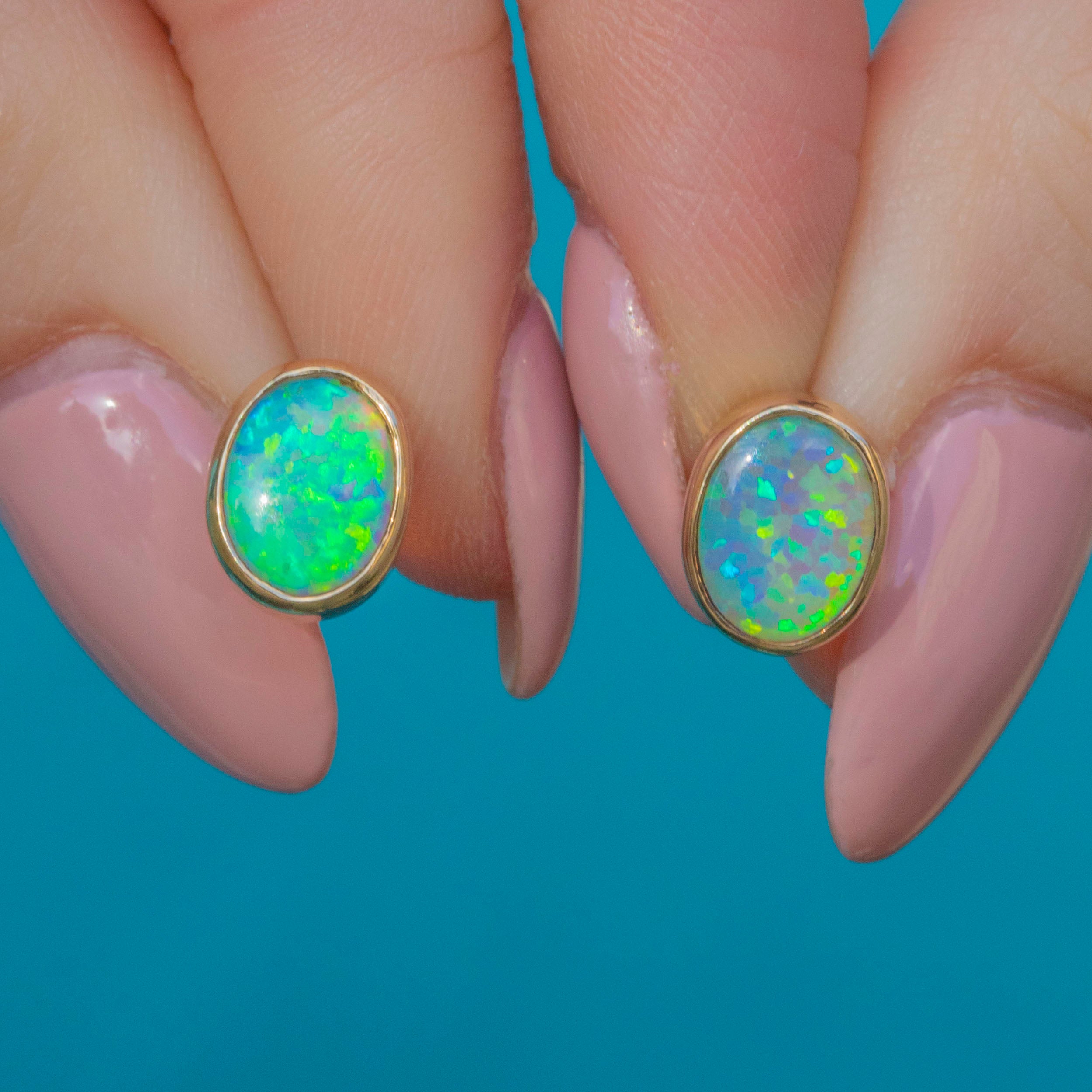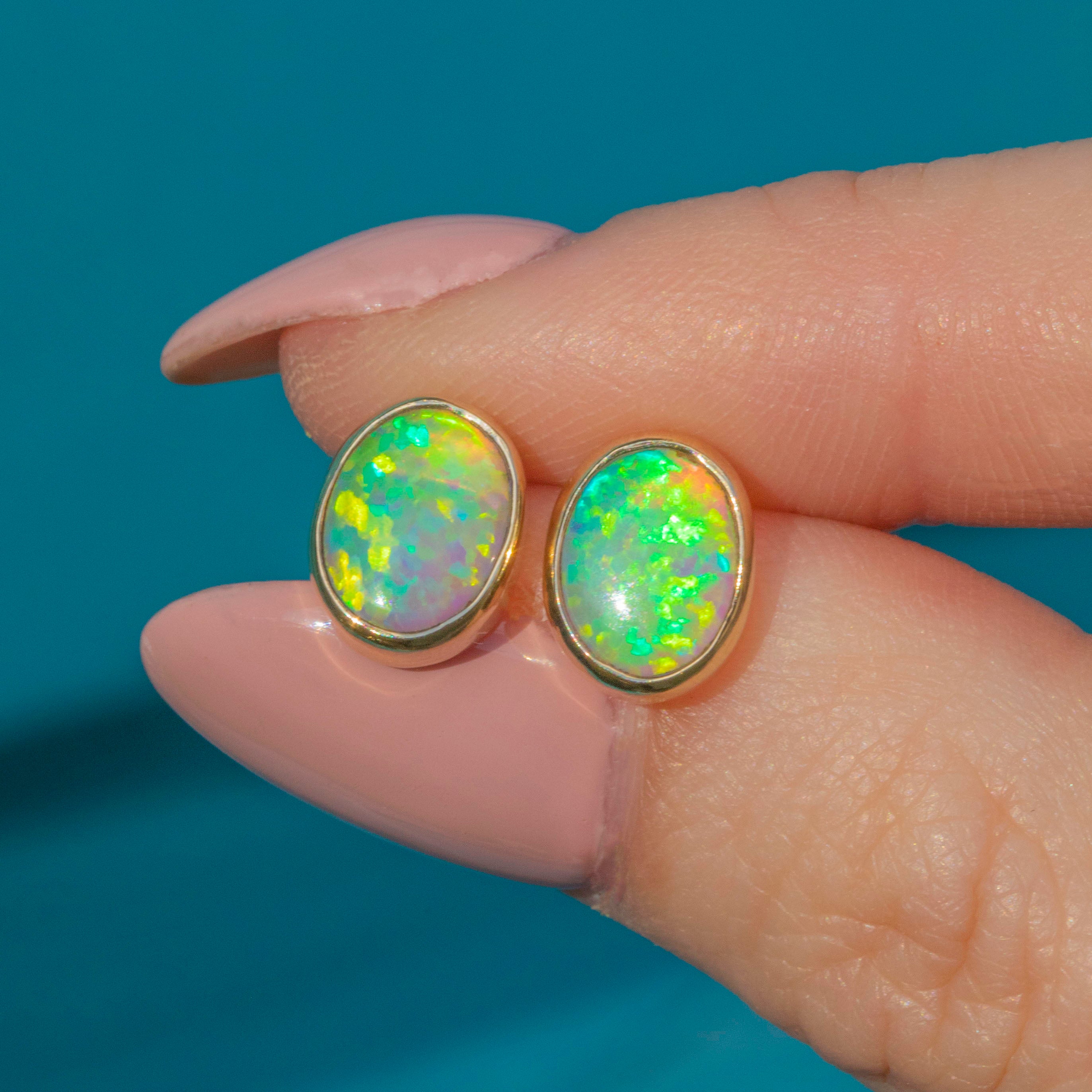 MEASUREMENTS: Opals are 7.5mm long x 5.6mm wide, weighing approx. 0.38ct combined.