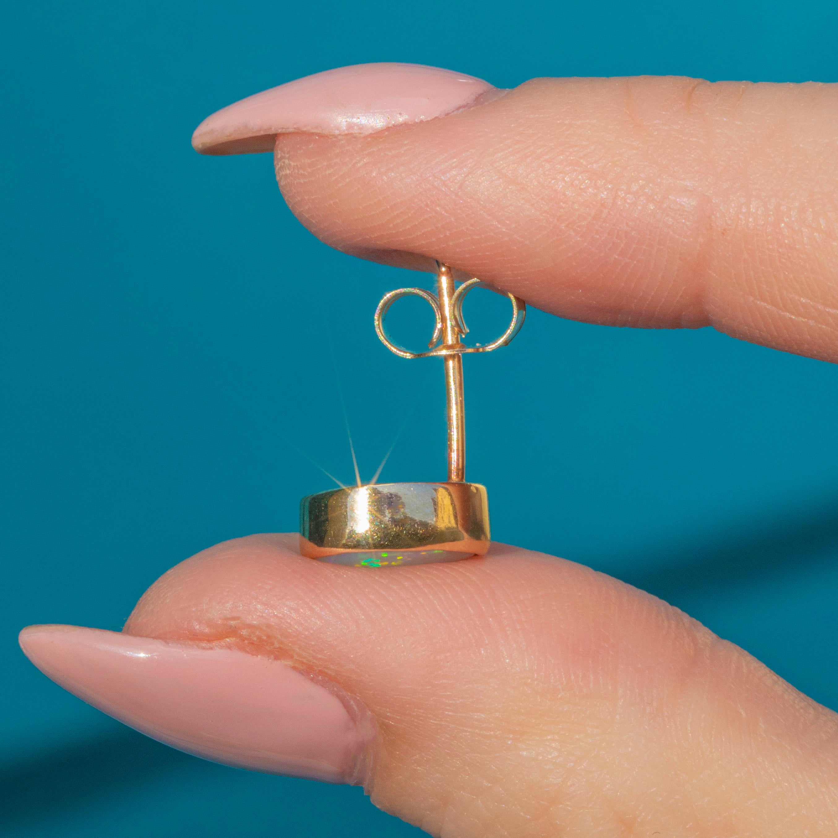 MATERIALS: 9ct Gold, 0.38ct Opals - (lab created. These Opals are real made from silica- the same chemical components and structures as natural Opals but they were created in a laboratory instaed of by mother earth).