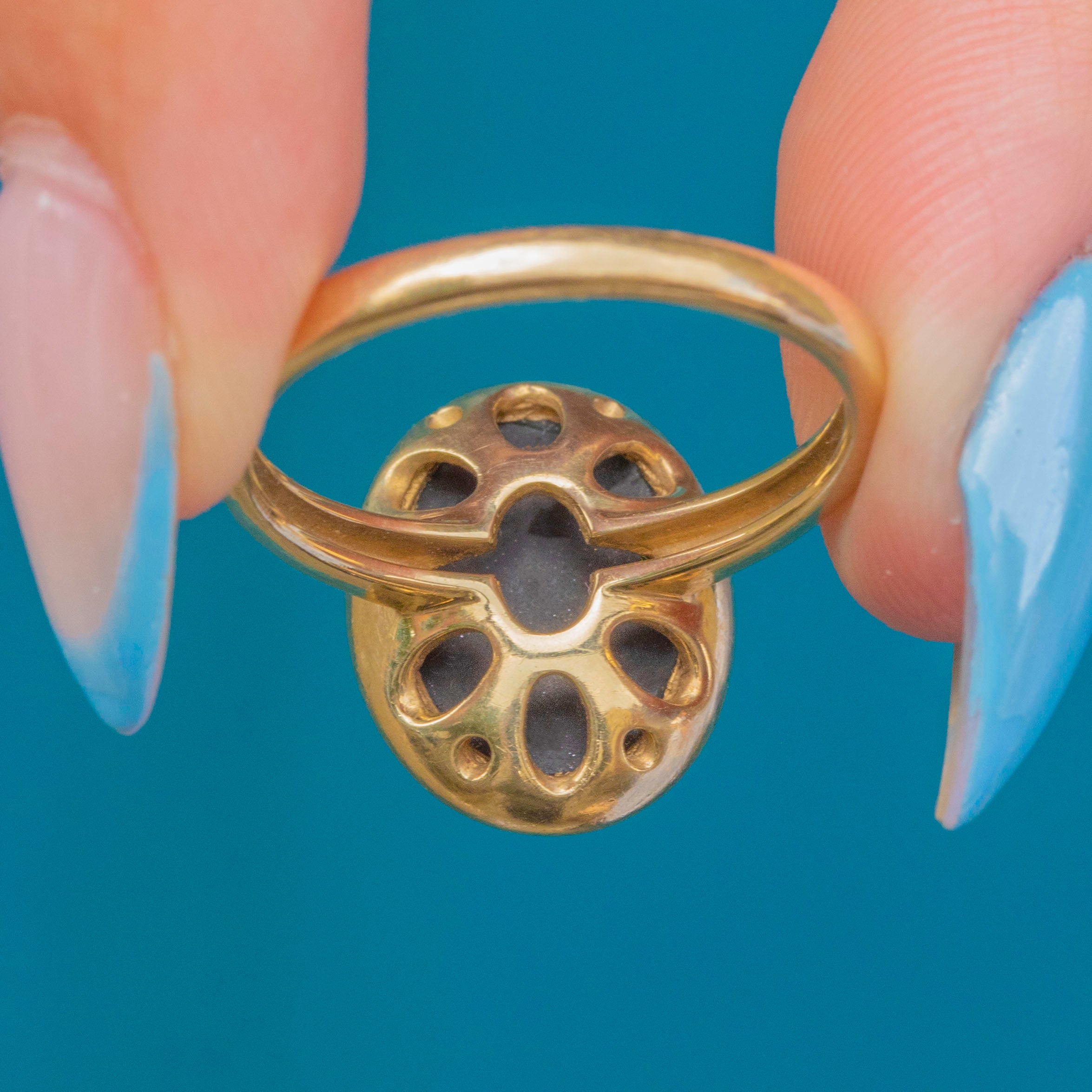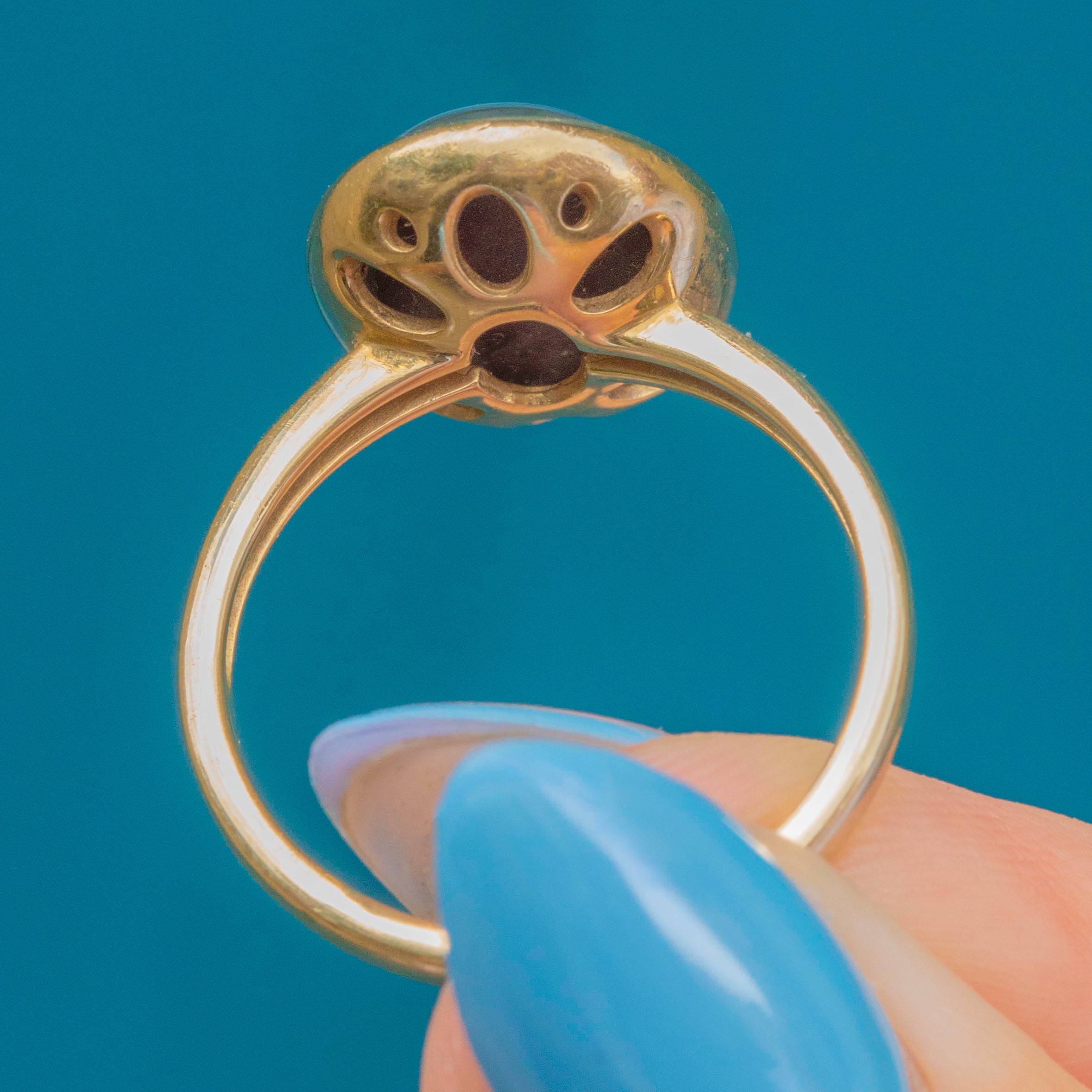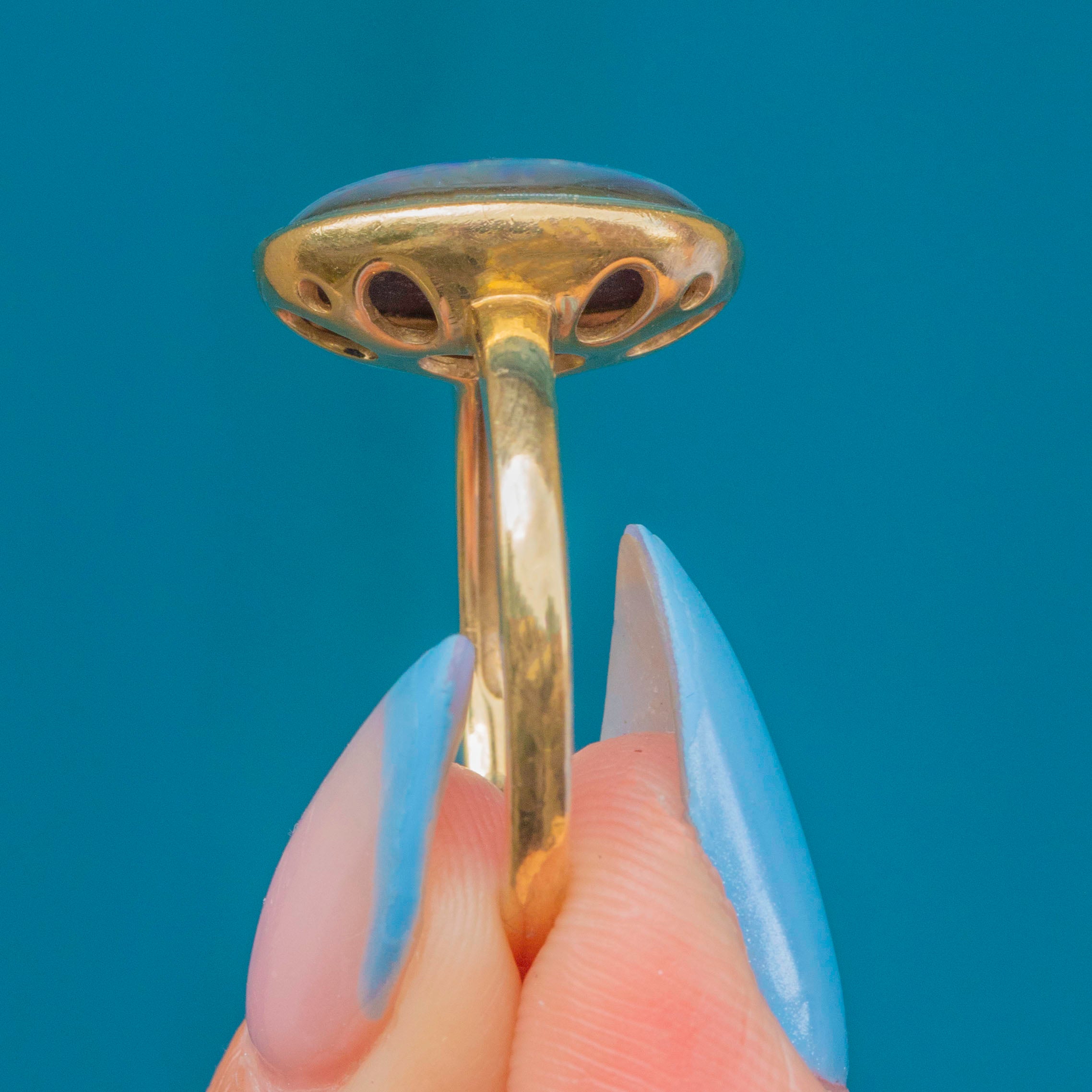 The Opal is encircled by a chunky 9ct Gold bezel, the warmth effortlessly complementing the cool tones of the gemstone. A versatile piece, this vintage Opal ring is soon to become your newest staple item.