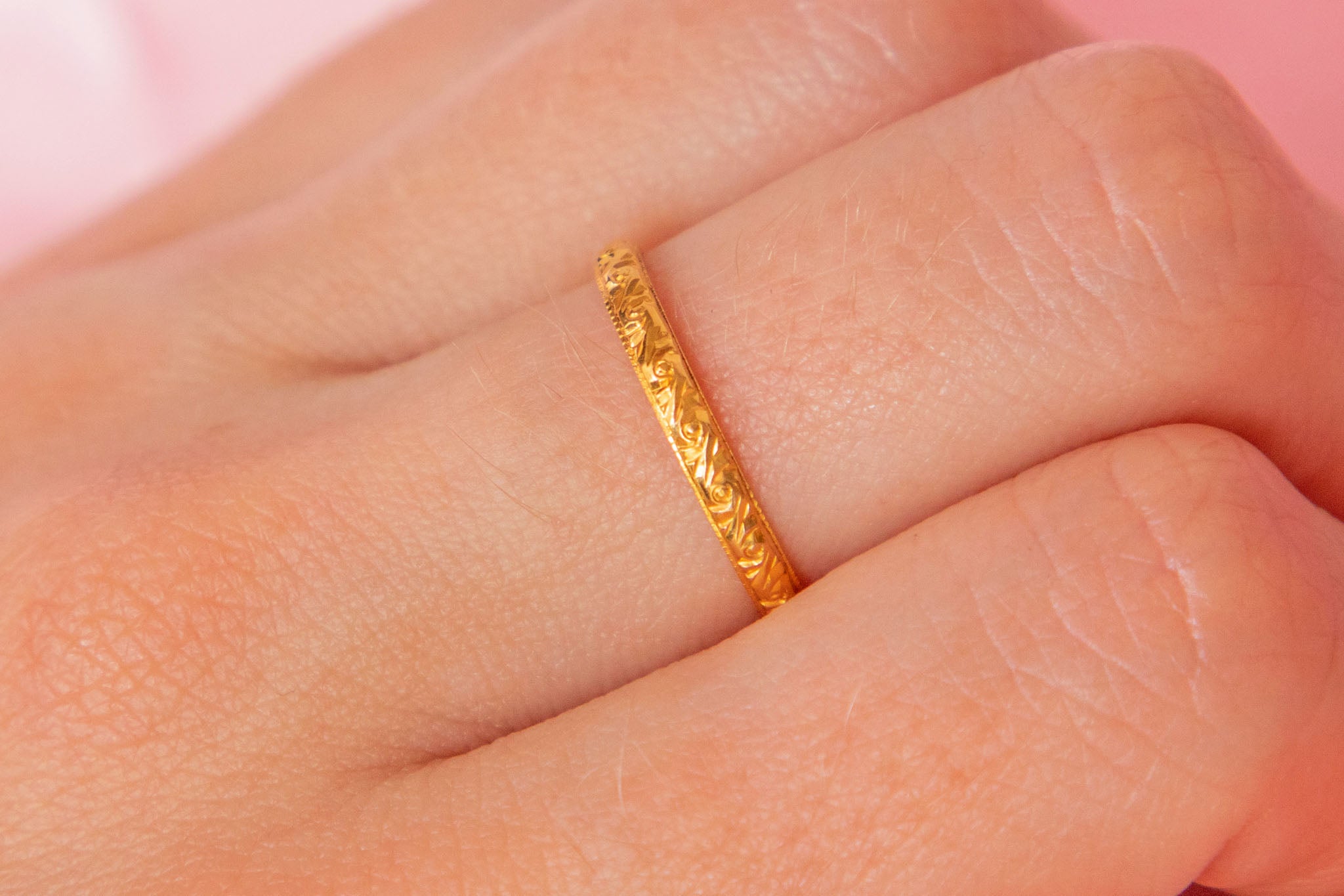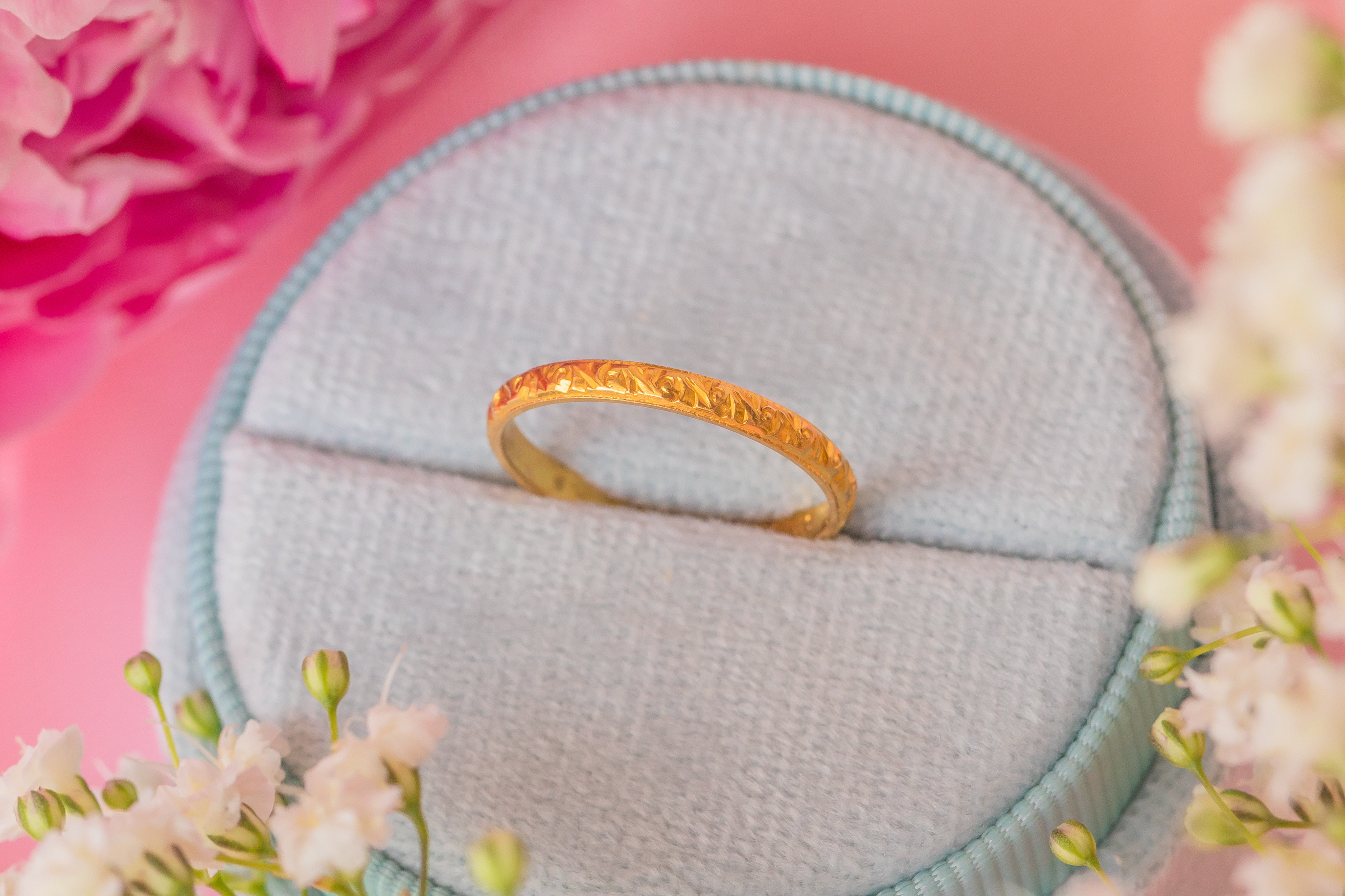 9ctゴールド オレンジブロッサム ウェディングバンド、2mm
