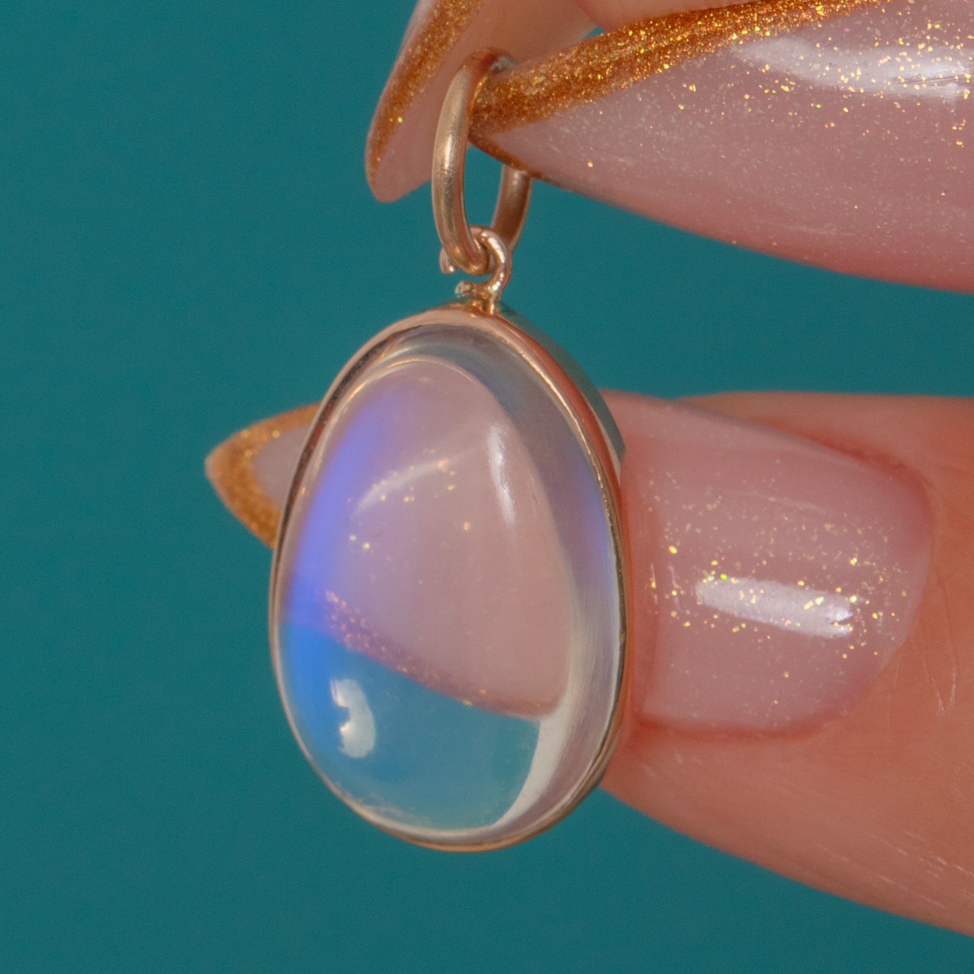 ムーンストーンは長さ13mm×幅9mm、重さ約 2.44ct。