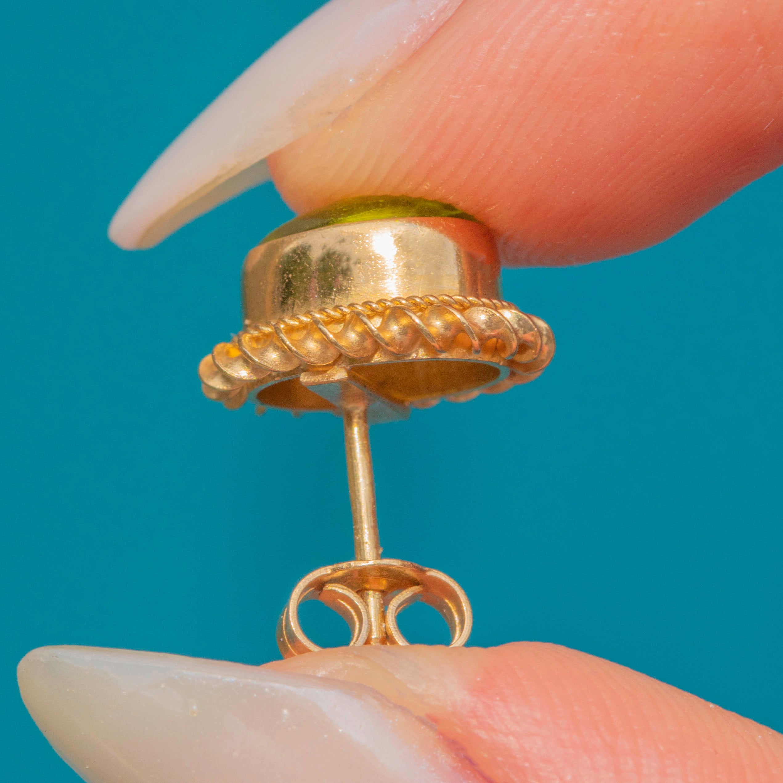 The fresh, lime green Peridot gems are set in a 9ct Gold bezel, bordered by twisted rope details, adding a striking finish. Perfect for all-day, everyday wear, these Gold stud earrings will provide your collection with a welcome pop of colour!