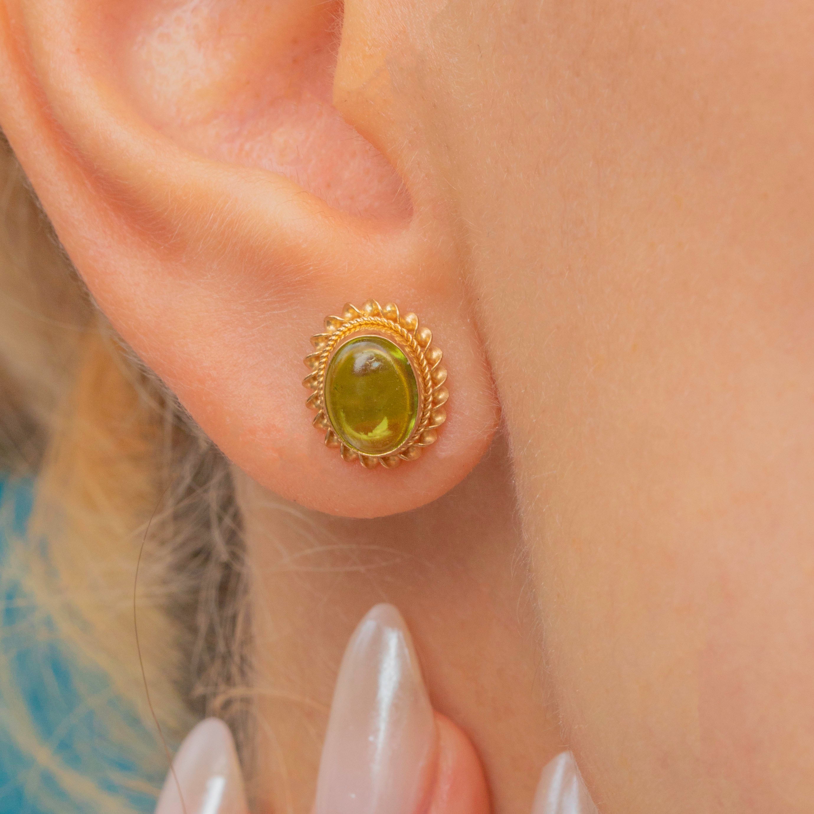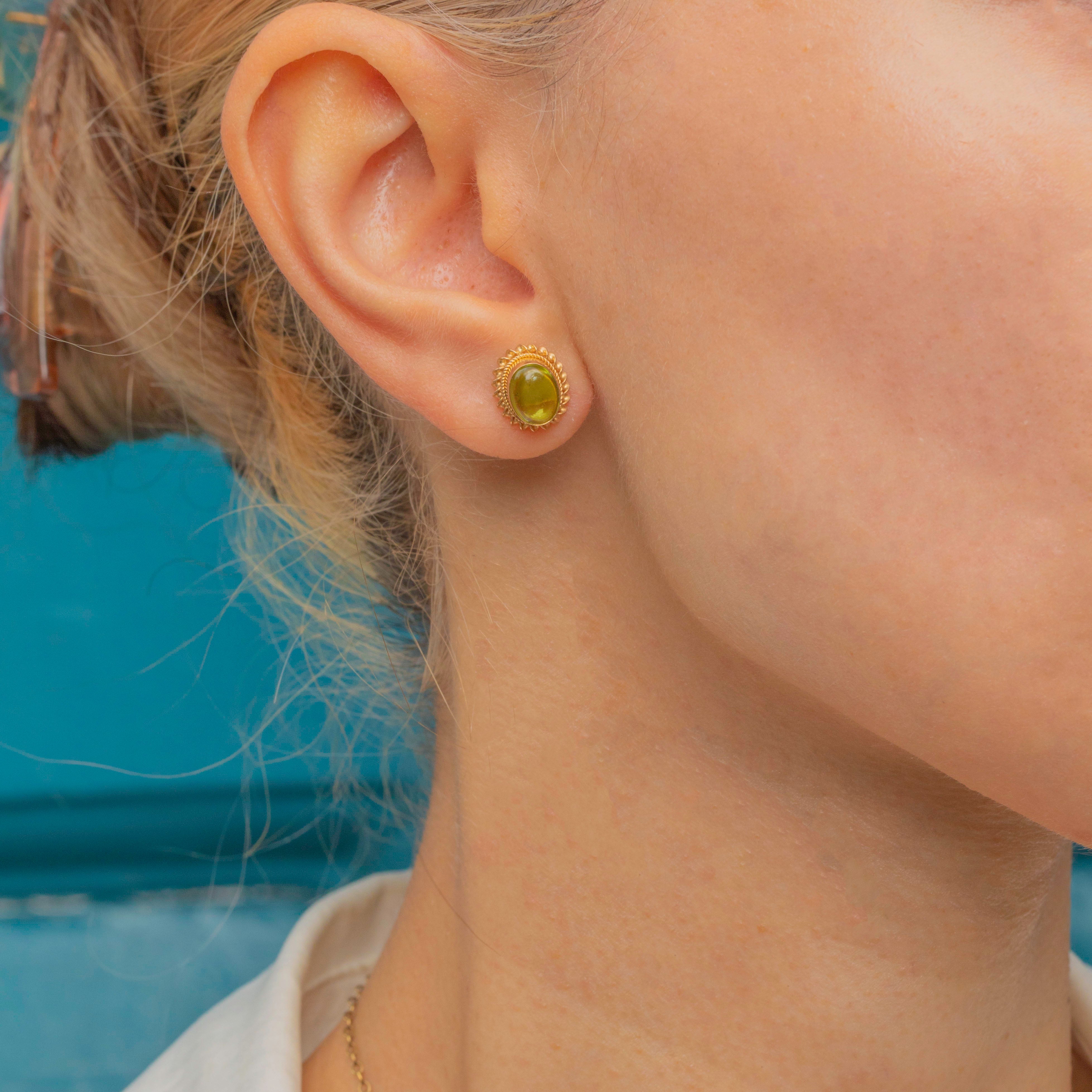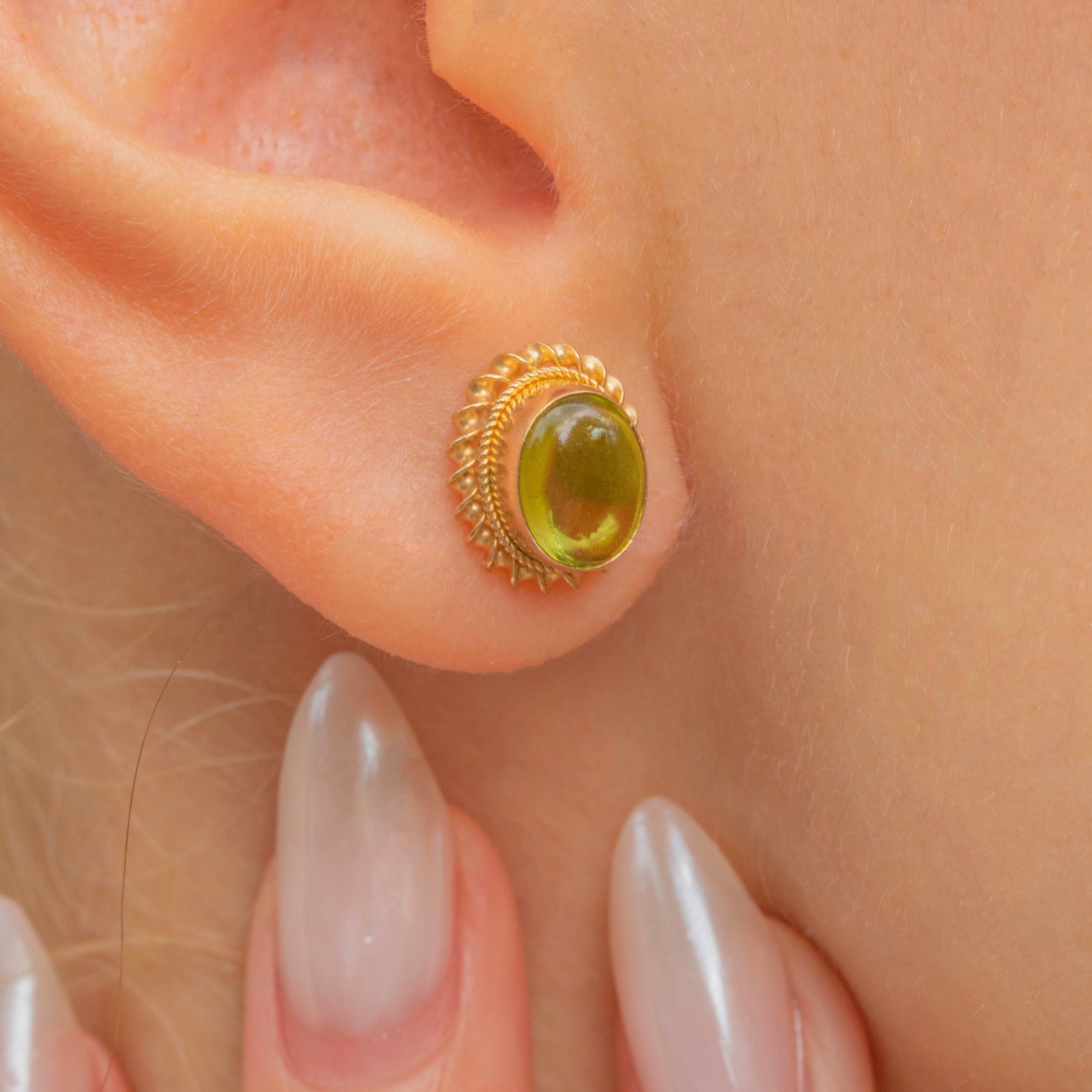 9ct Gold Peridot Cabochon Stud Earrings
