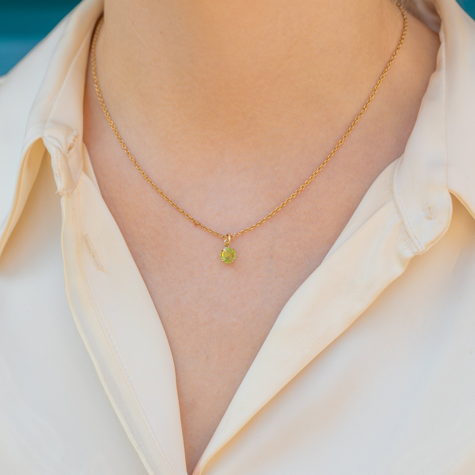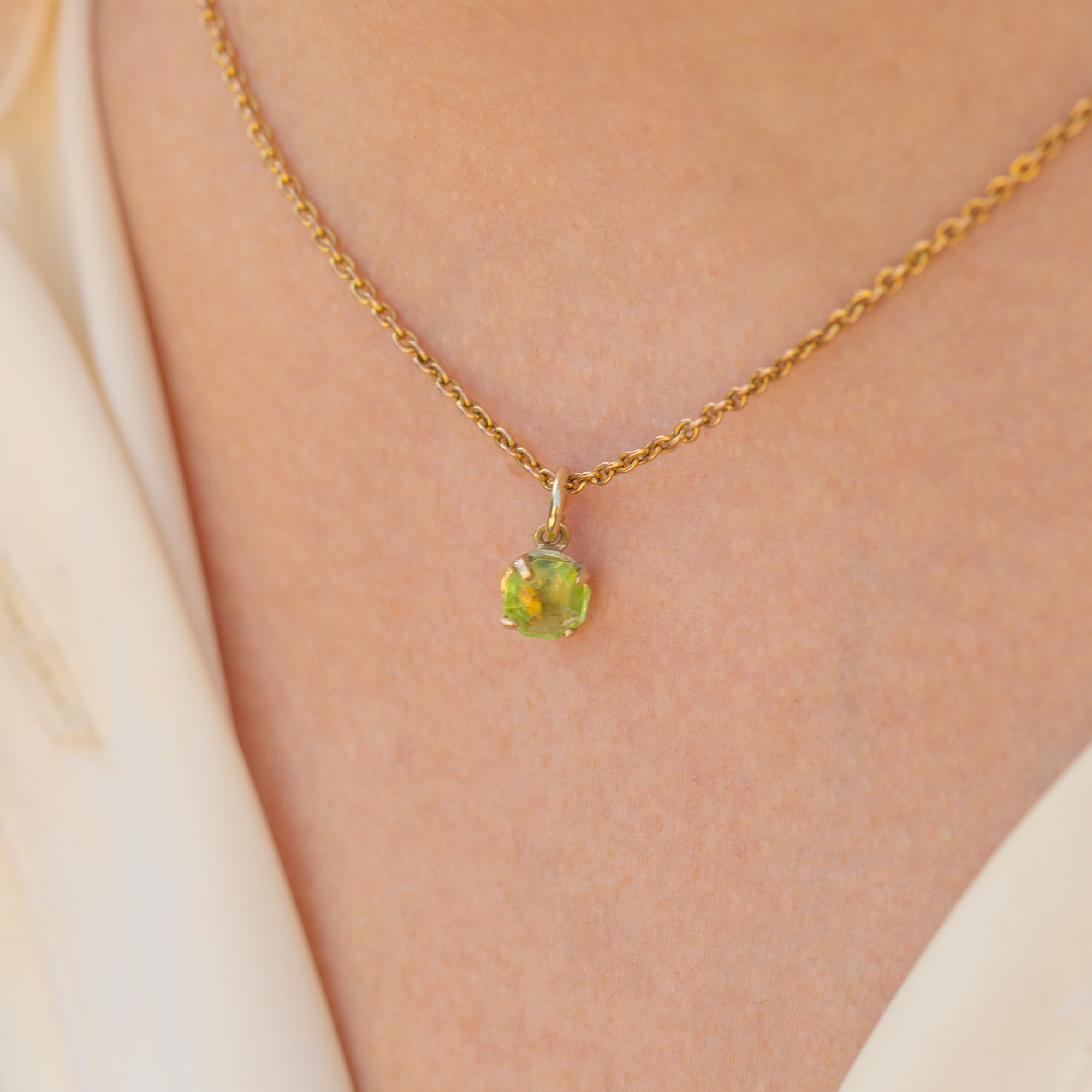 Add some zest to your repertoire with this 9ct Gold Peridot charm! With vivid lime hues swimming around the faceted form of her 0.75ct Peridot, she will add a punchy kick to any antique chain you suspend her form.