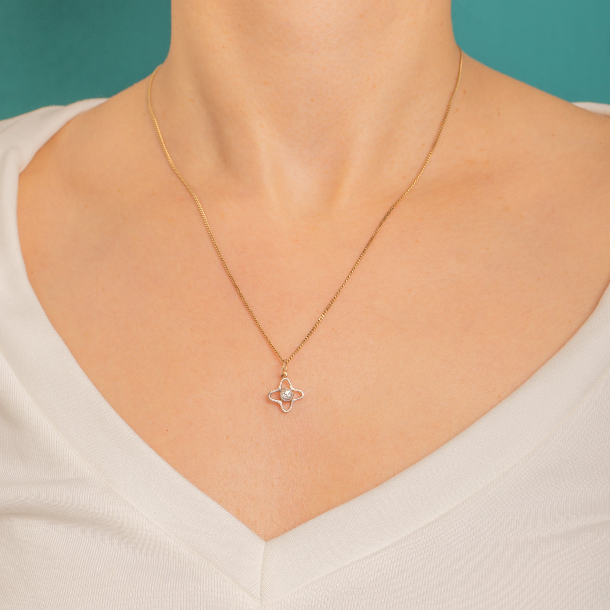 A petite celestial treasure from the Victorian era, this Star charm is crafted in 9ct Gold and Platinum and centred by a sparkling 0.25ct Old Mine Cut Diamond. The Diamond’s charming antique facet pattern dances with light, lending that signature old-world fire in a dainty, easy-to-wear silhouette.