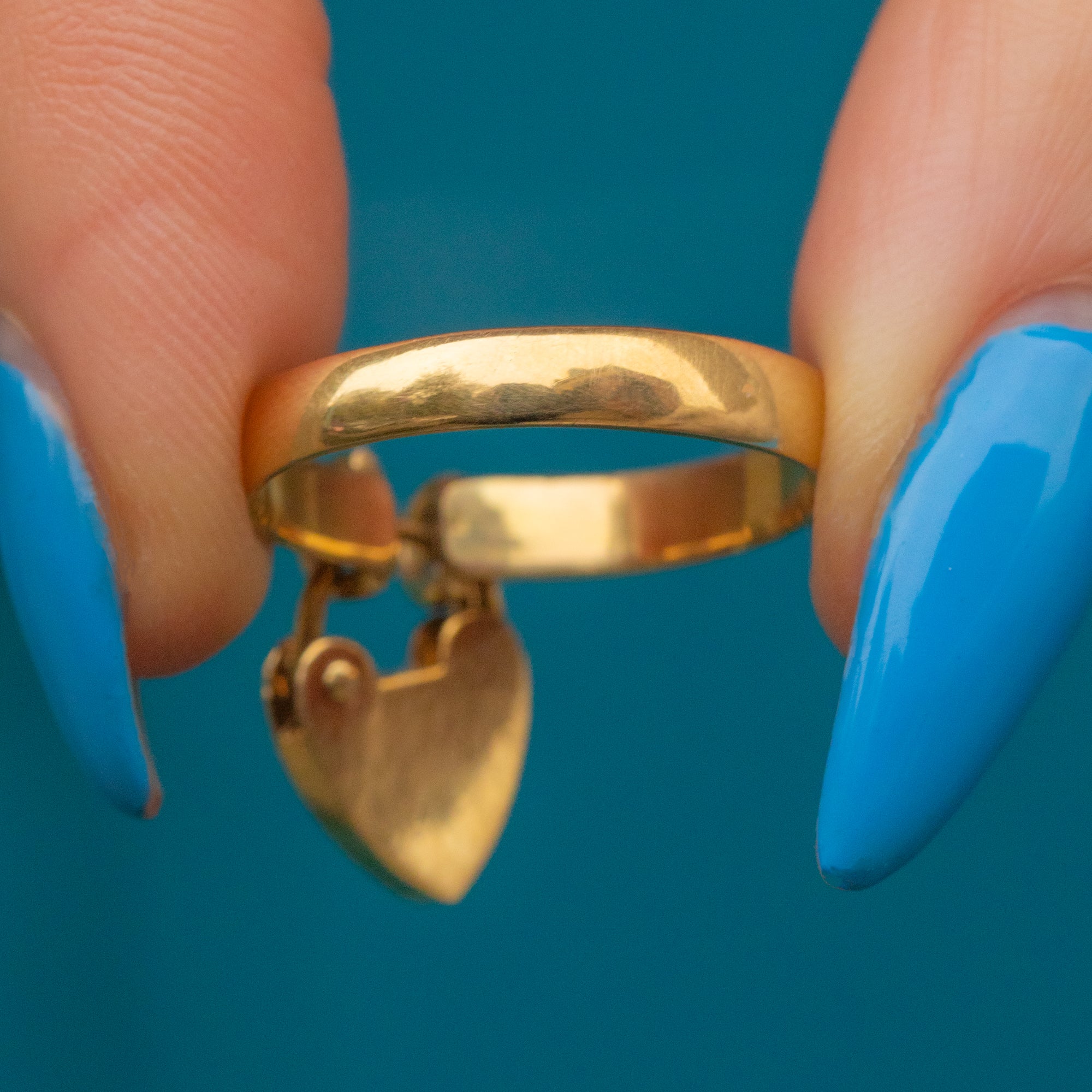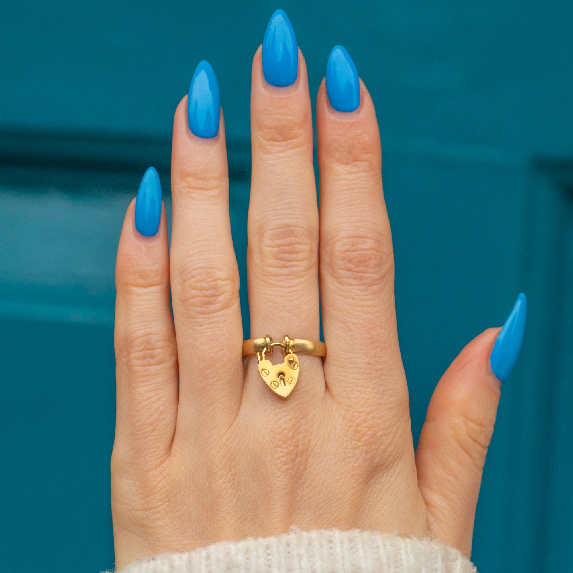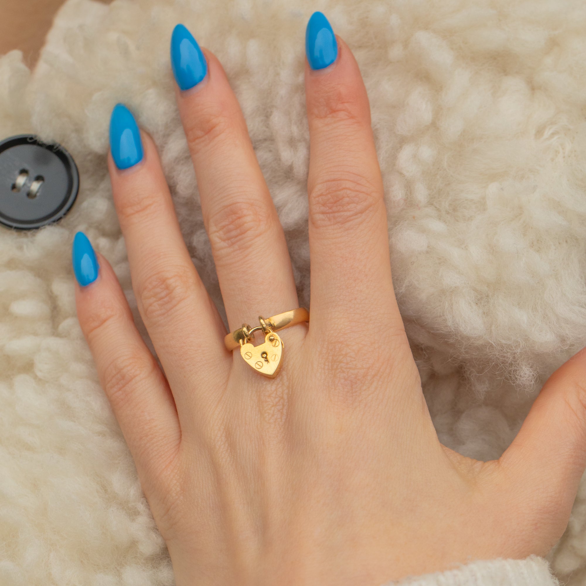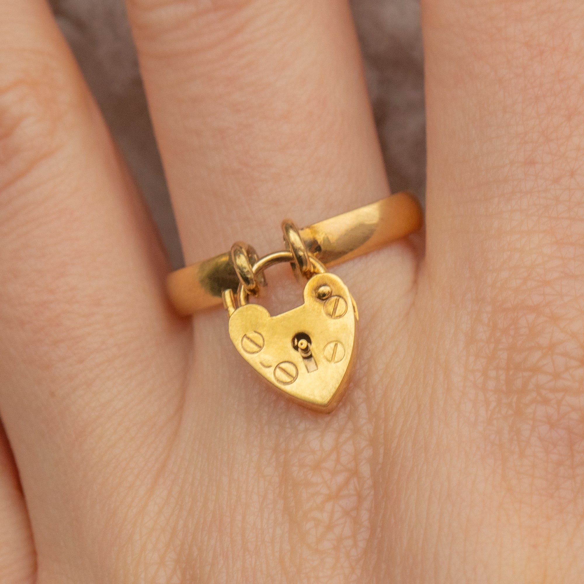 This exquisite 9ct Gold ring, complete with a heart padlock charm, is a timeless piece you won't want to take off! Meticulously crafted from buttery 9ct Gold, this ring features a stunning heart-shaped padlock, symbolising eternal love and commitment.