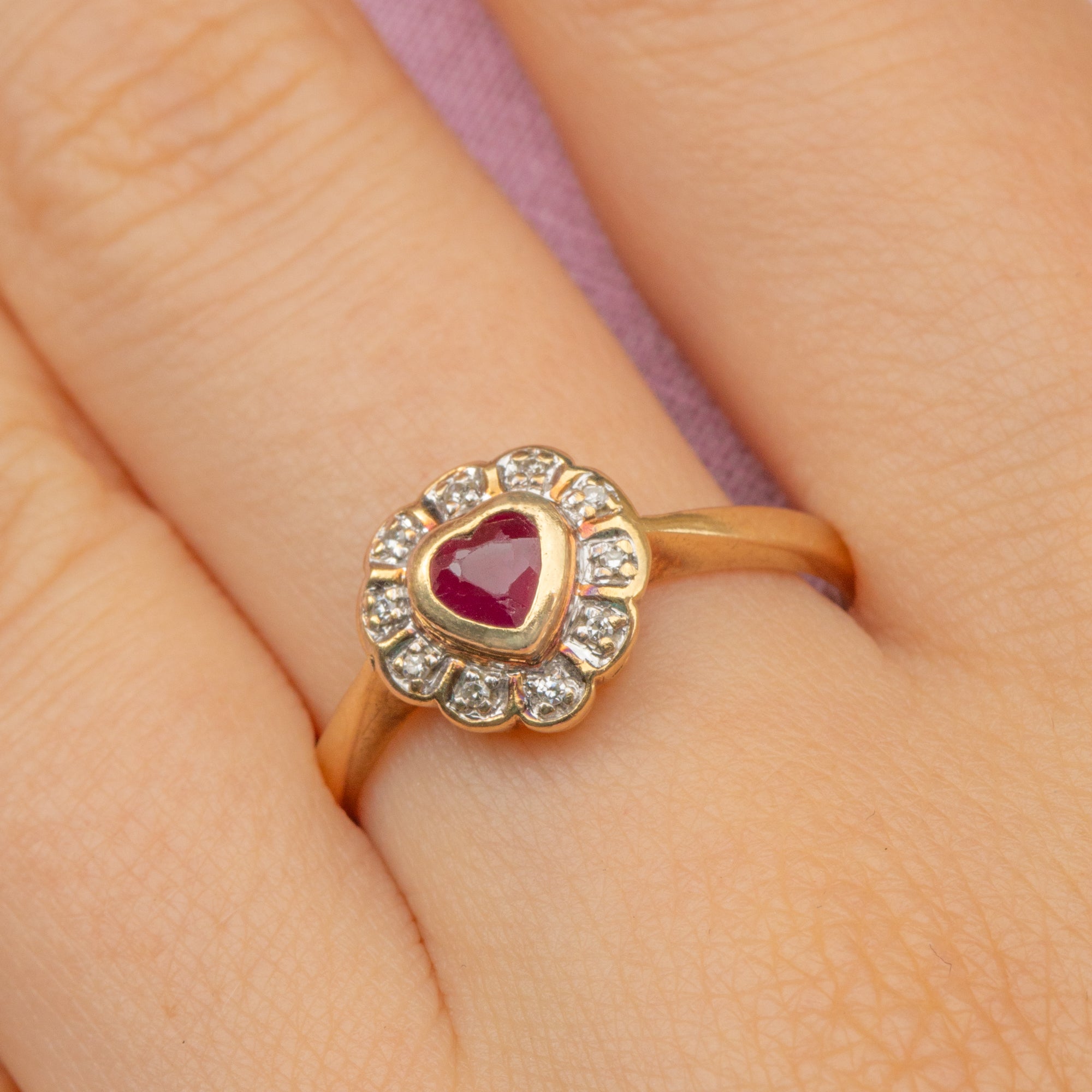 We have found heaven in the form of this 9ct Gold Ruby Diamond heart ring! Bursting with romantic charm, she homes a deep pink Ruby that will capture the hearts of anyone lucky enough to lay eyes on her, surrounded by a sea of scintillating Diamonds.