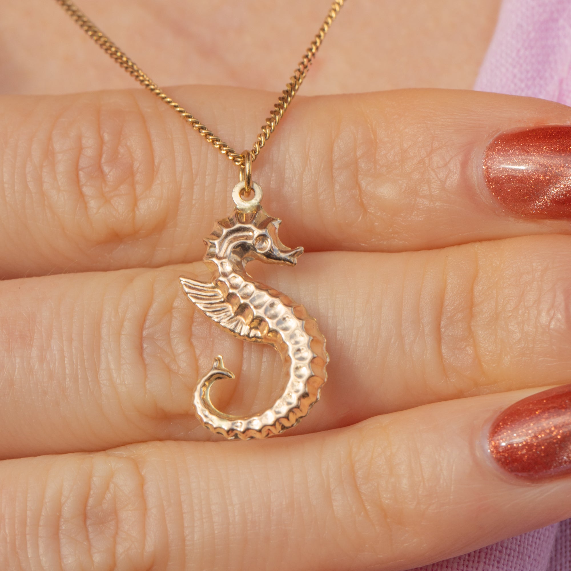 EXCELLENT. This 9ct Gold seahorse pendant is in excellent condition. Her Gold is bright and the detail have remained defined. With a secure jump ring, you can wear this vintage pendant with the utmost confidence!