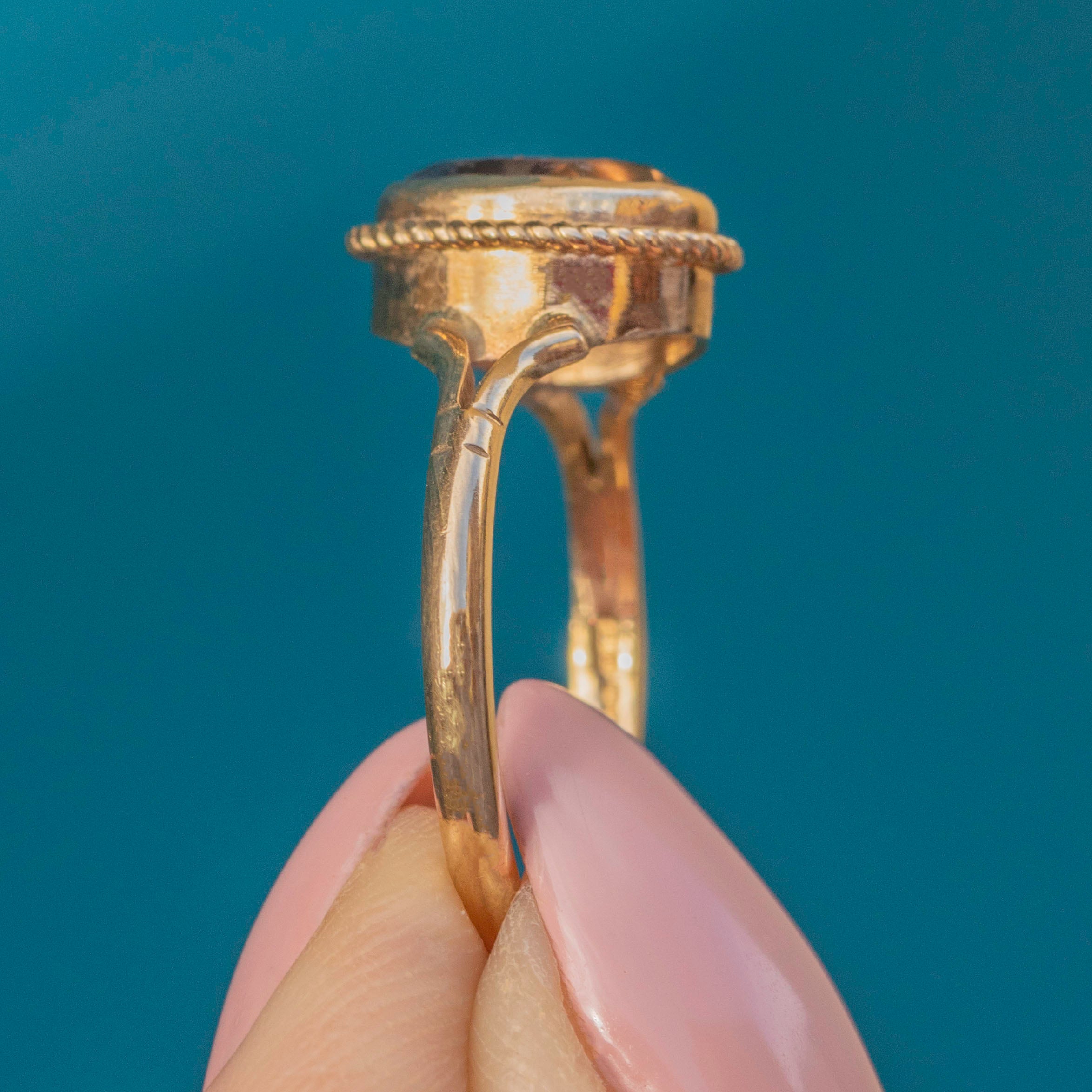 The Smokey Quartz provides wonderful finger coverage and will bestow a beautiful accent of colour to an outfit. Crafted from solid 9ct Gold, the Quartz is framed by a rope border and flanked by striking tapered shoulders giving this ring an elegant finish.