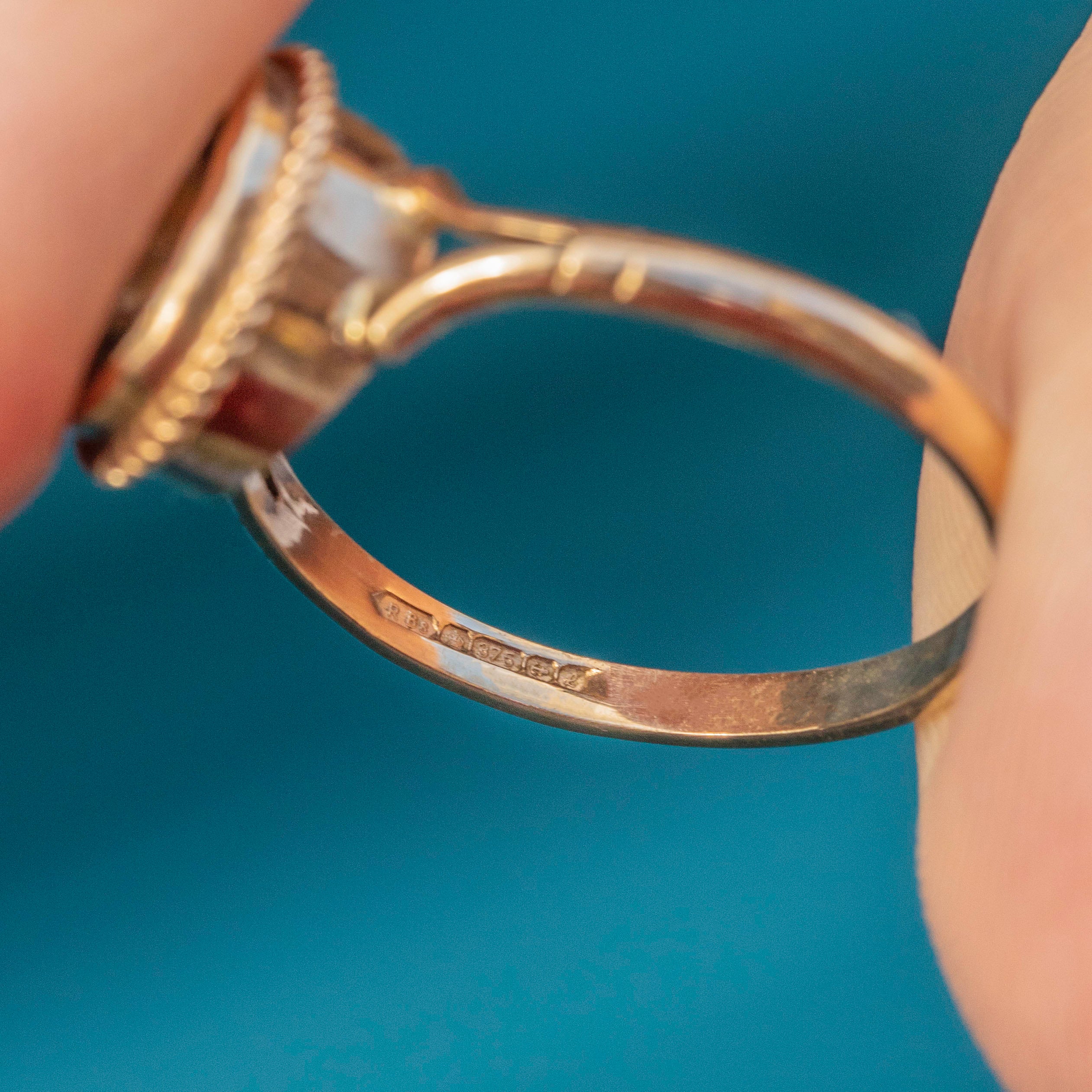EXCELLENT. This 9ct Gold Smokey Quartz ring is in excellent condition. The gemstone is securely within her bezel setting and is free from any chips or scuffs. The Gold is buttery and smooth and fully hallmarked to the year 1985. She is ready to wear, straight from your pink Lillicoco box!