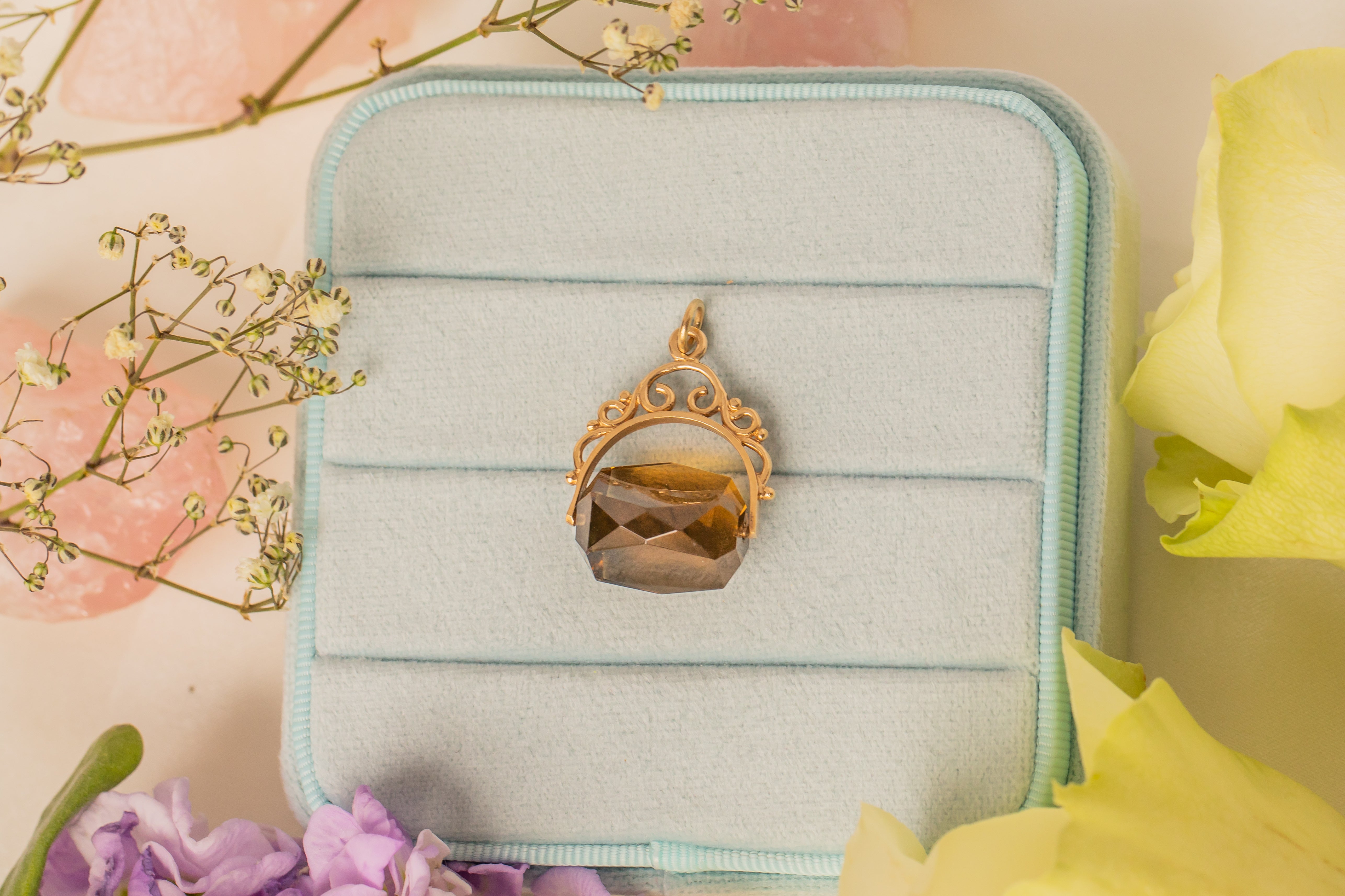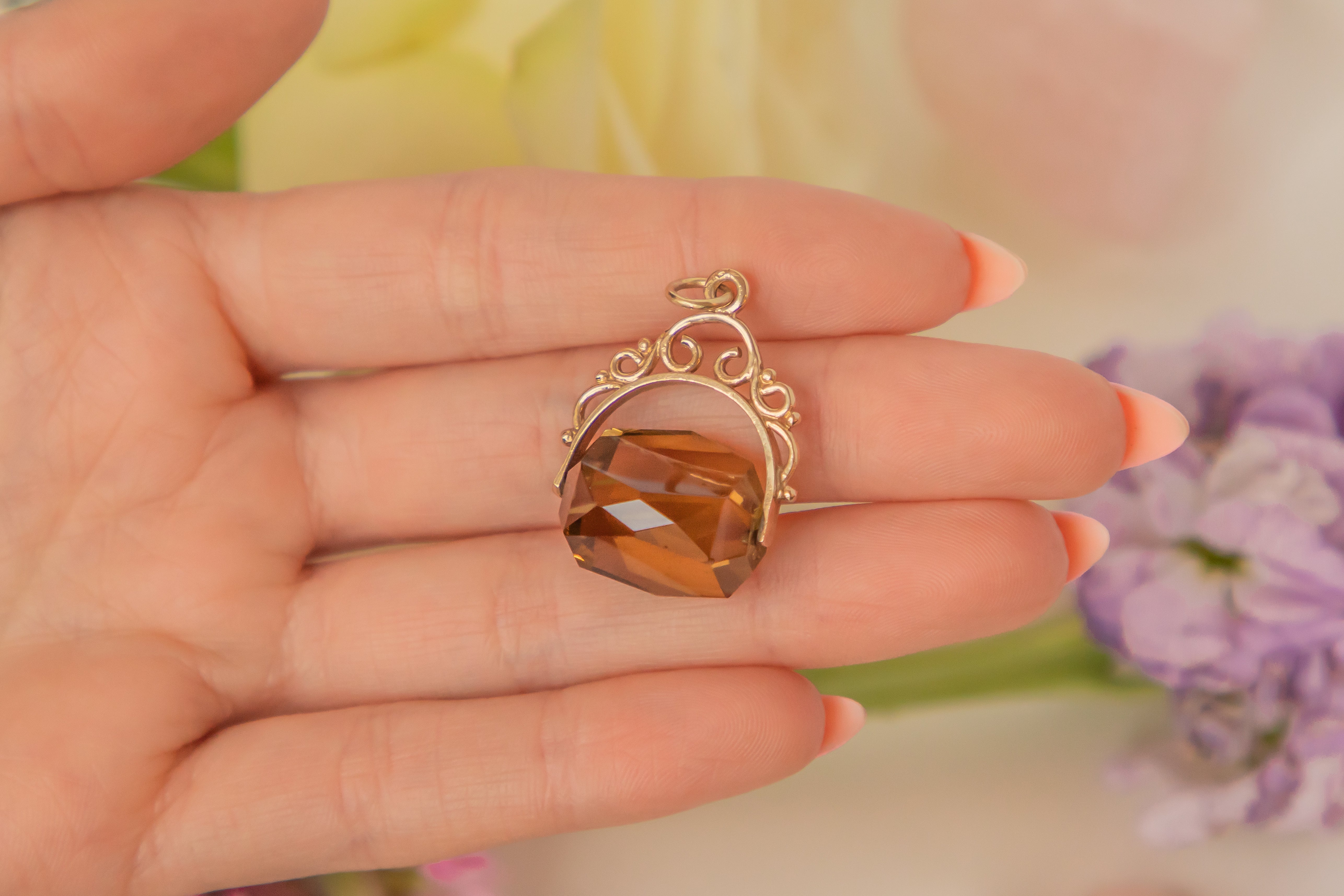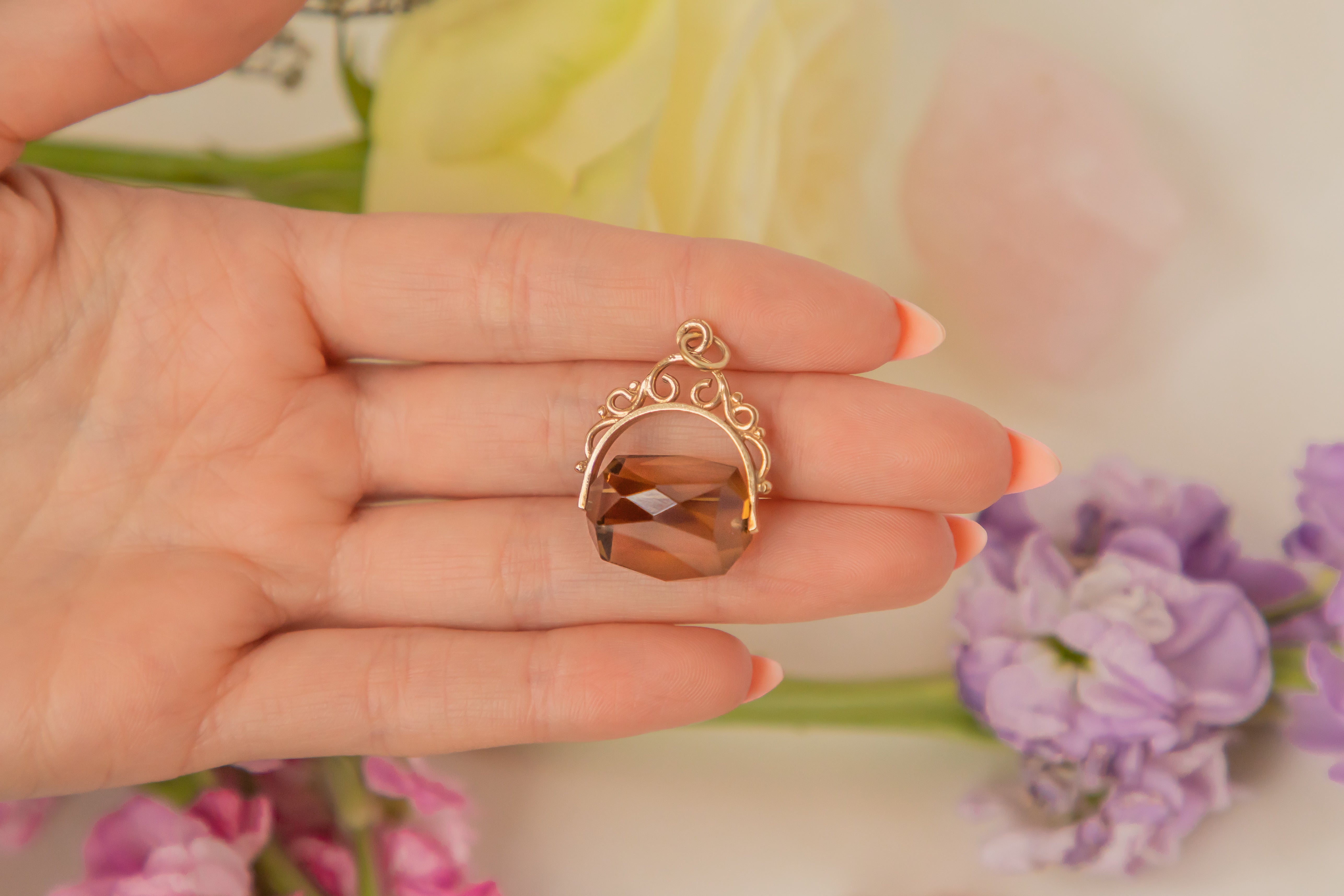 9ct ゴールド スモーキークォーツ スピナーフォブ