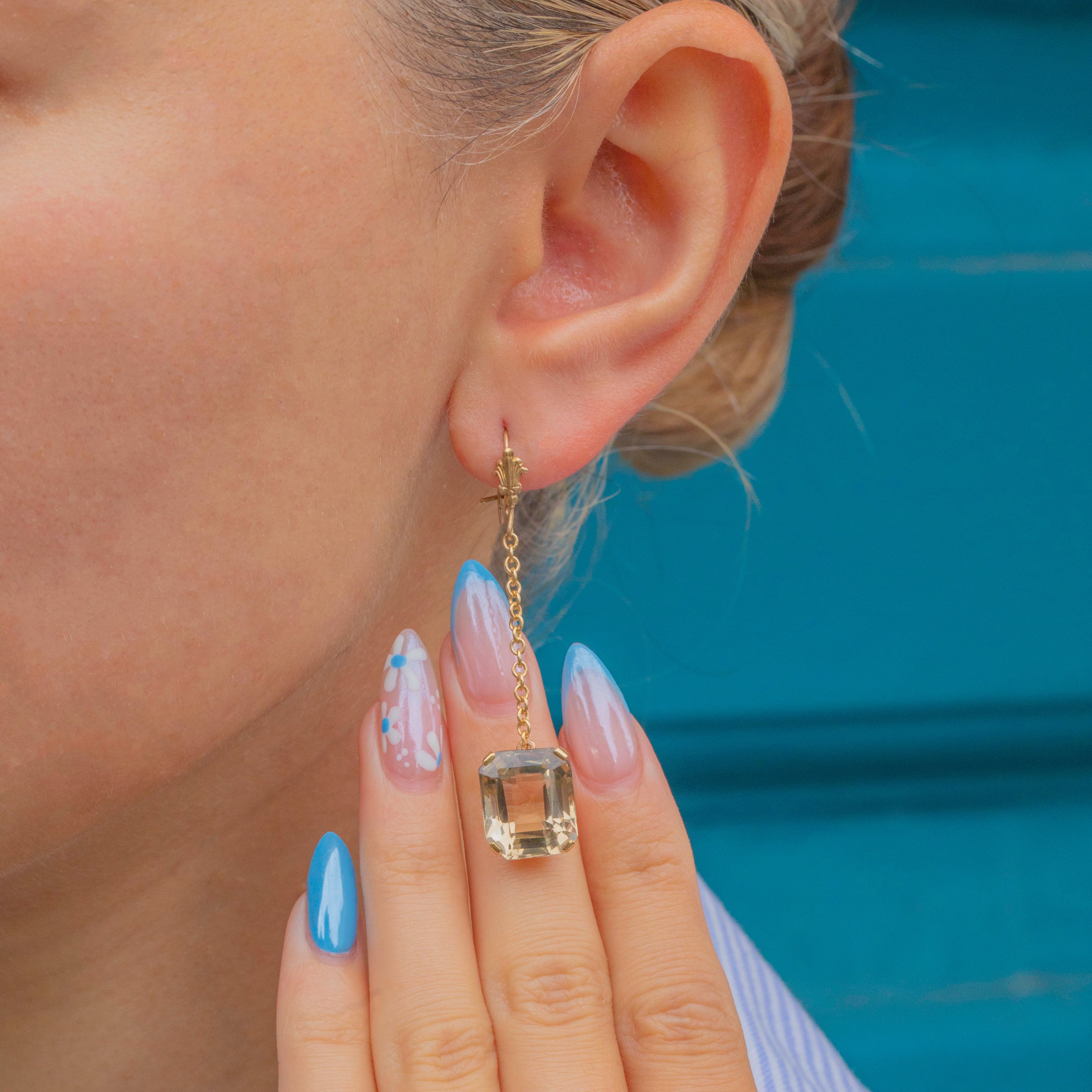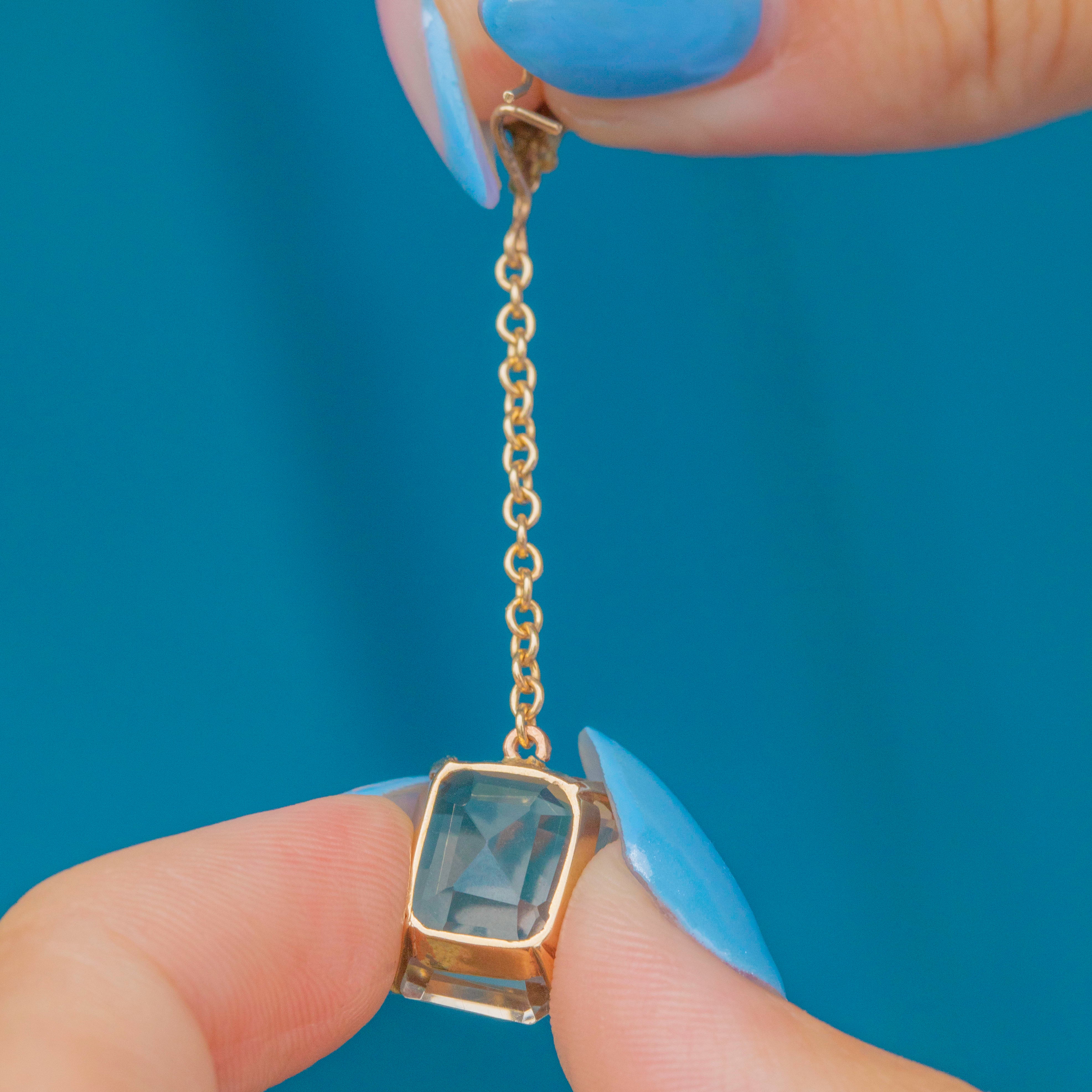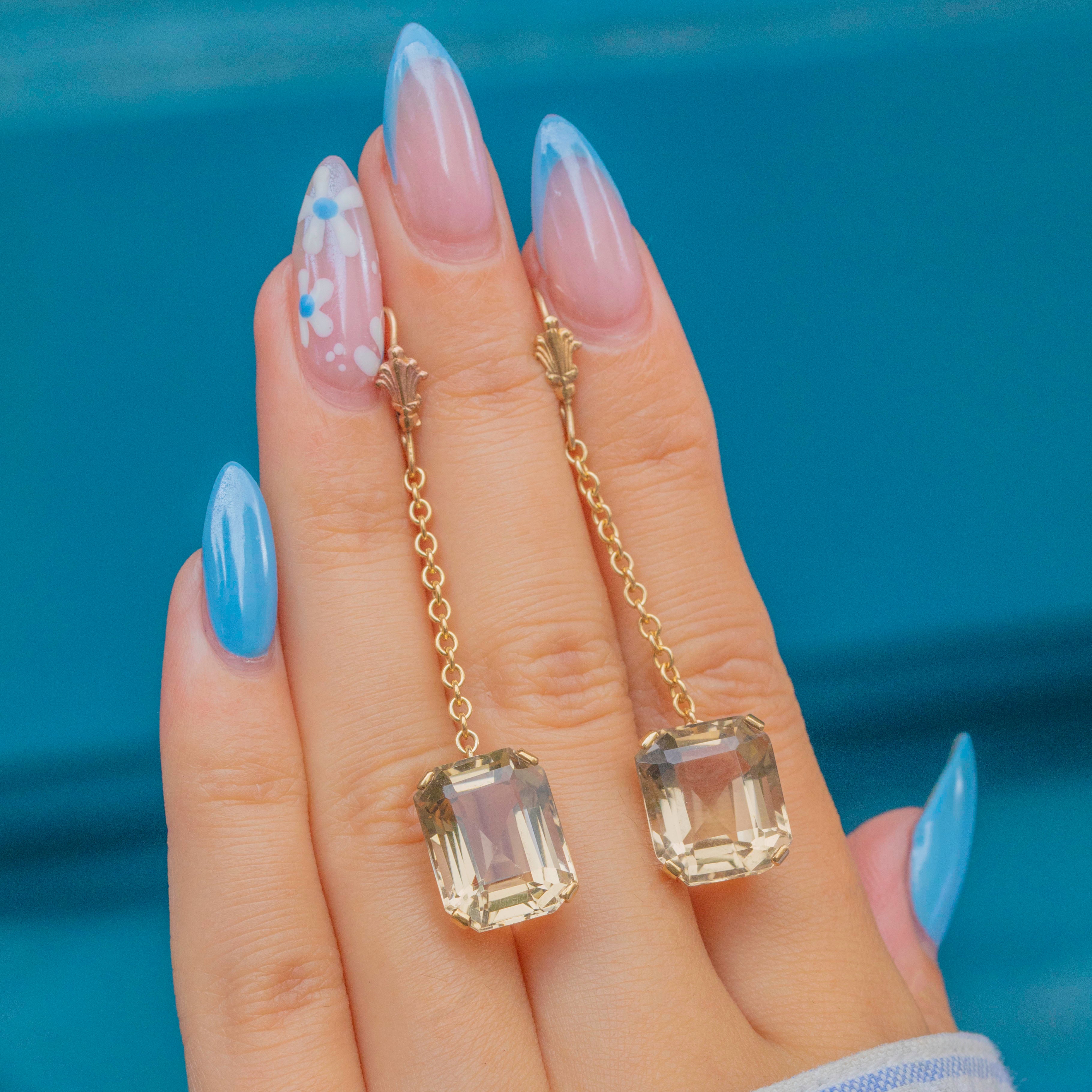 These vintage Smoky Quartz earrings will instantly bring a touch of elegance to any look! Each earring features a rectangular Smoky Quartz gemstone, suspended from a fine 9ct Gold dangle chain, providing graceful movement.