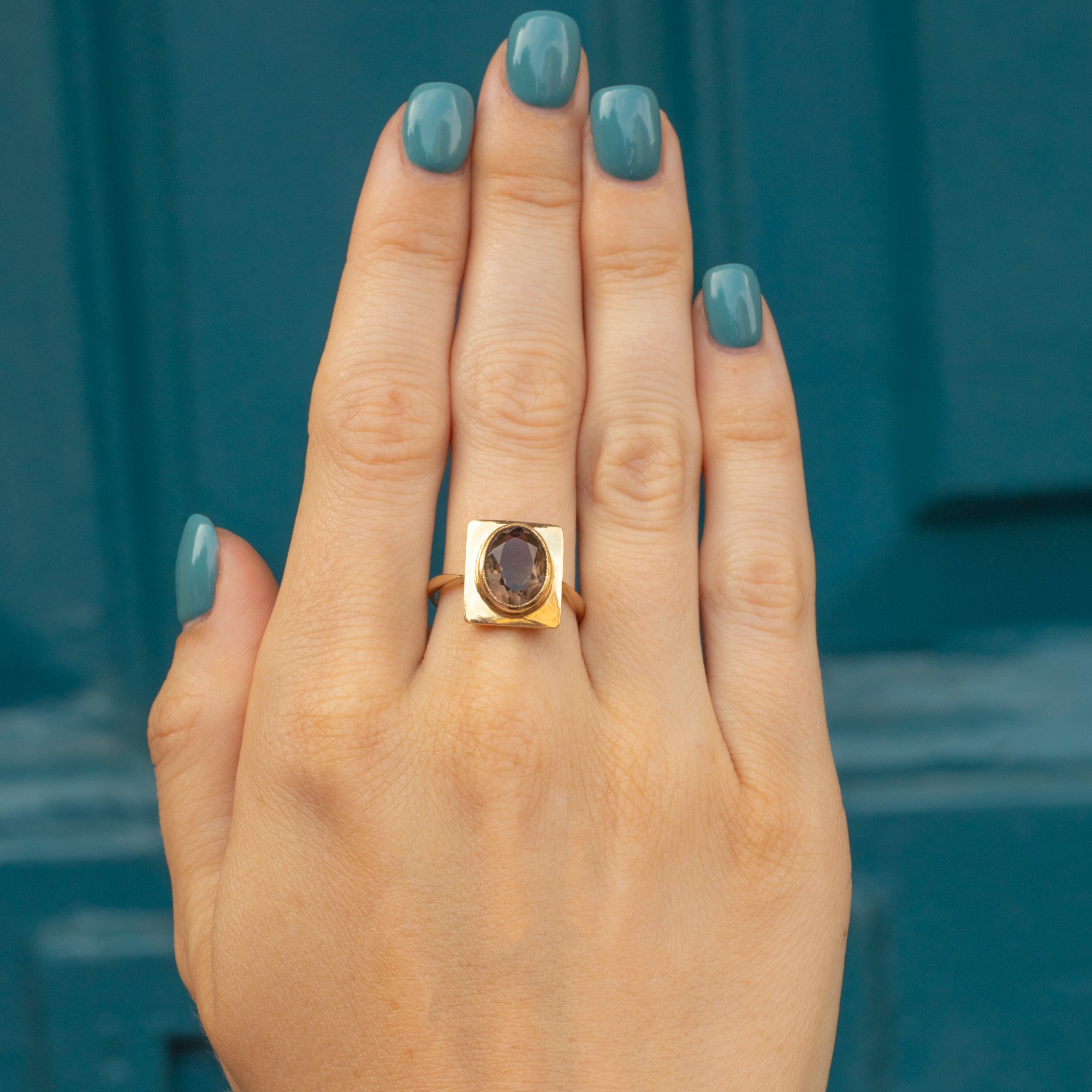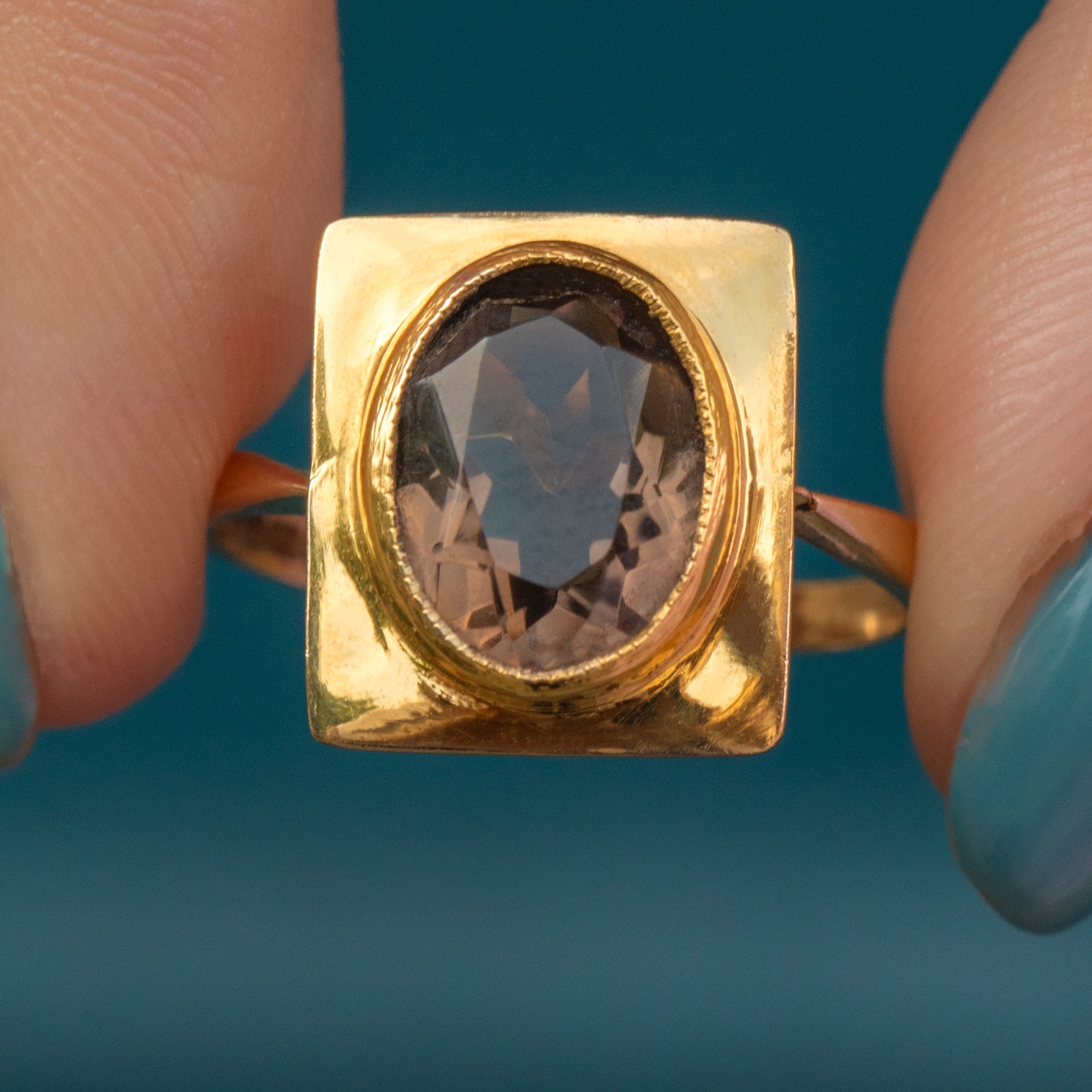 The combination of the Smoky Quartz and Gold makes for a sophisticated colour palette and, providing you with excellent finger coverage, this vintage ring is the perfect standalone piece!