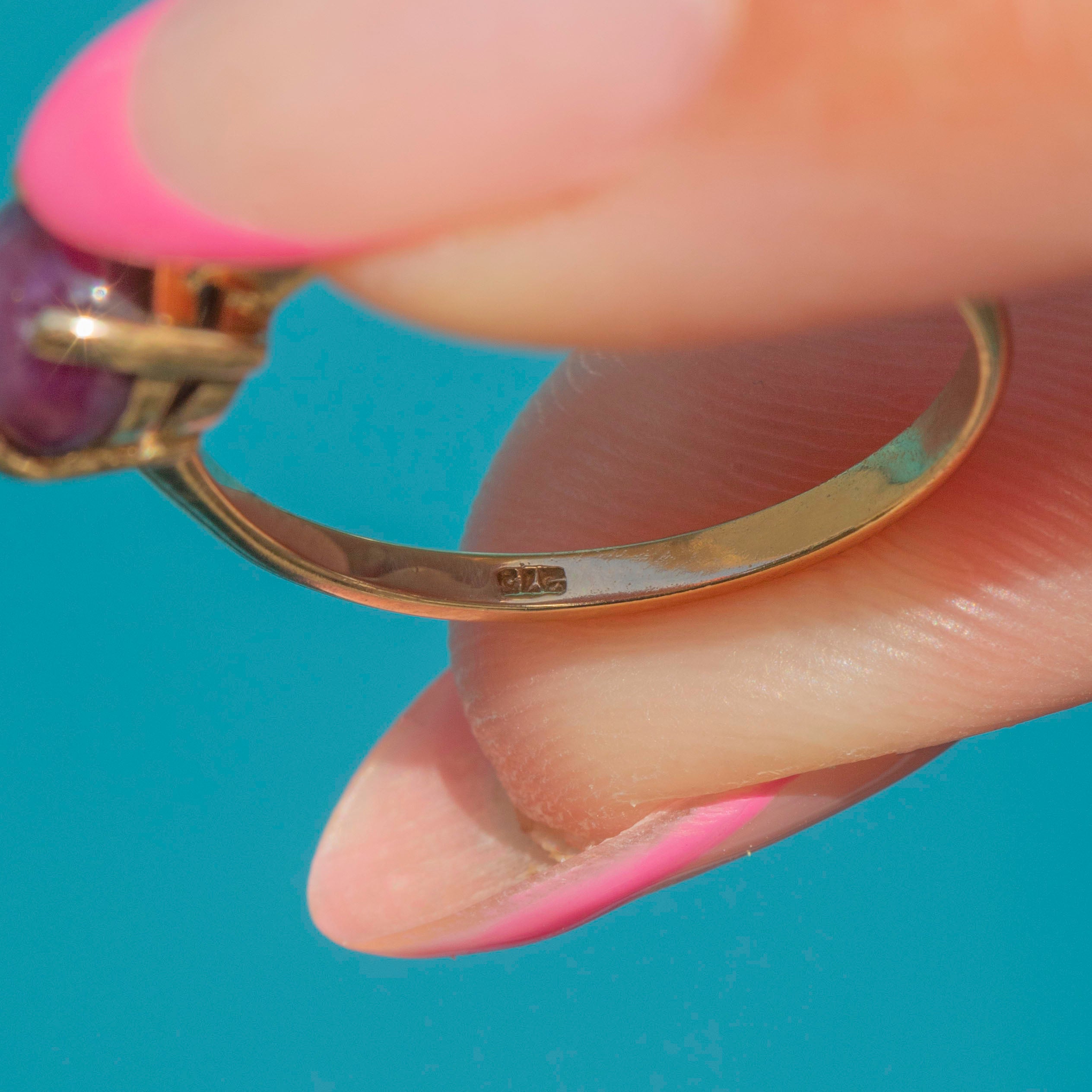 EXCELLENT: This 9ct Gold Star Ruby ring is in excellent condition. The Ruby is perfectly smooth, with no chips or scuffs, and is secure within its claw settings. The Gold is bright and buttery, and the band shows no signs of wear, promising many more years of enjoyment!