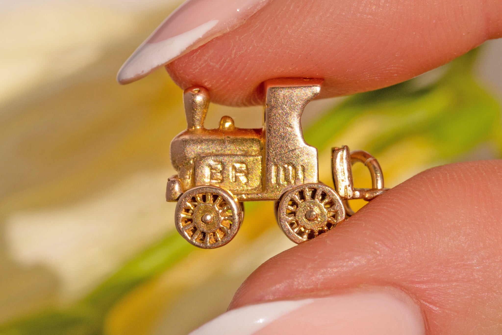 9ct ゴールド 蒸気機関車 チャーム c.1950