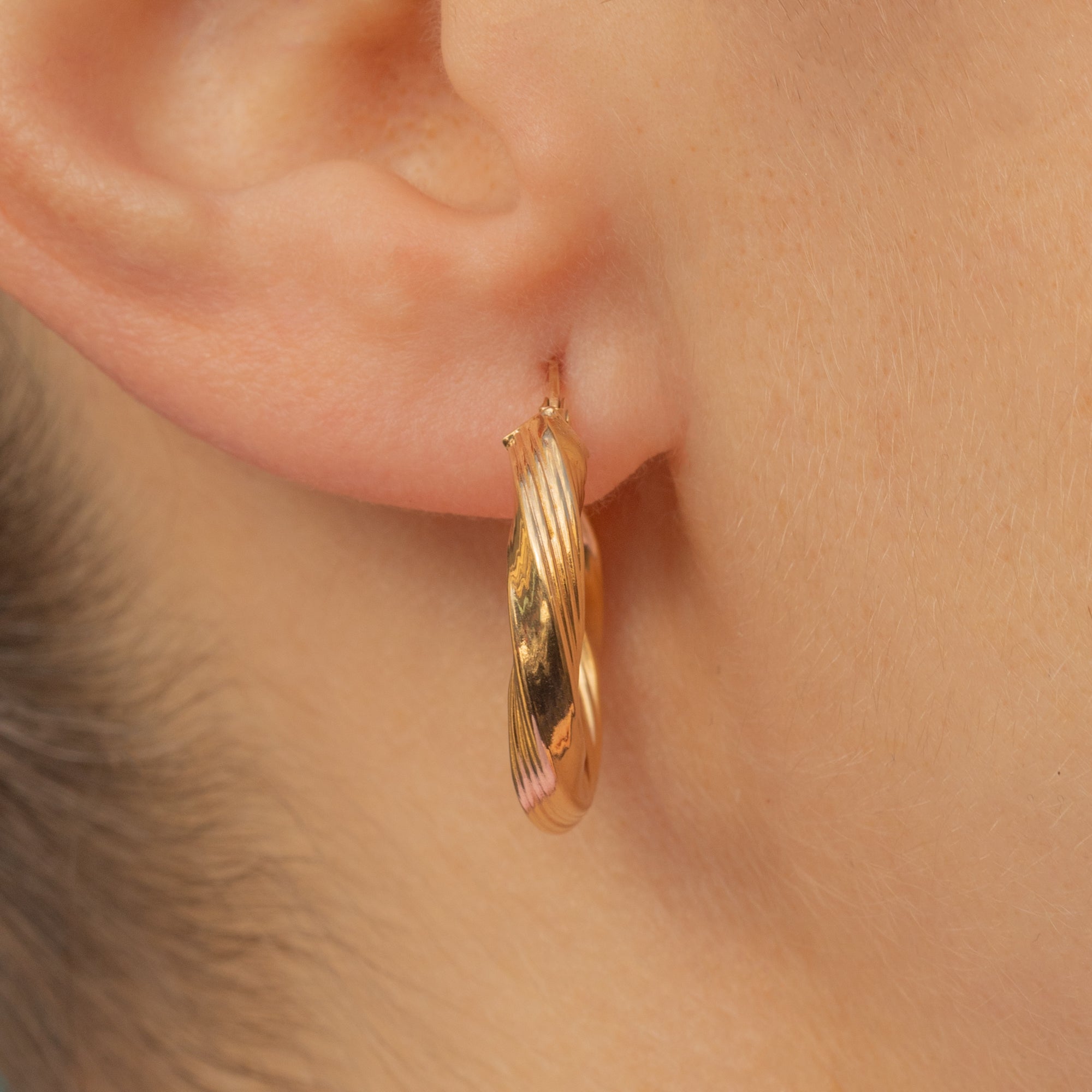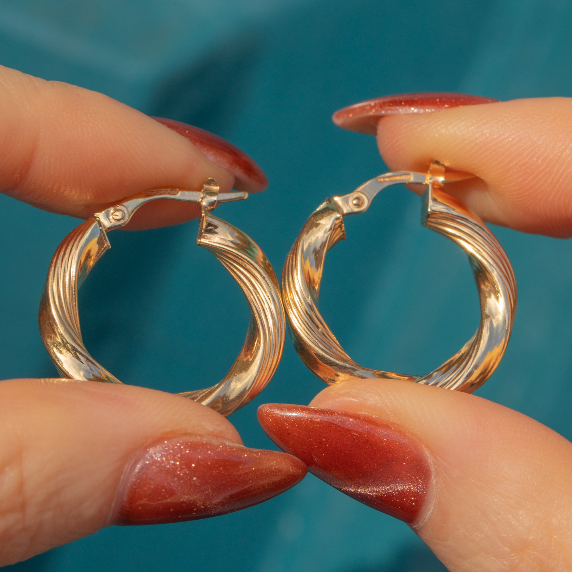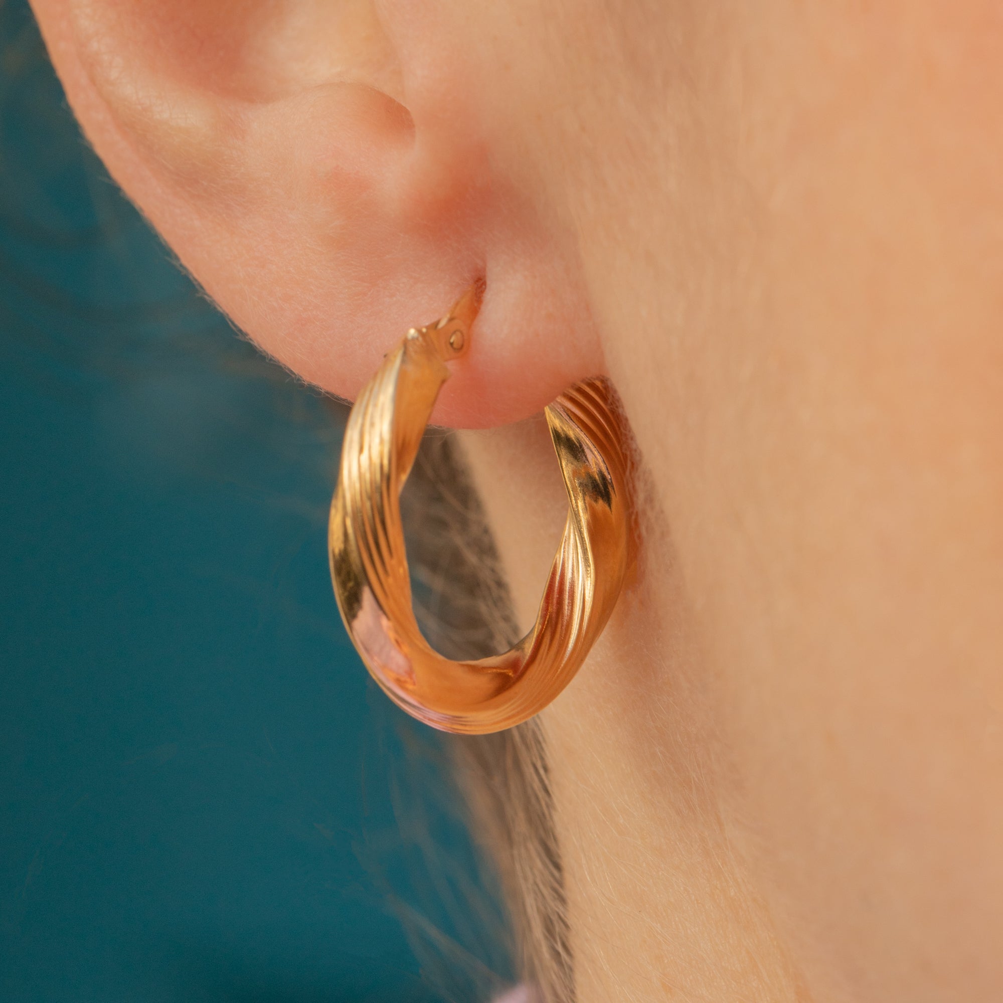 EXCELLENT: These 9ct Gold twist hoop earrings are in excellent condition. The Gold is bright and has very little sign of wear. Fully hallmarked and with secure levers, you can wear these beauties with confidence!