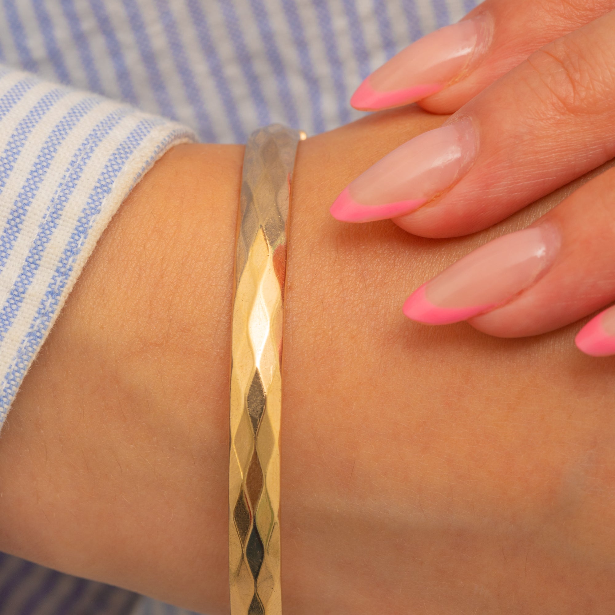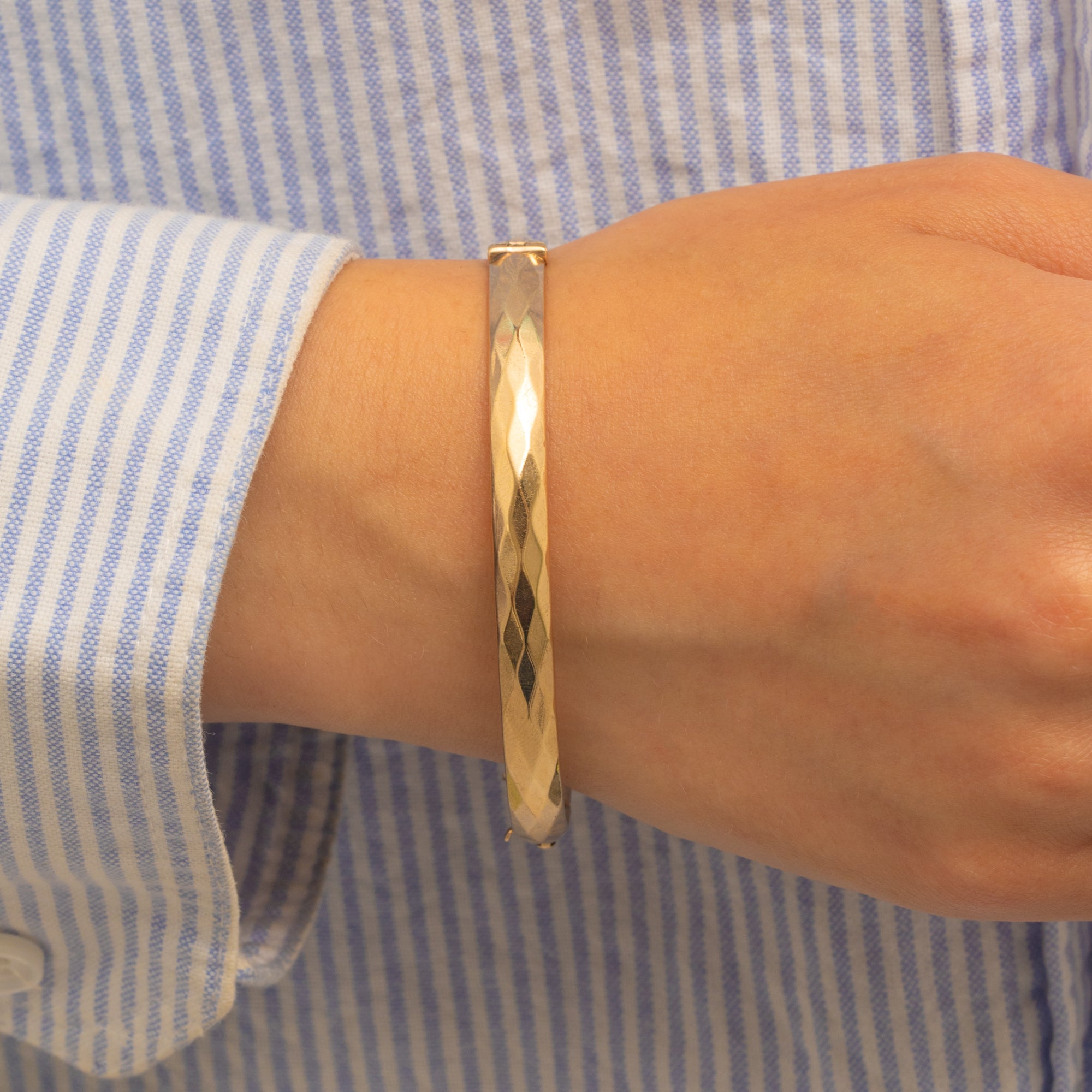 Vintage in age and timeless in style, you will have no trouble incorporating this 9ct Rolled Gold faceted bangle into your jewellery collection!