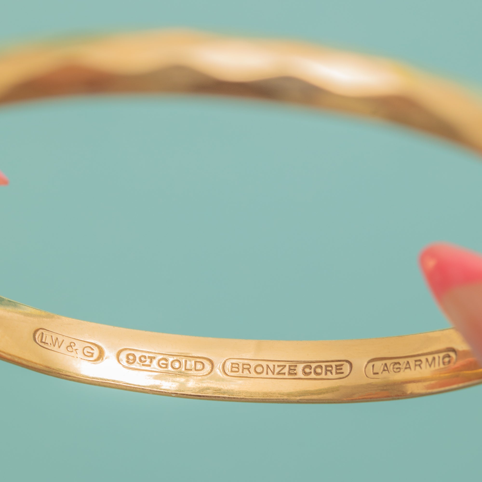 HALLMARKS: LW&G Makers mark, 9ct Gold, Bronze Core, Lagarmic inside bangle