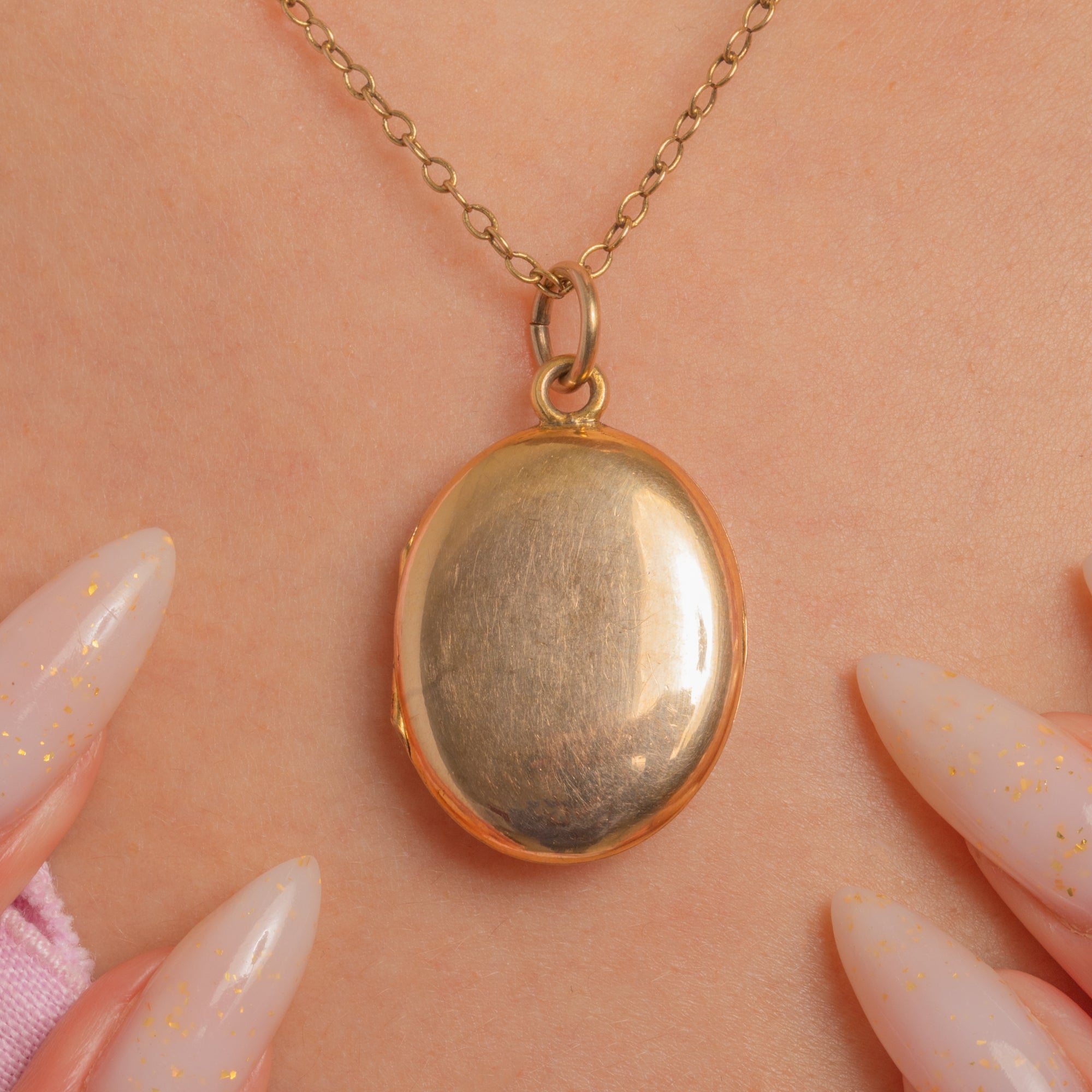 Understated and elegant, this Victorian 9ct Rolled Gold oval locket offers a beautifully minimalist canvas with softly domed, polished faces and a warm yellow glow. Smooth and timeless, it’s the kind of everyday treasure that carries sentiment with effortless chic.