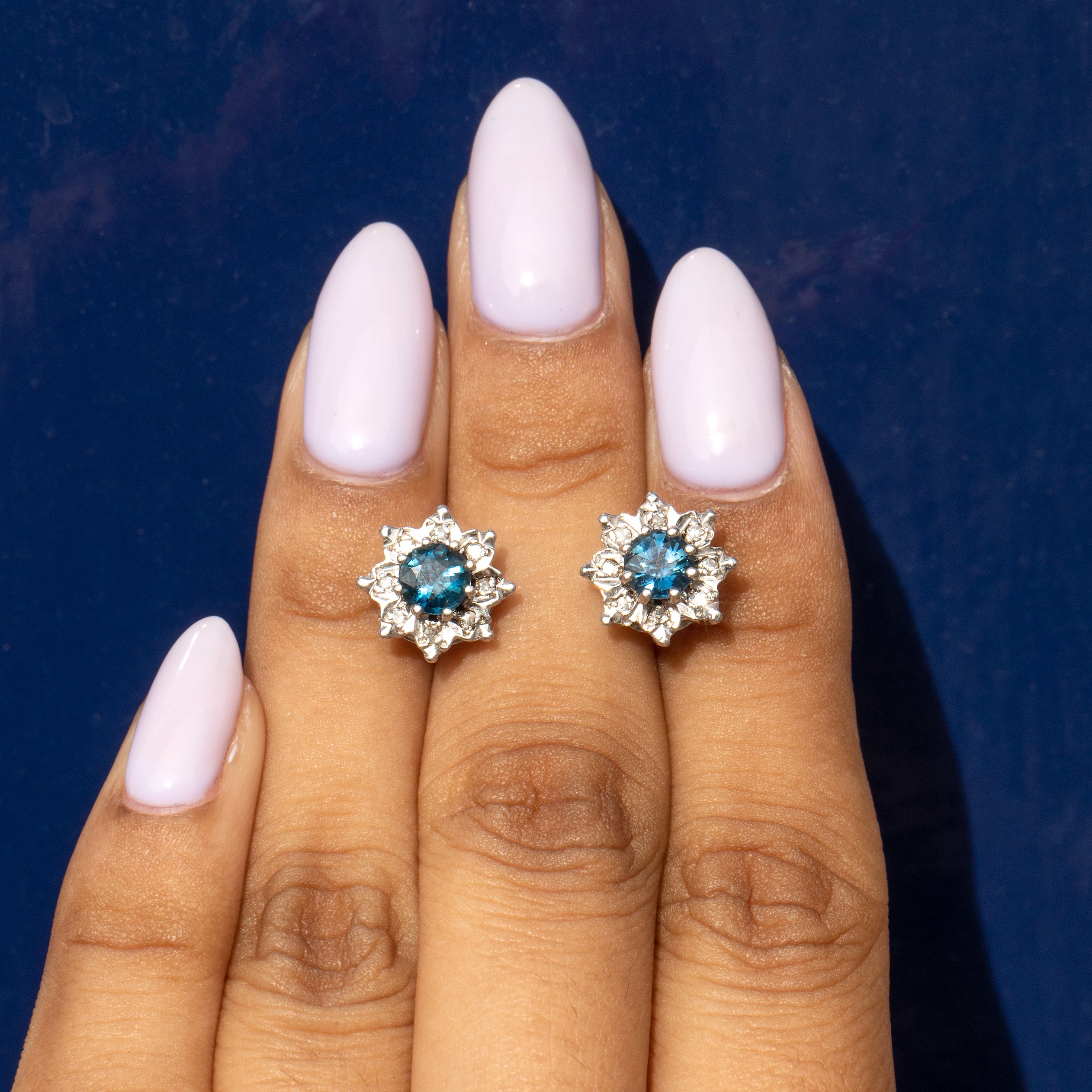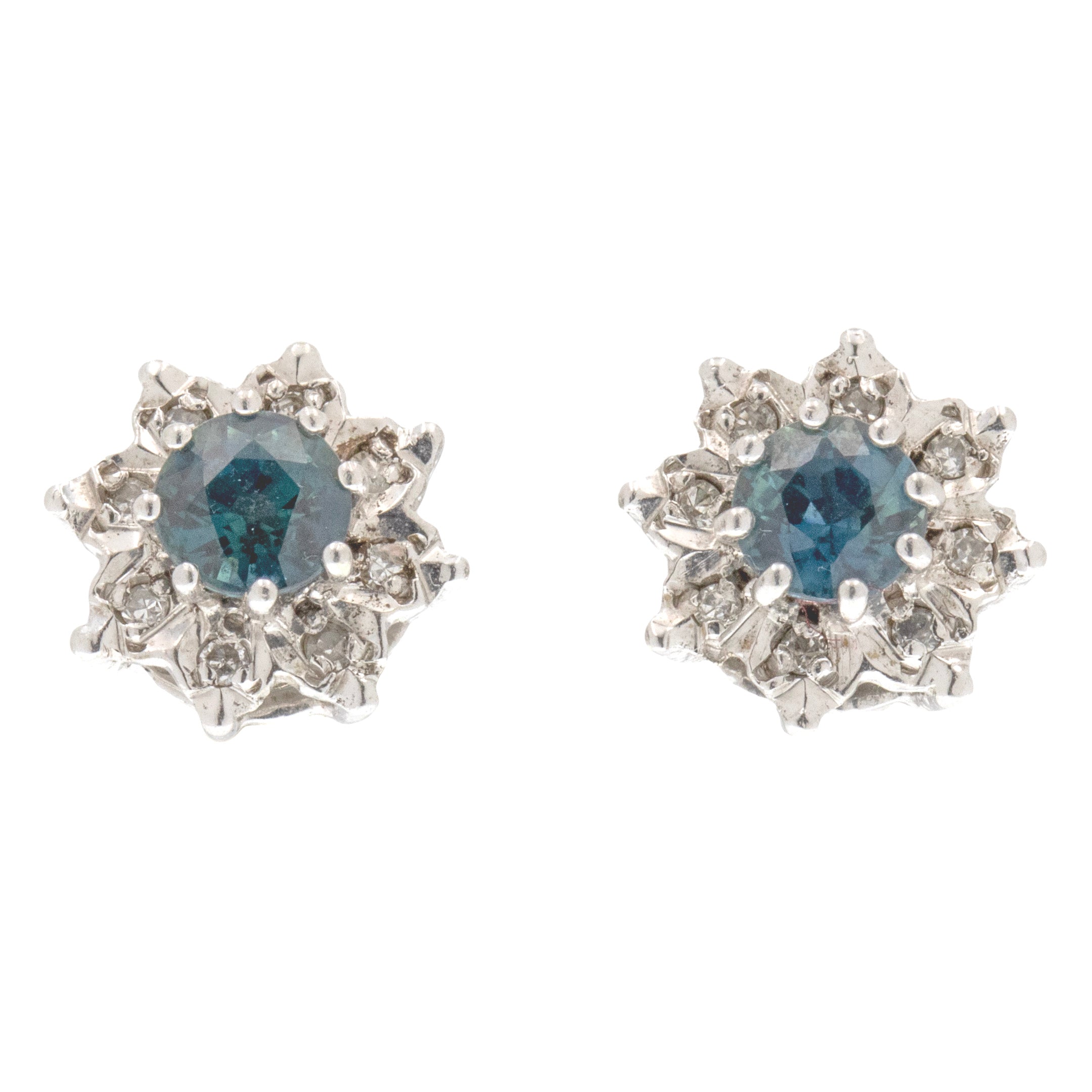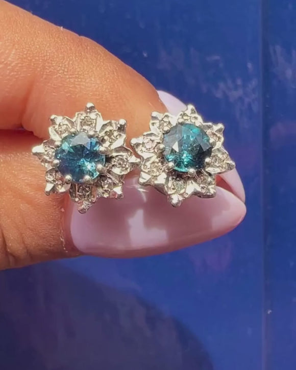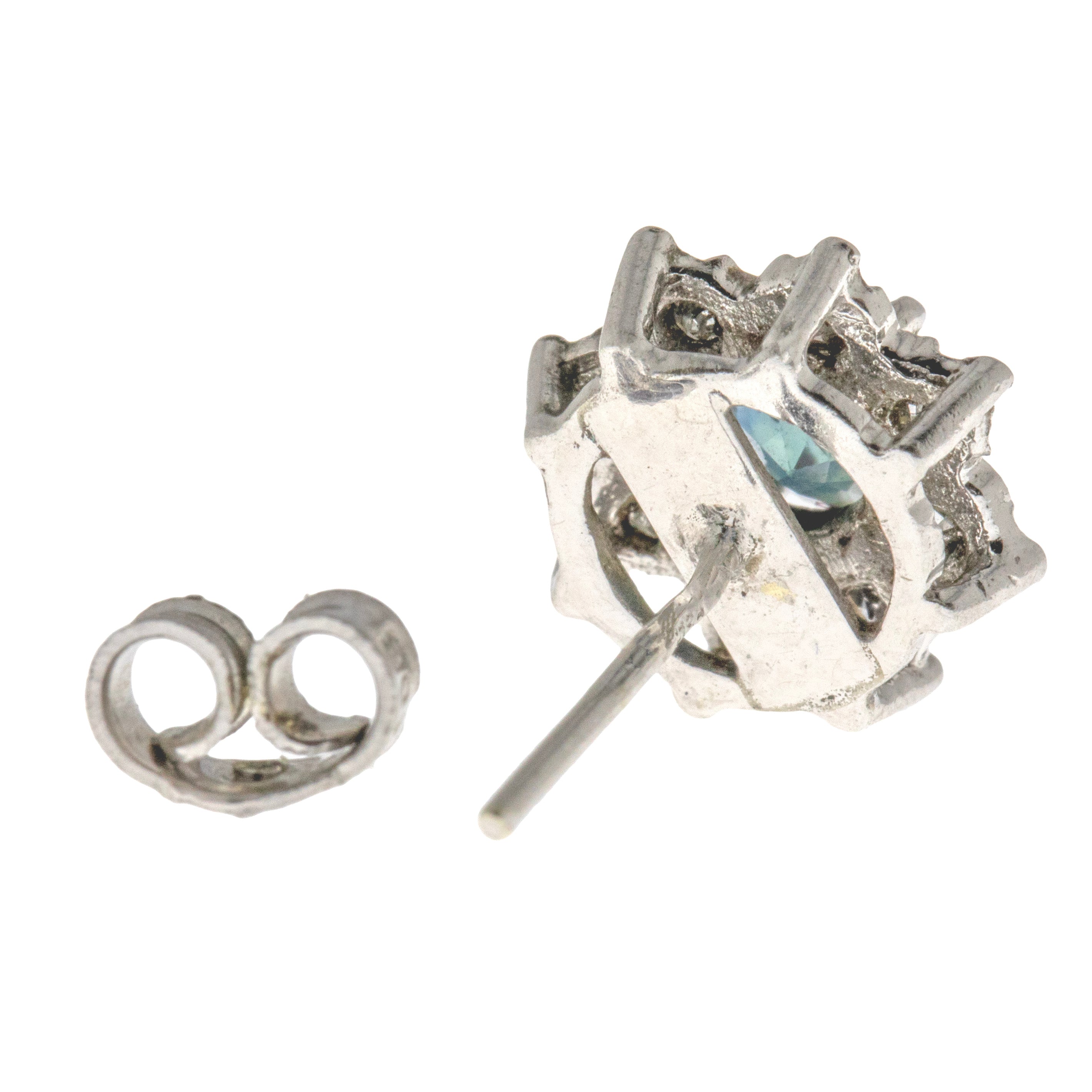 9ct ホワイトゴールド サファイア ダイヤモンド クラスター スタッド ピアス、1.00ct サファイア