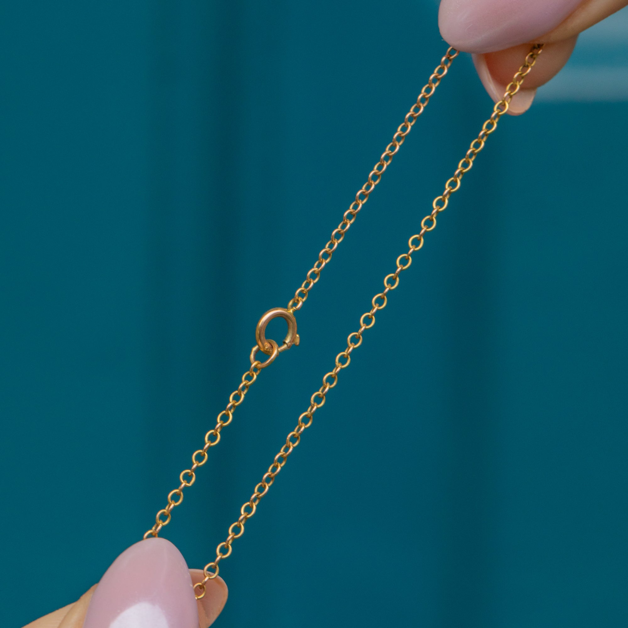 When held up to the light, the a soft minty glow billows across the surface of the two Chyrosprase, complimented effortlessly by the silver shimmer of her seven plump Pearls. Her fine Gold chain is a desirable length of 15", ideal for resting delicately across your décolletage. This Edwardian delight is simply a must-have!