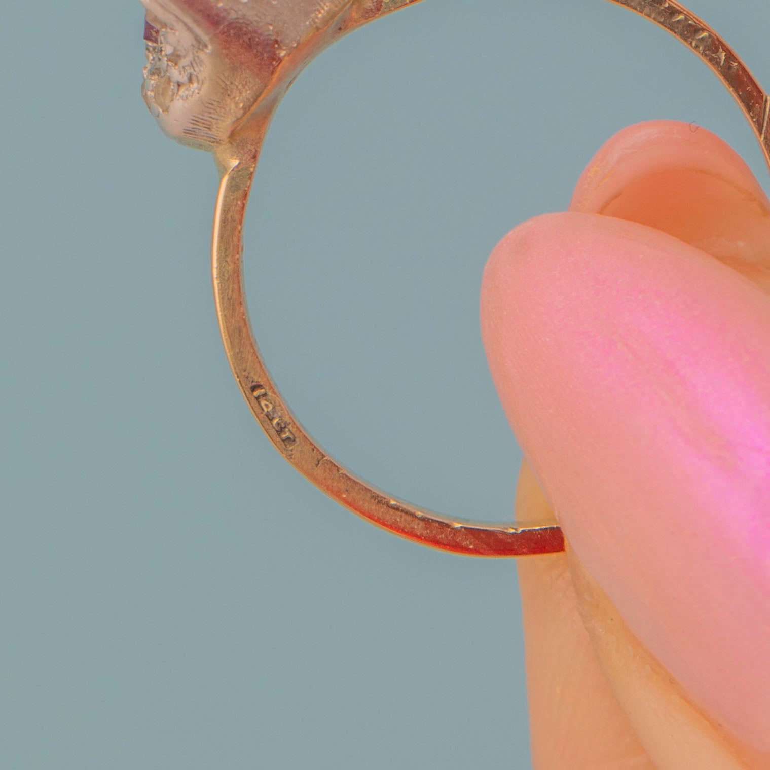 This antique 14ct Gold Diamond fox ring sure is fantastic! Made with a 15ct Gold band, this fox has been made in Silver, set with twinkling Diamonds and fuchsia hued Rubies for eyes.