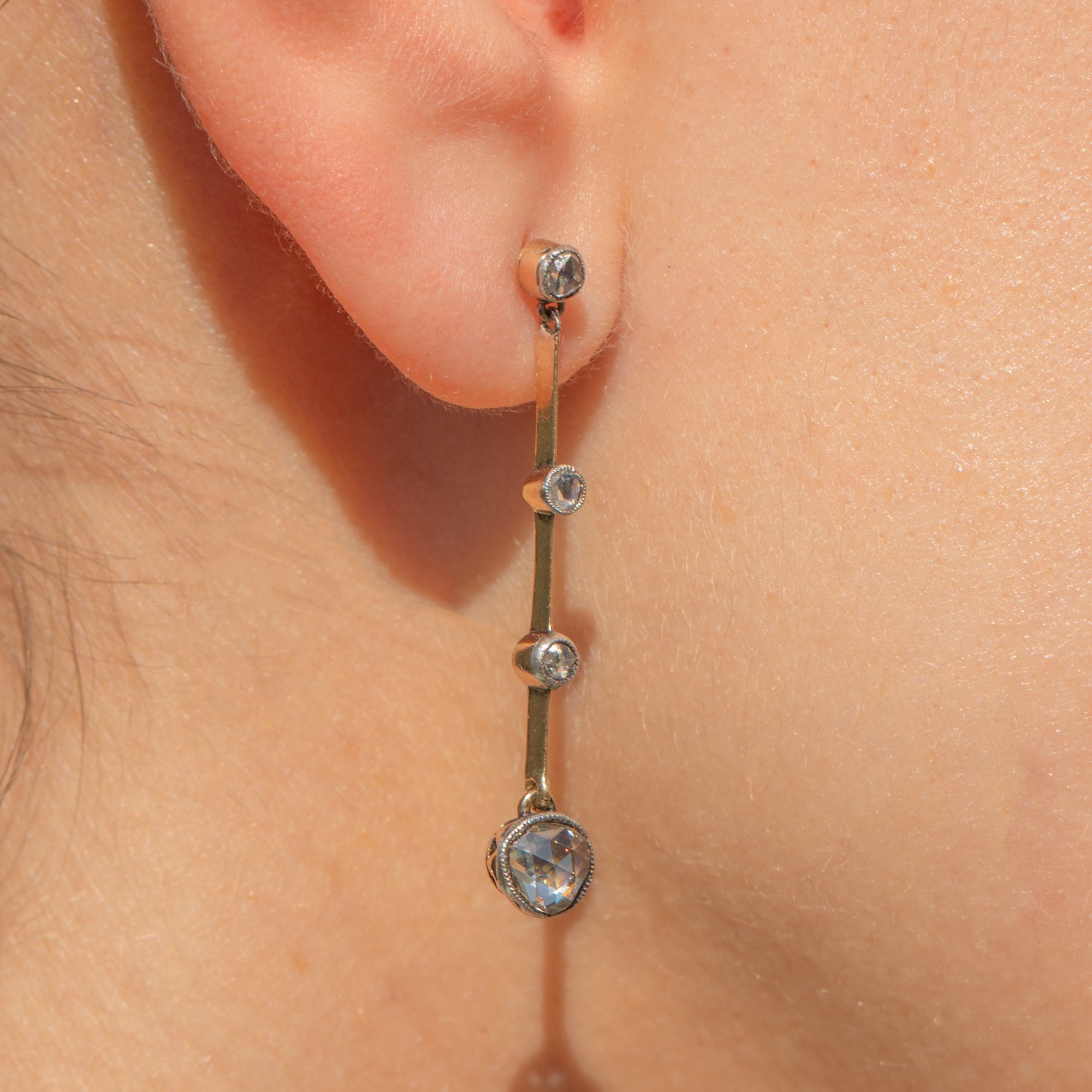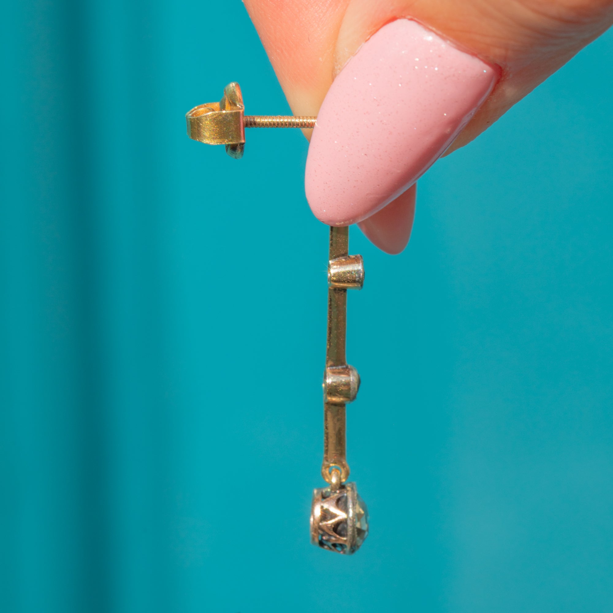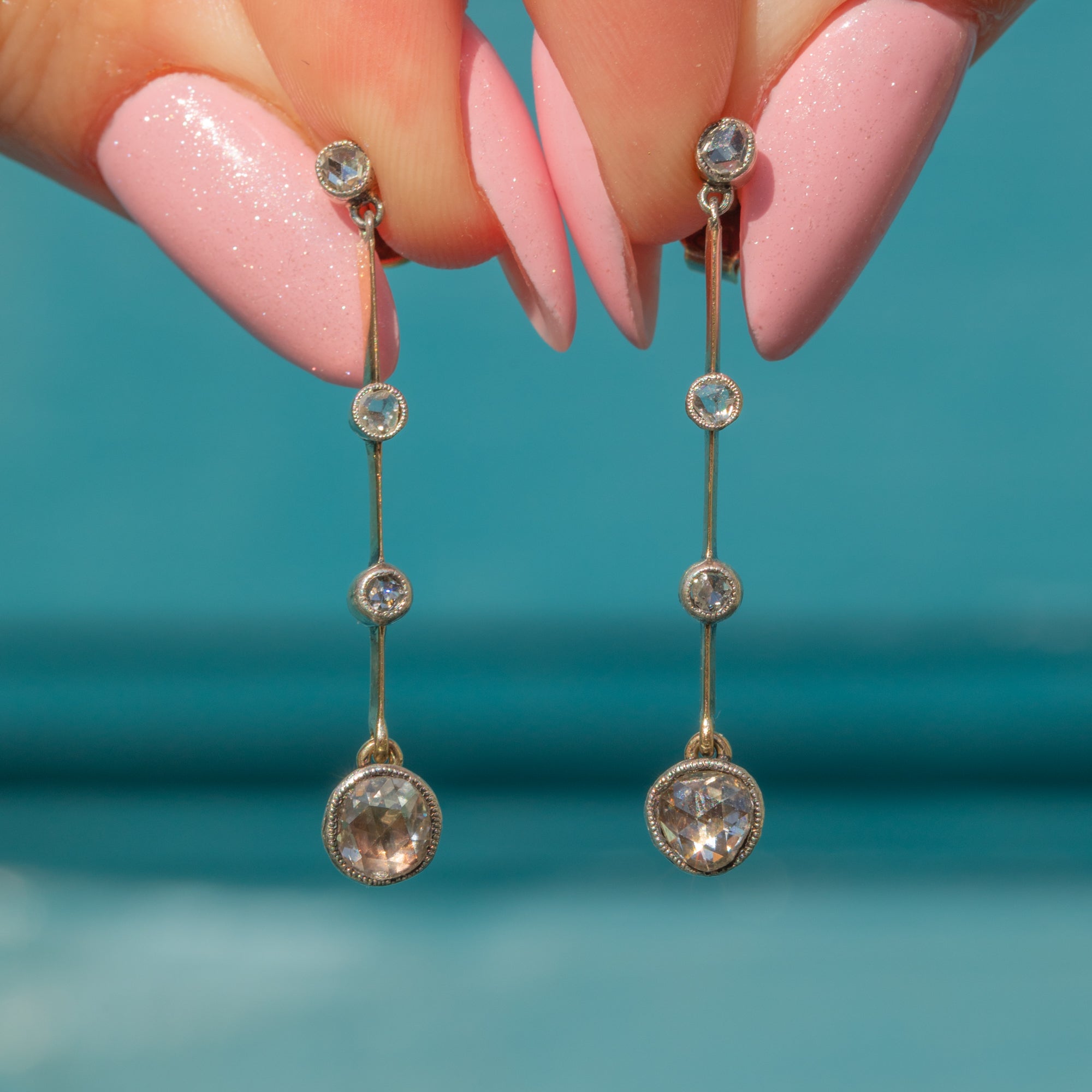 アンティーク 14ct ゴールド ローズカット ダイヤモンド ドロップ イヤリング、1.08ct