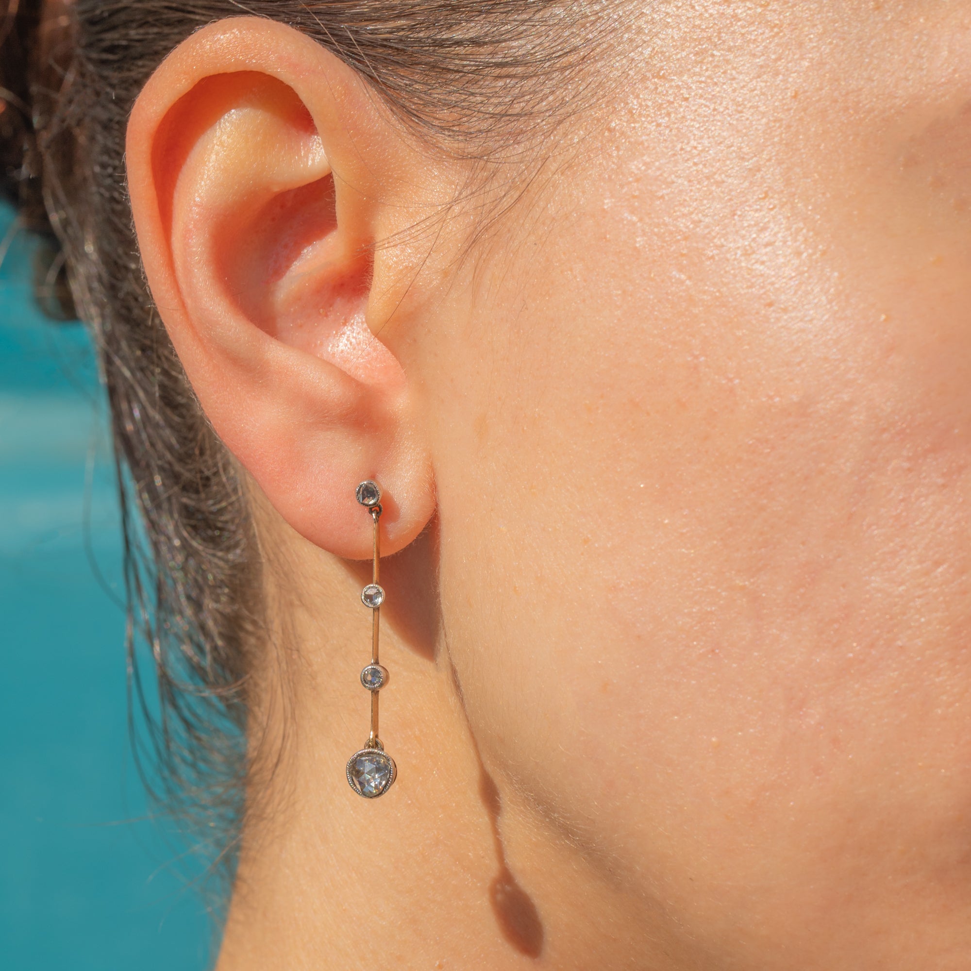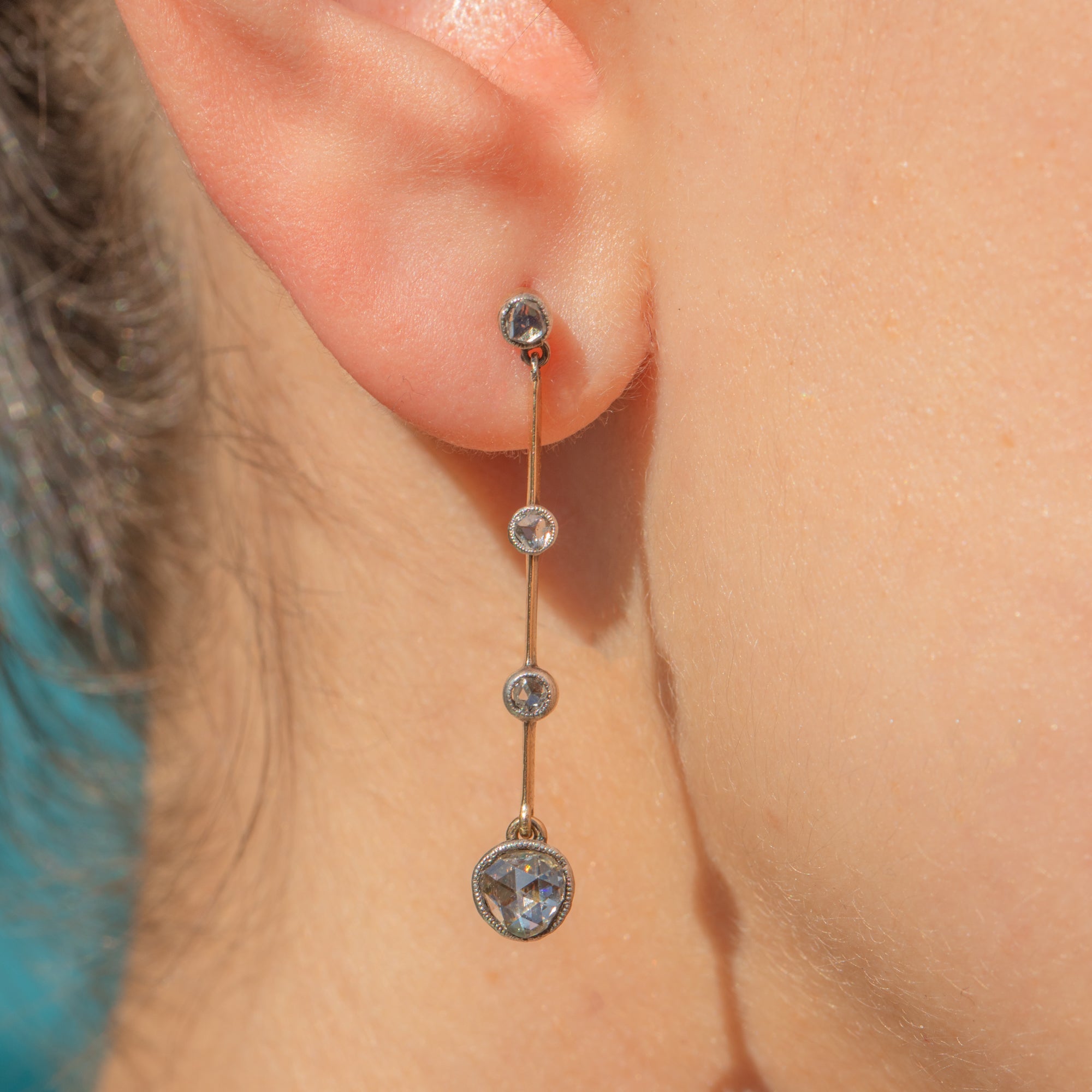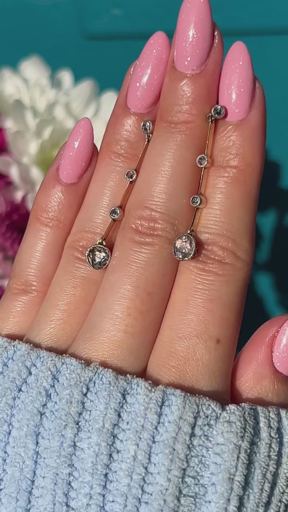 アンティーク 14ct ゴールド ローズカット ダイヤモンド ドロップ イヤリング、1.08ct