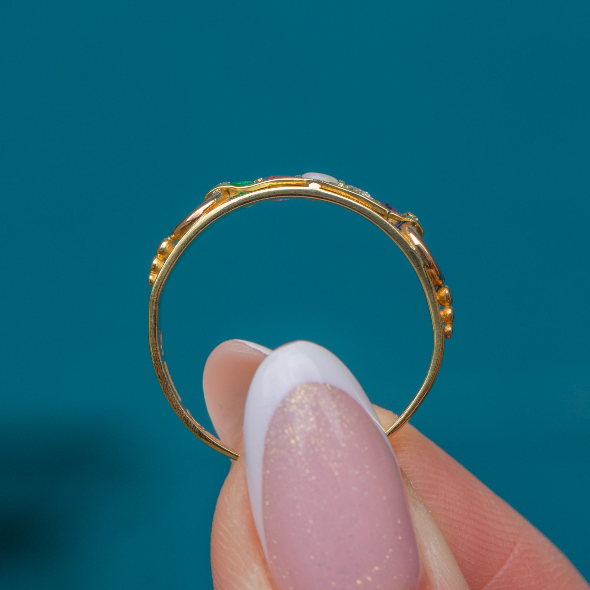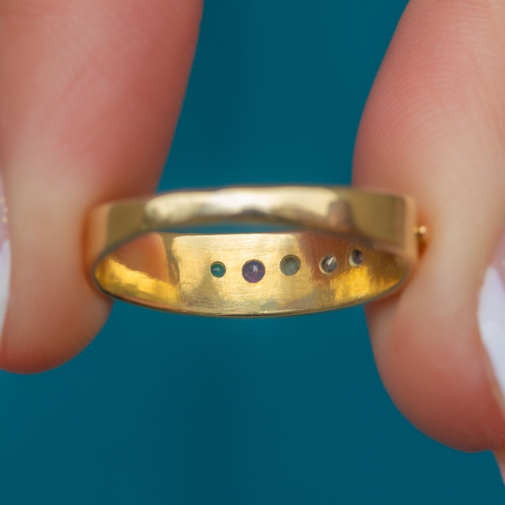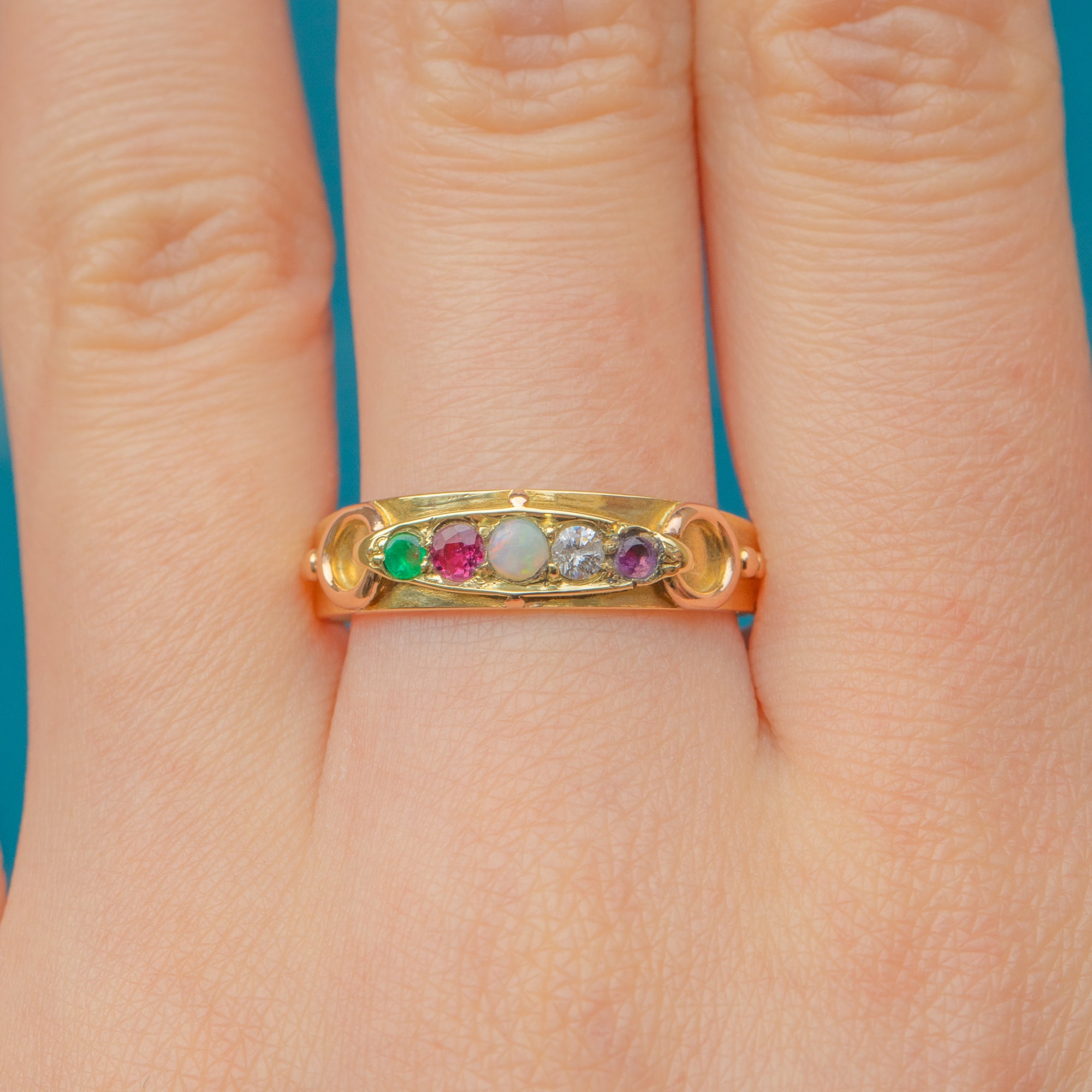 Acrostic jewellery became popular during the Victorian era, gifted as tokens of love to discreetly express devotion, using a variety of gemstones to spell out words of affection. Give this sweet Victorian acrostic ring to your favourite person, or keep it for yourself as the ultimate token of self-love!