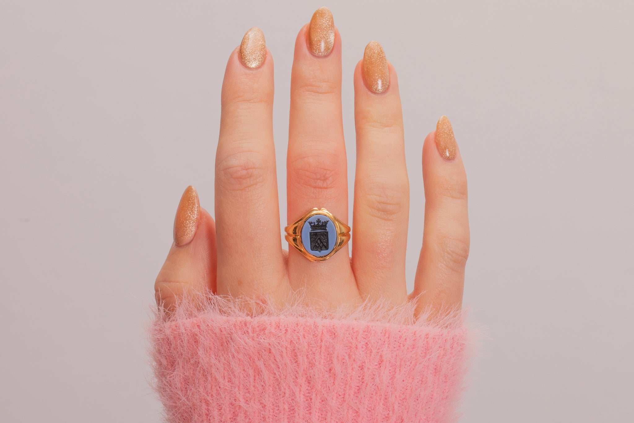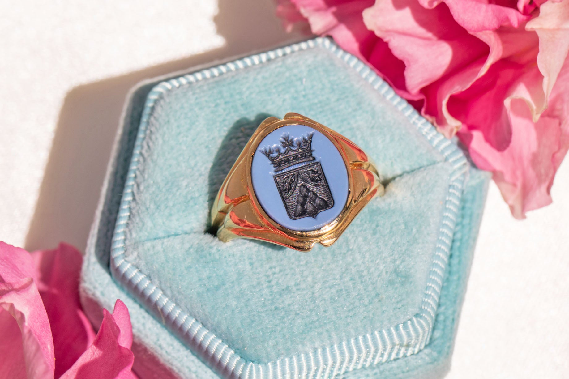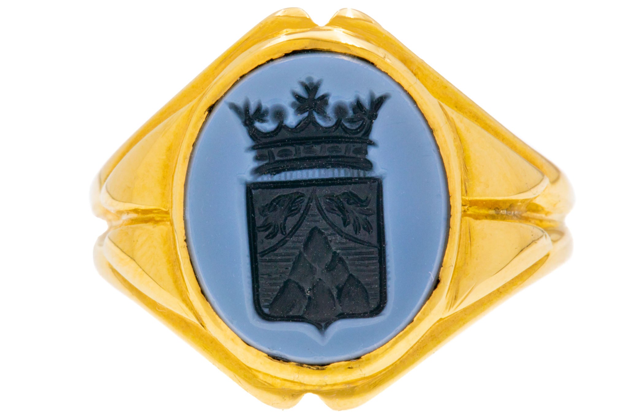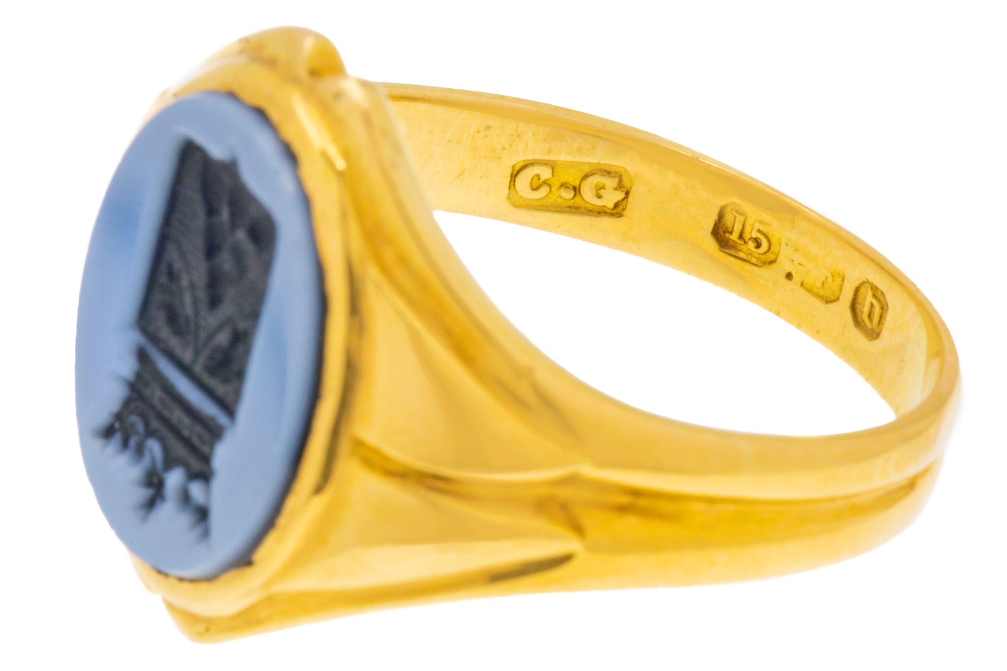 アンティーク 15ct ゴールド アゲート 紋章彫刻 インタグリオ シグネットリング