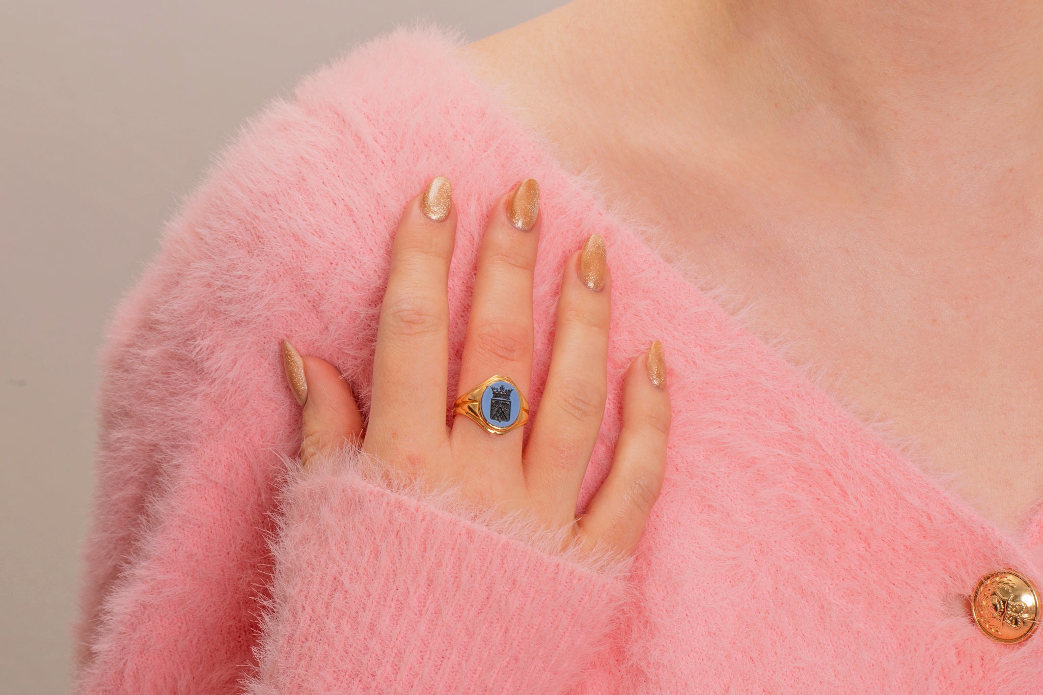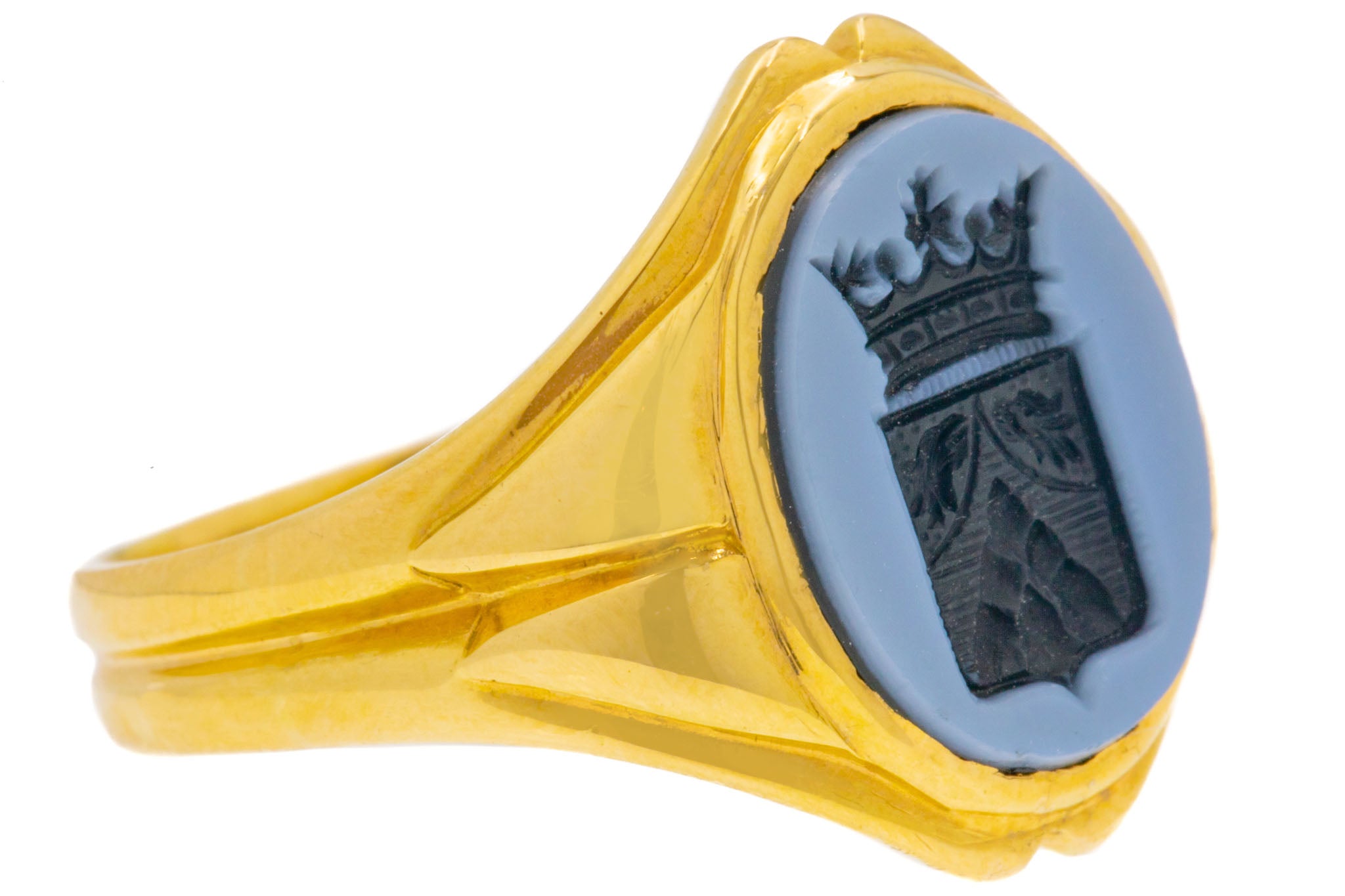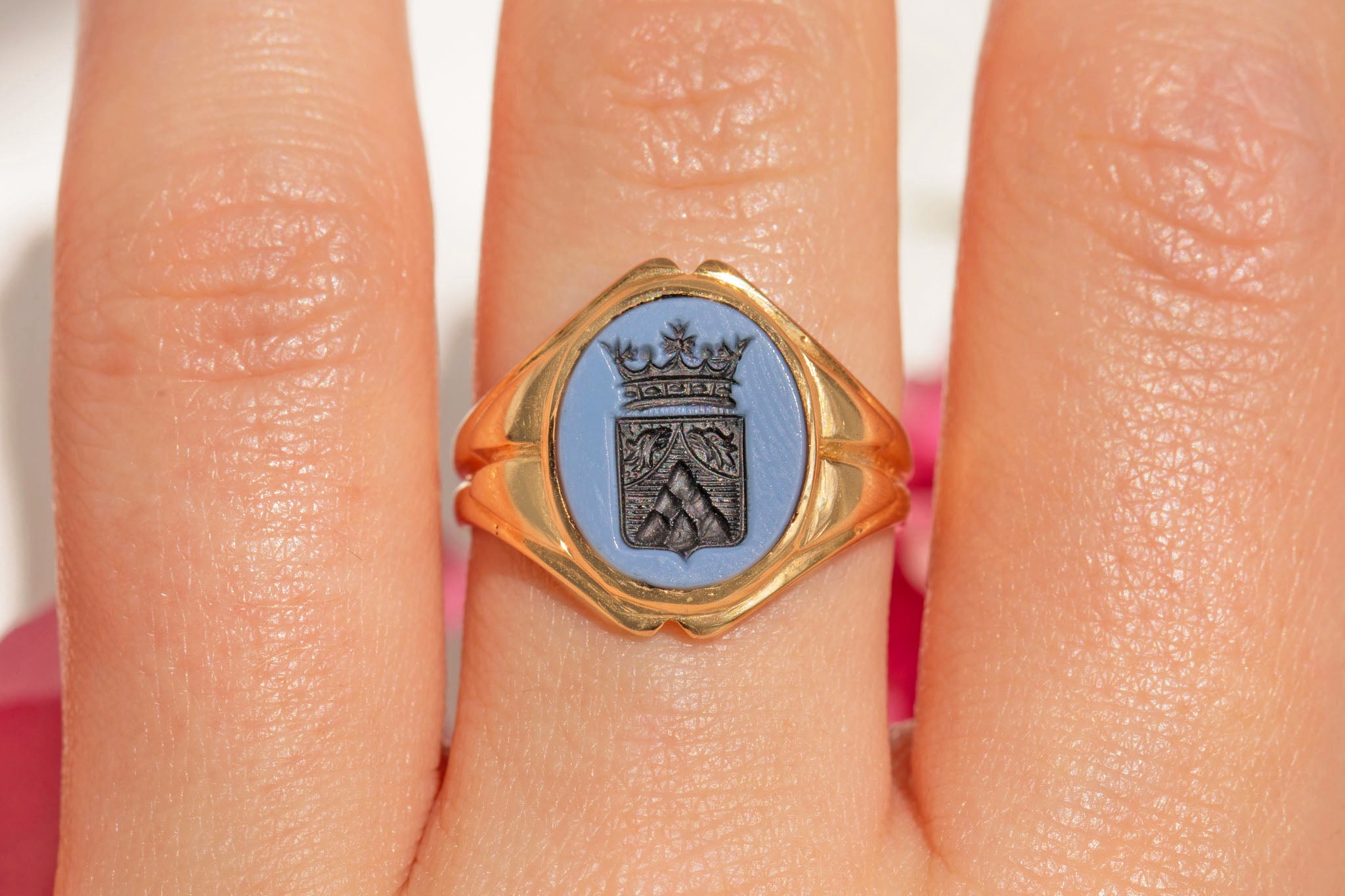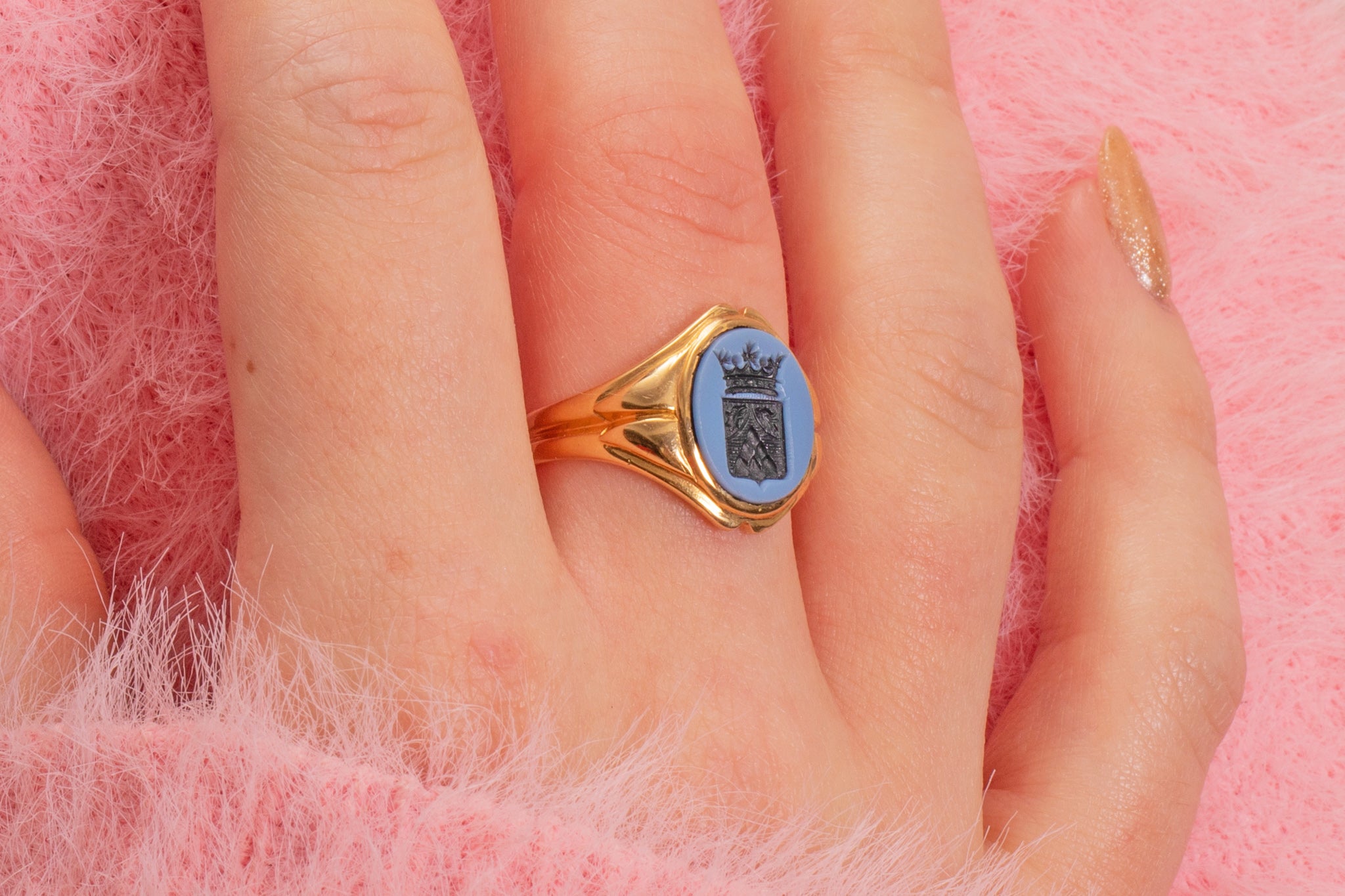 アンティーク 15ct ゴールド アゲート 紋章彫刻 インタグリオ シグネットリング