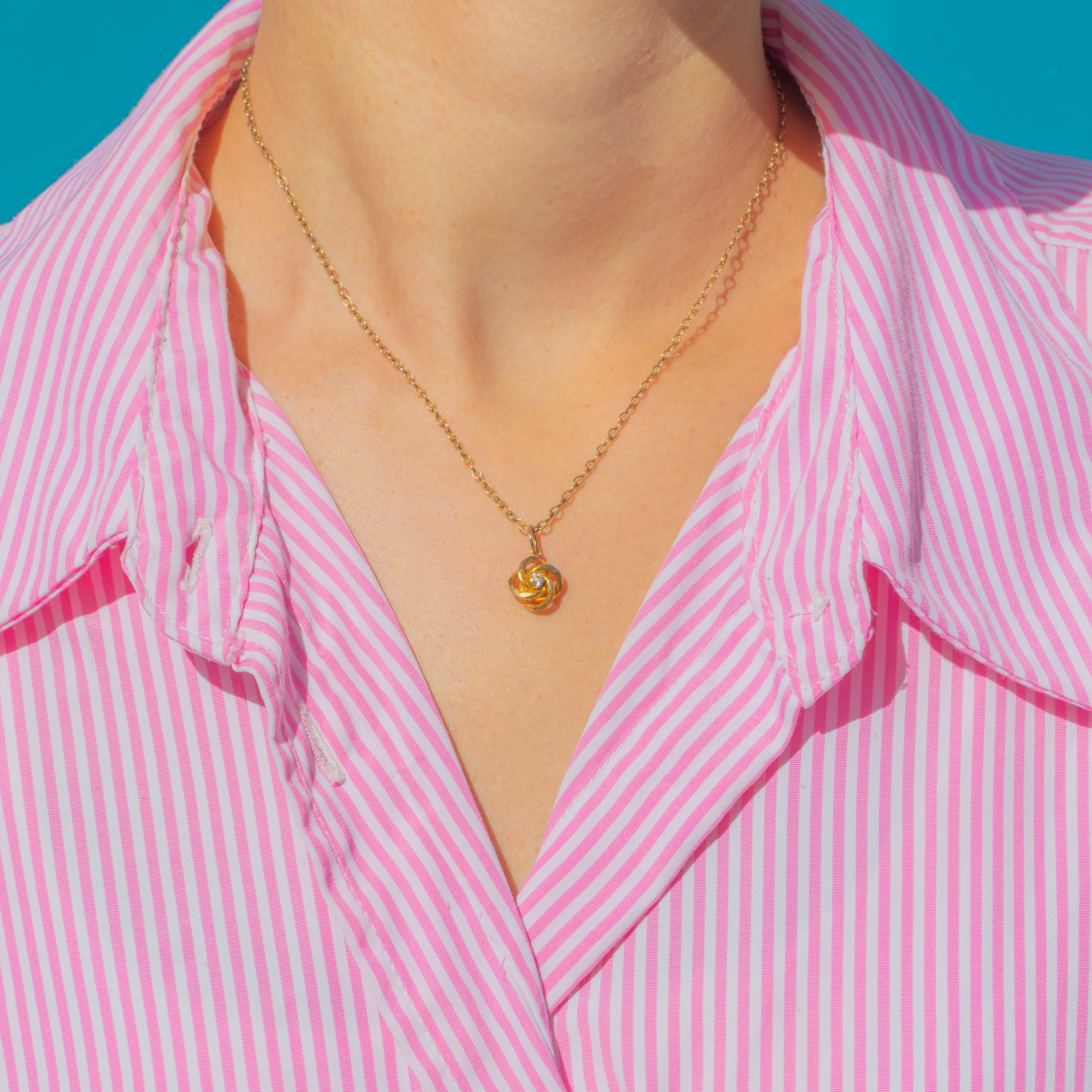 Knot motif measures 9.5mm long x 9.5mm wide.