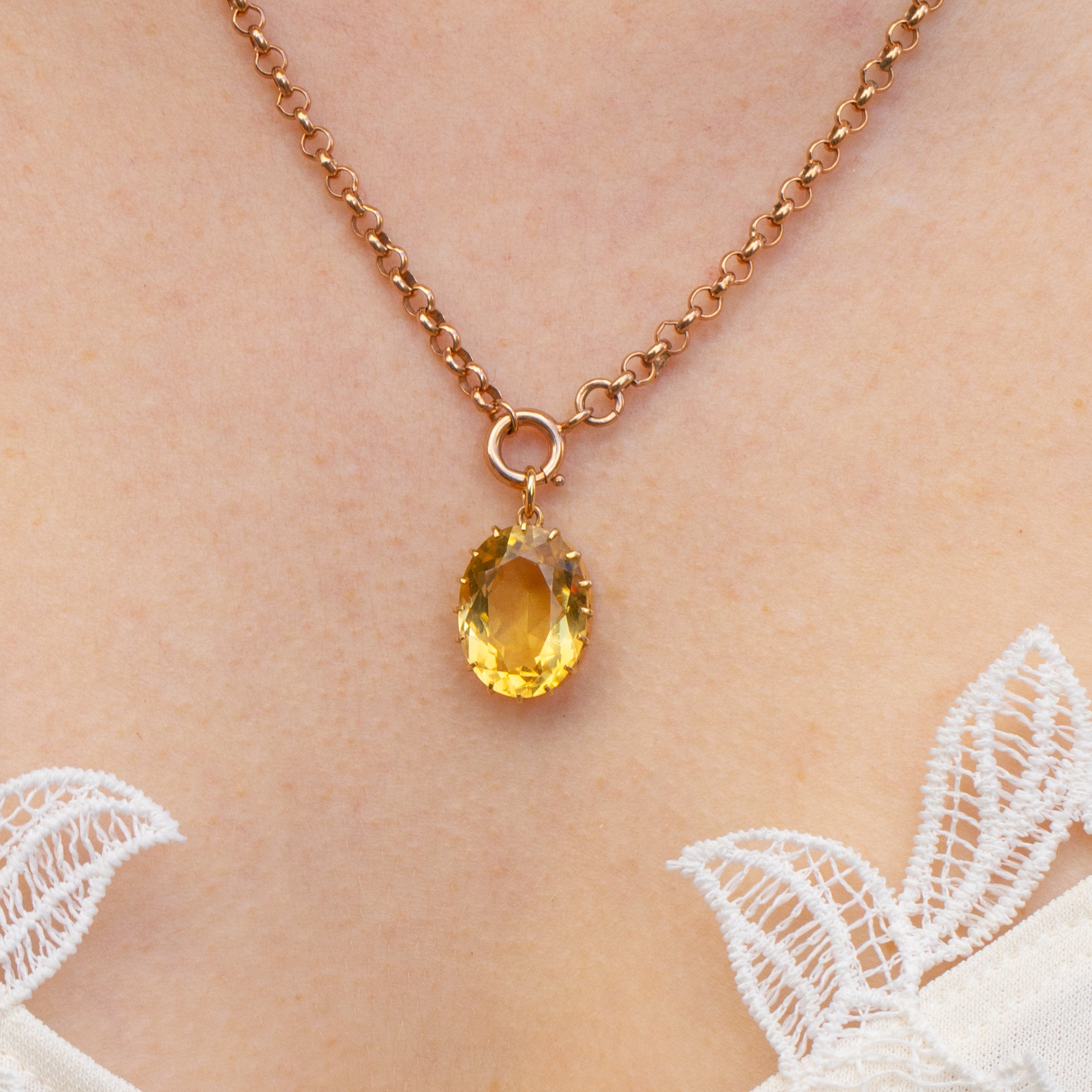 The deep profile and open gallery allow the light to stream through from every angle, creating quite the display as this Victorian Citrine pendant adorns your décolletage. The perfect summer accessory, you will find yourself reaching for this superb piece of antique jewellery often!
