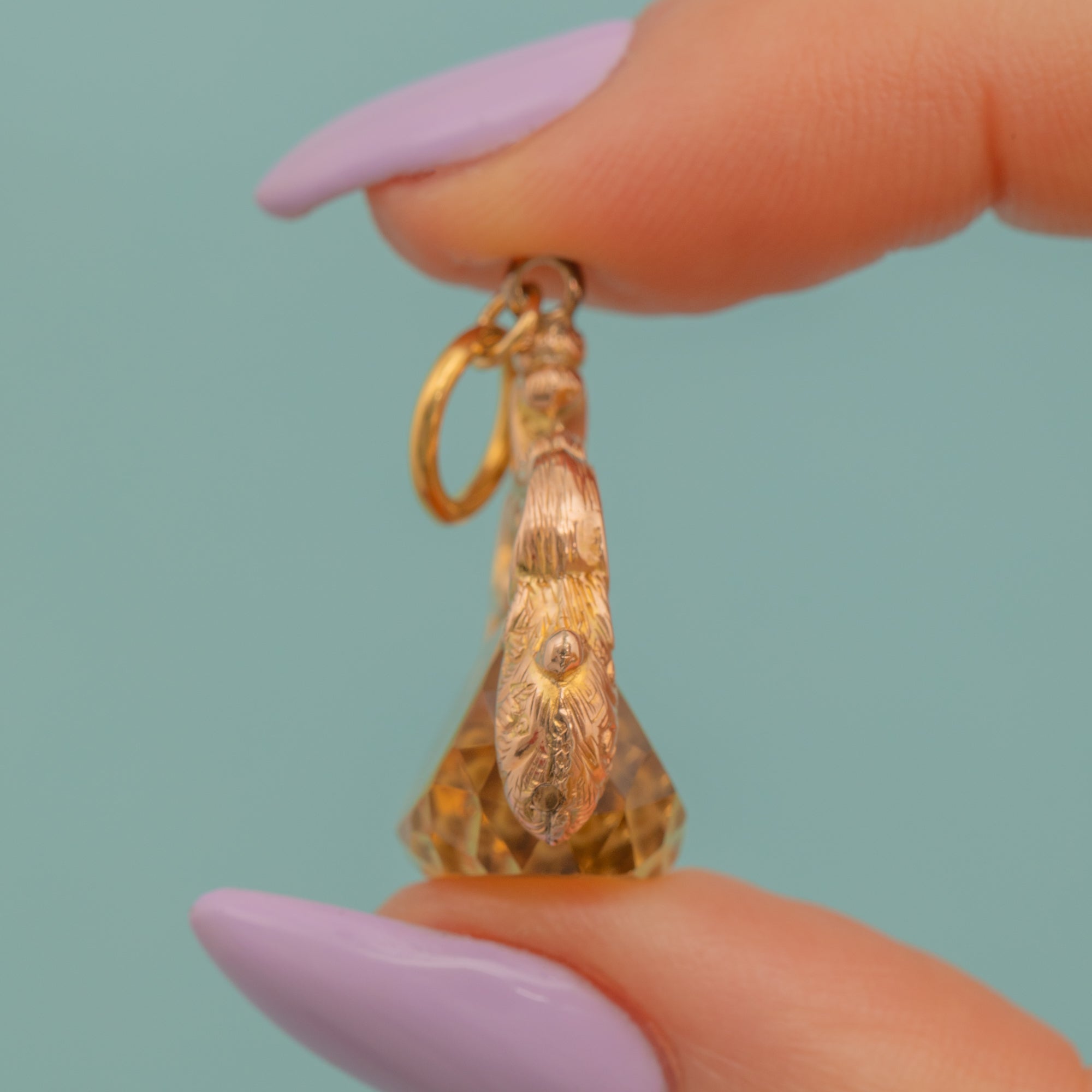 We're obsessed with this antique 15ct Gold Citrine spinner fob pendant! Exquisitely crafted from brightly saturated and rare 15ct Gold with a gorgeous ornate openwork bale suspending a canary yellow Citrine, this Victorian fob is a stunning unique pendant.