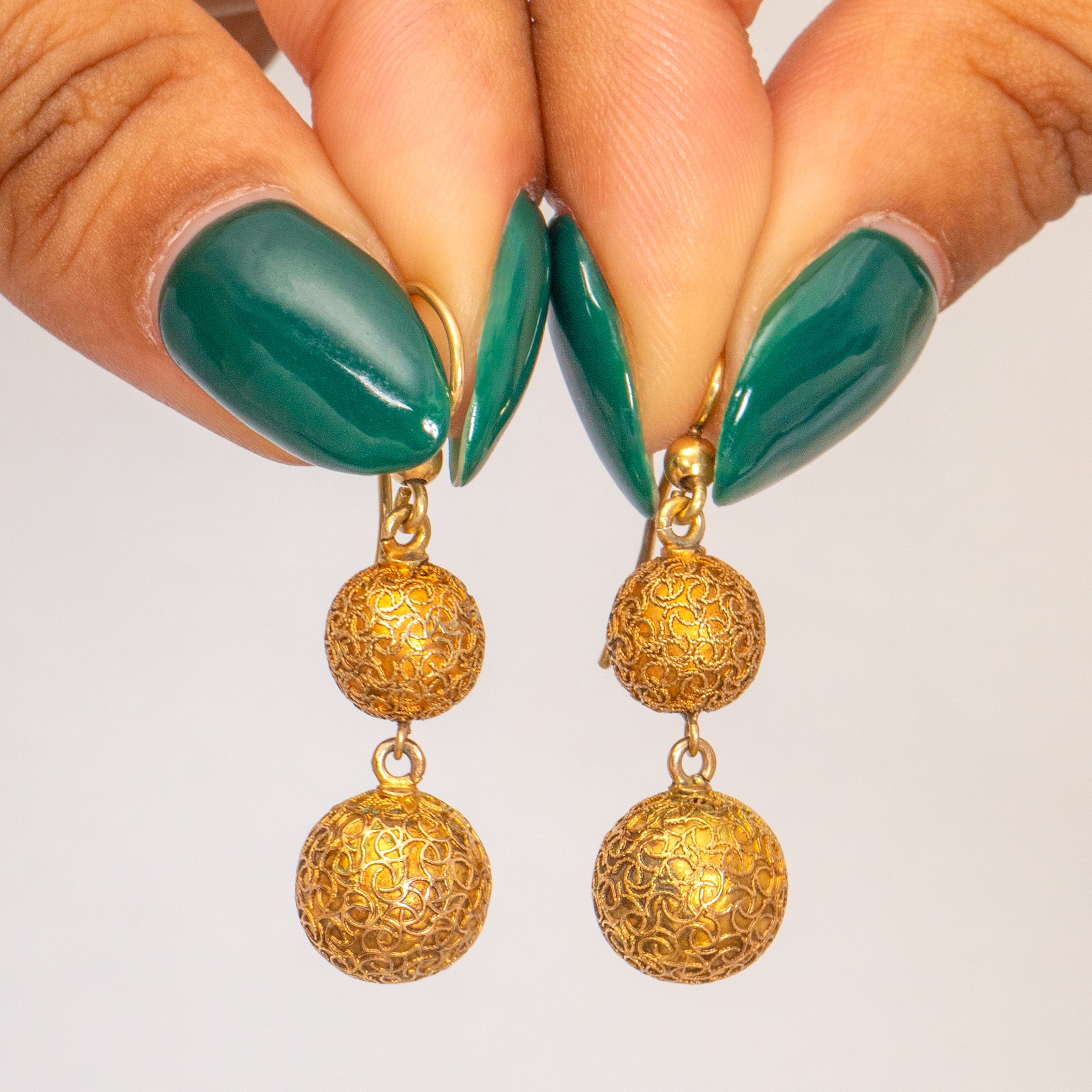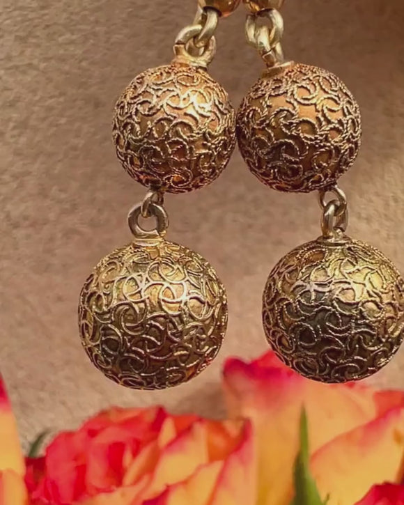 アンティーク 15ct ゴールド 装飾的なボールドロップイヤリング