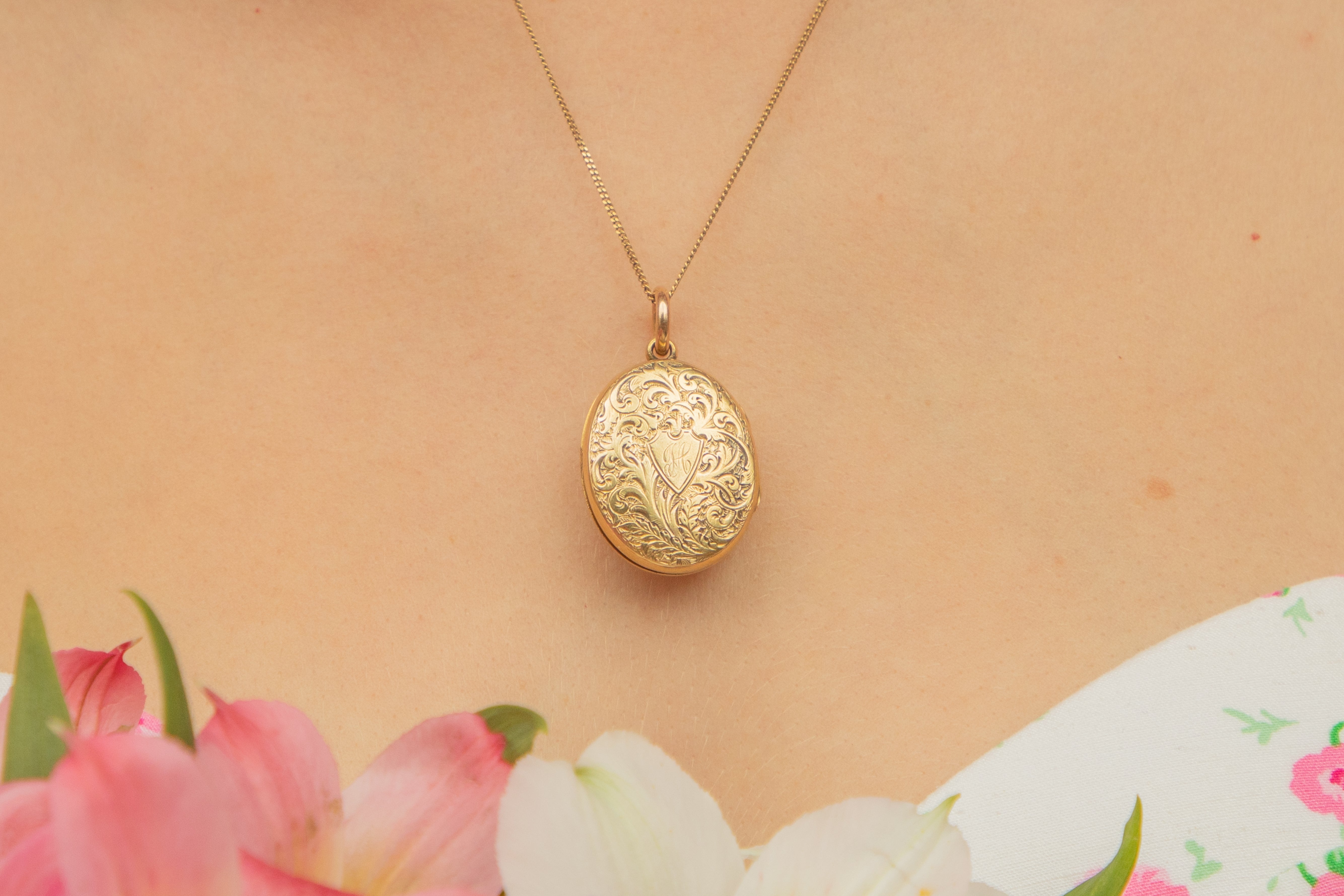アンティーク 15ct ゴールド 彫刻入りバックルロケット
