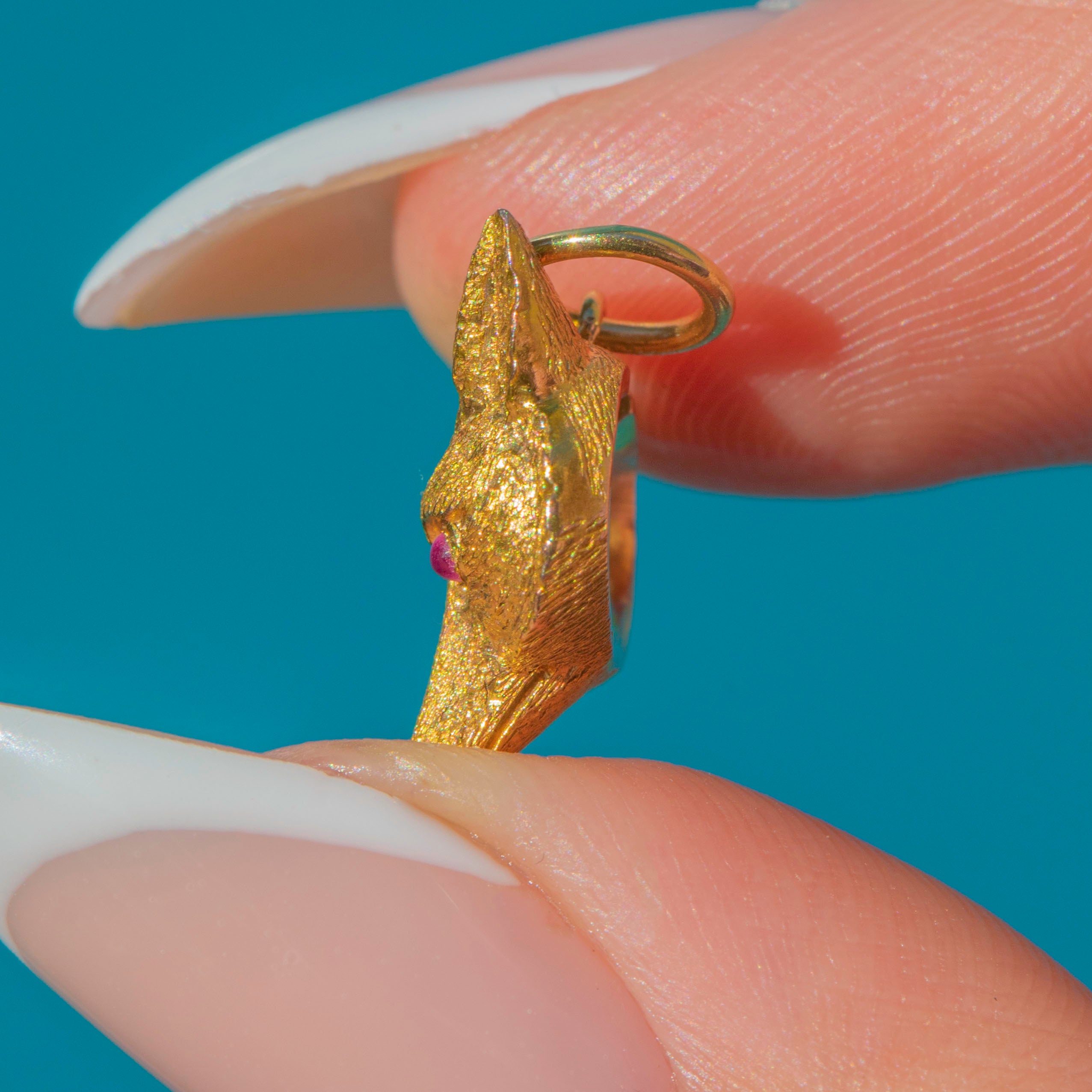 EXCELLENT. The Ruby eyes are bright and secure, the Gold surface is well-preserved with crisp detailing, and the charm presents beautifully overall.