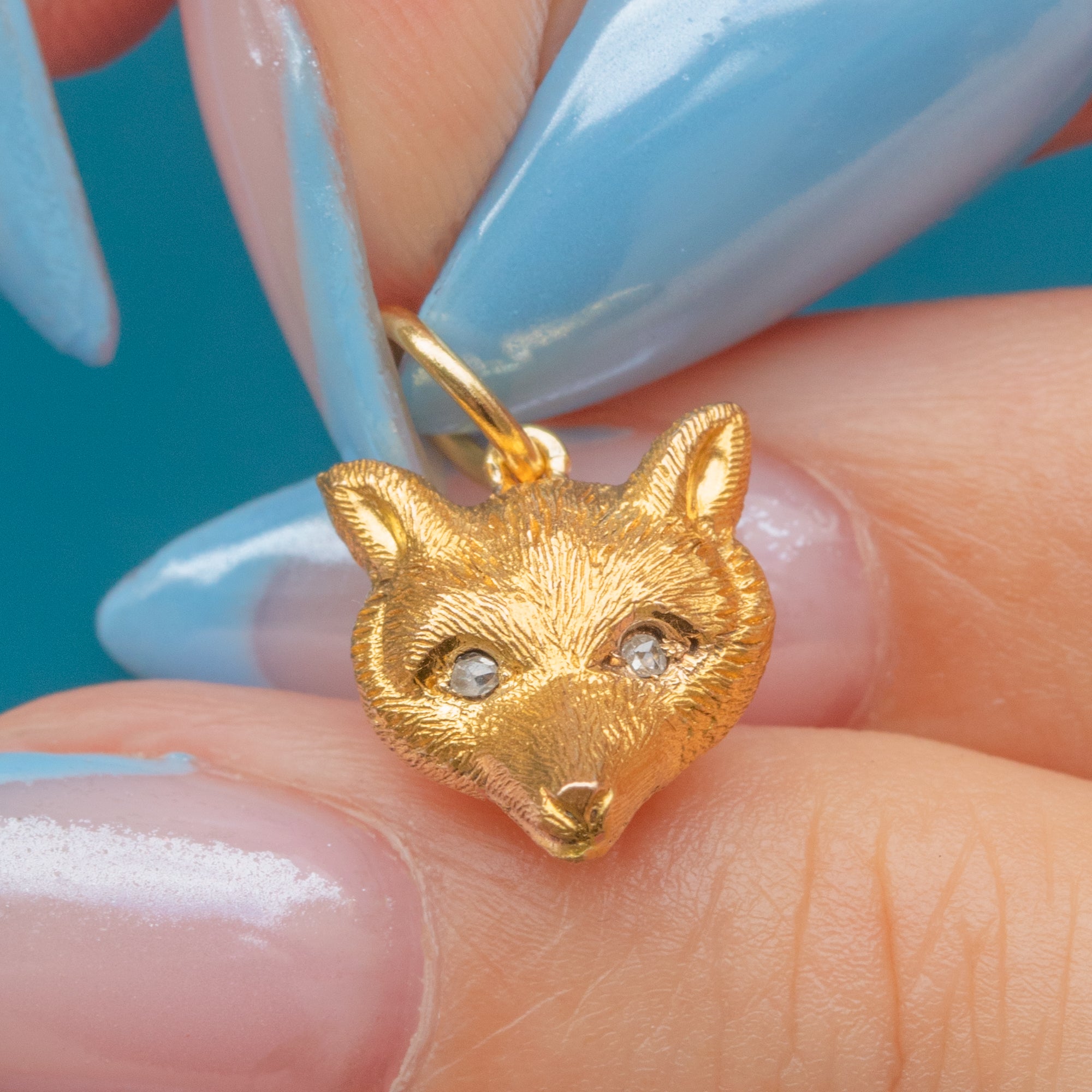 This 15ct Gold Victorian fox charm is exceptionally crafted, intricately engraved, and with rose-cut Diamond eyes that twinkle mischievously.