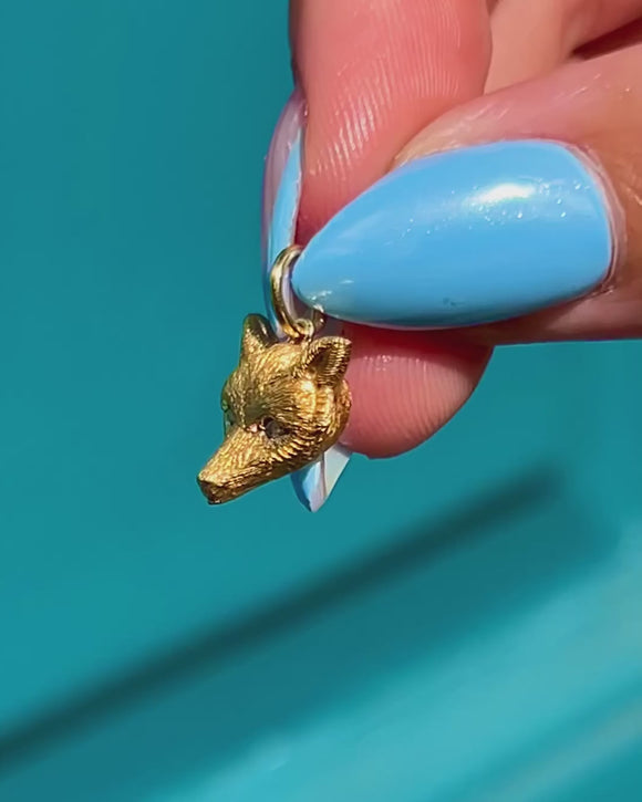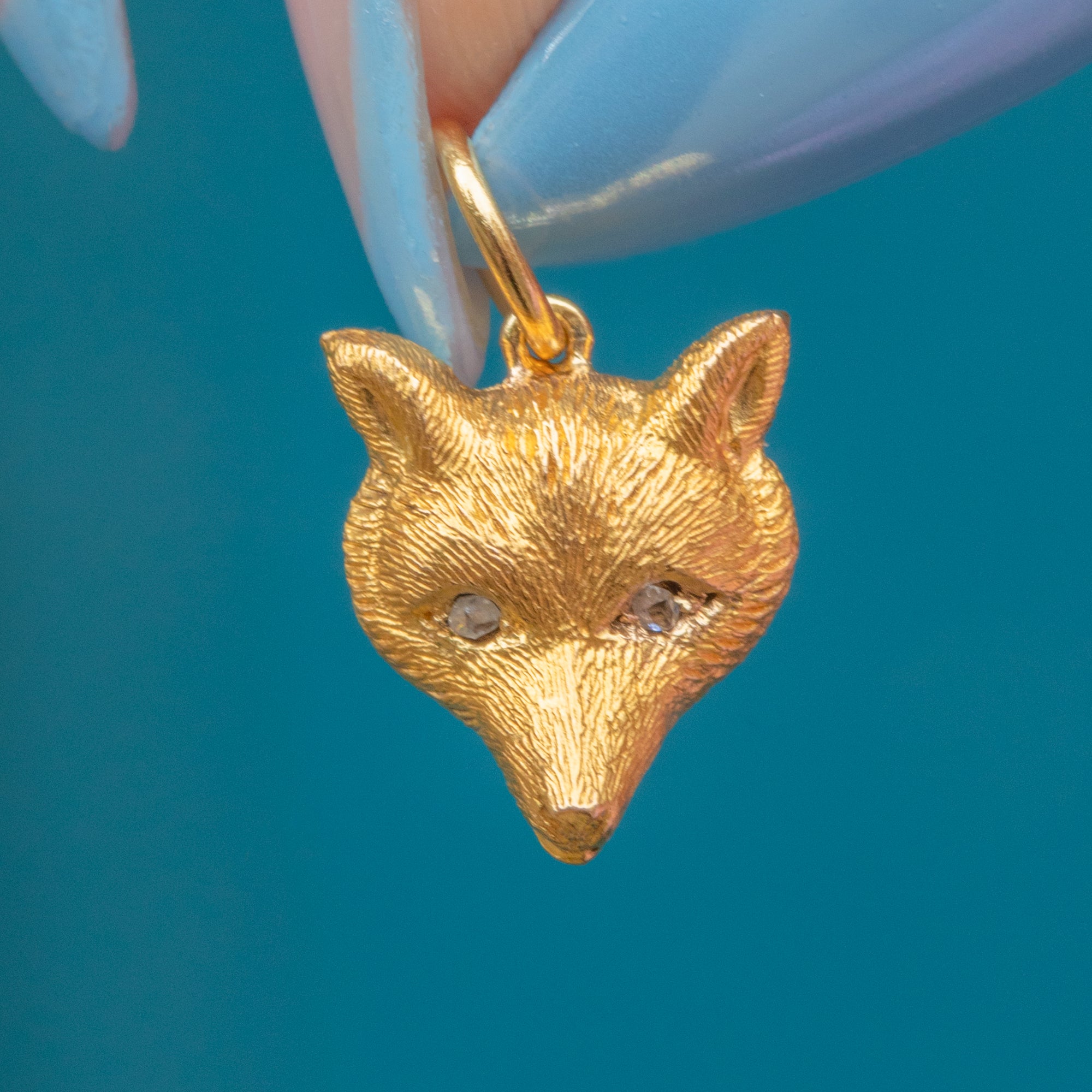 Antique 15ct Gold Fox Charm with Diamond Eyes