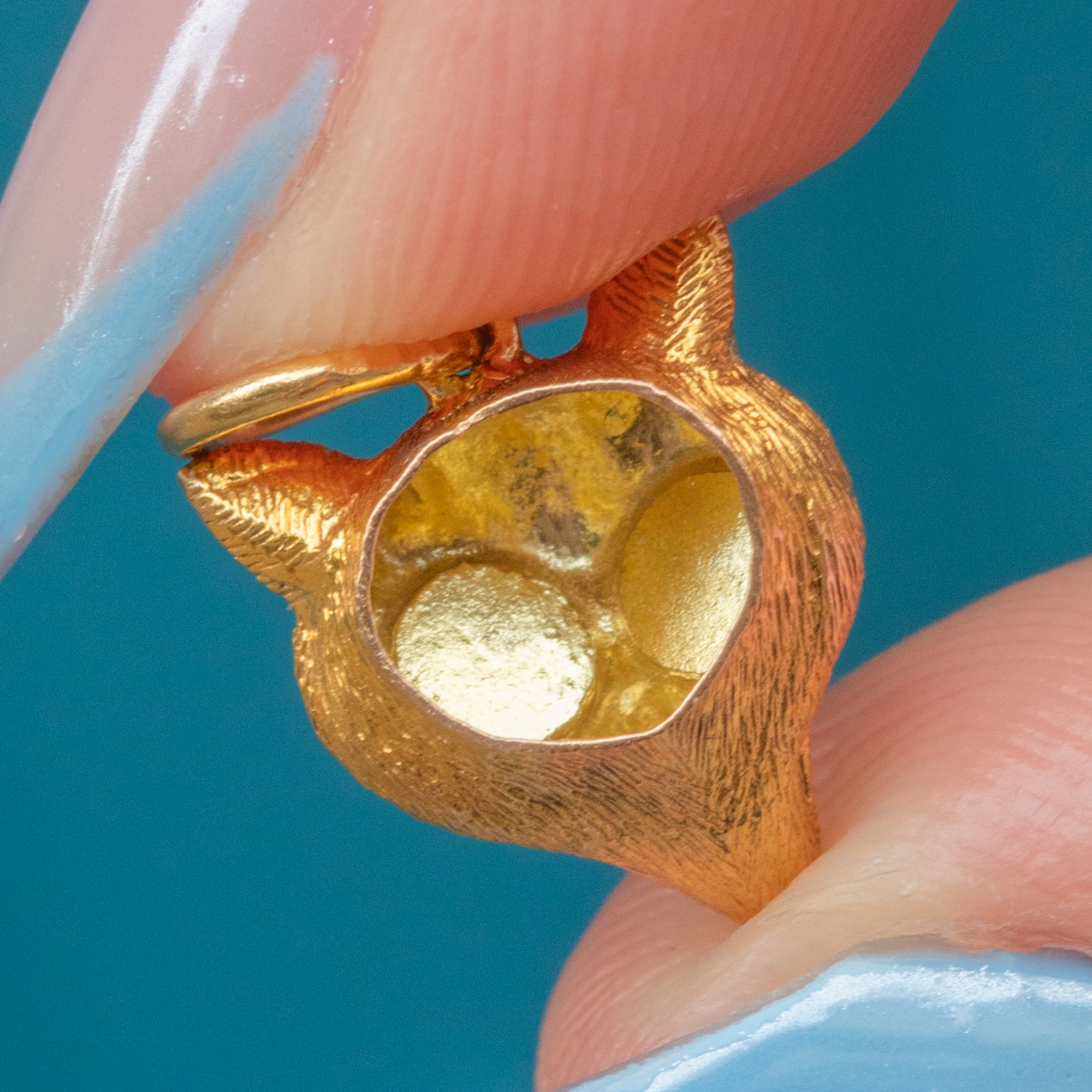 EXCELLENT. A fabulous 15ct Gold fox pendant. The Diamond eyes add a charming sparkle, there is little wear to the piece and it has a secure jump ring.