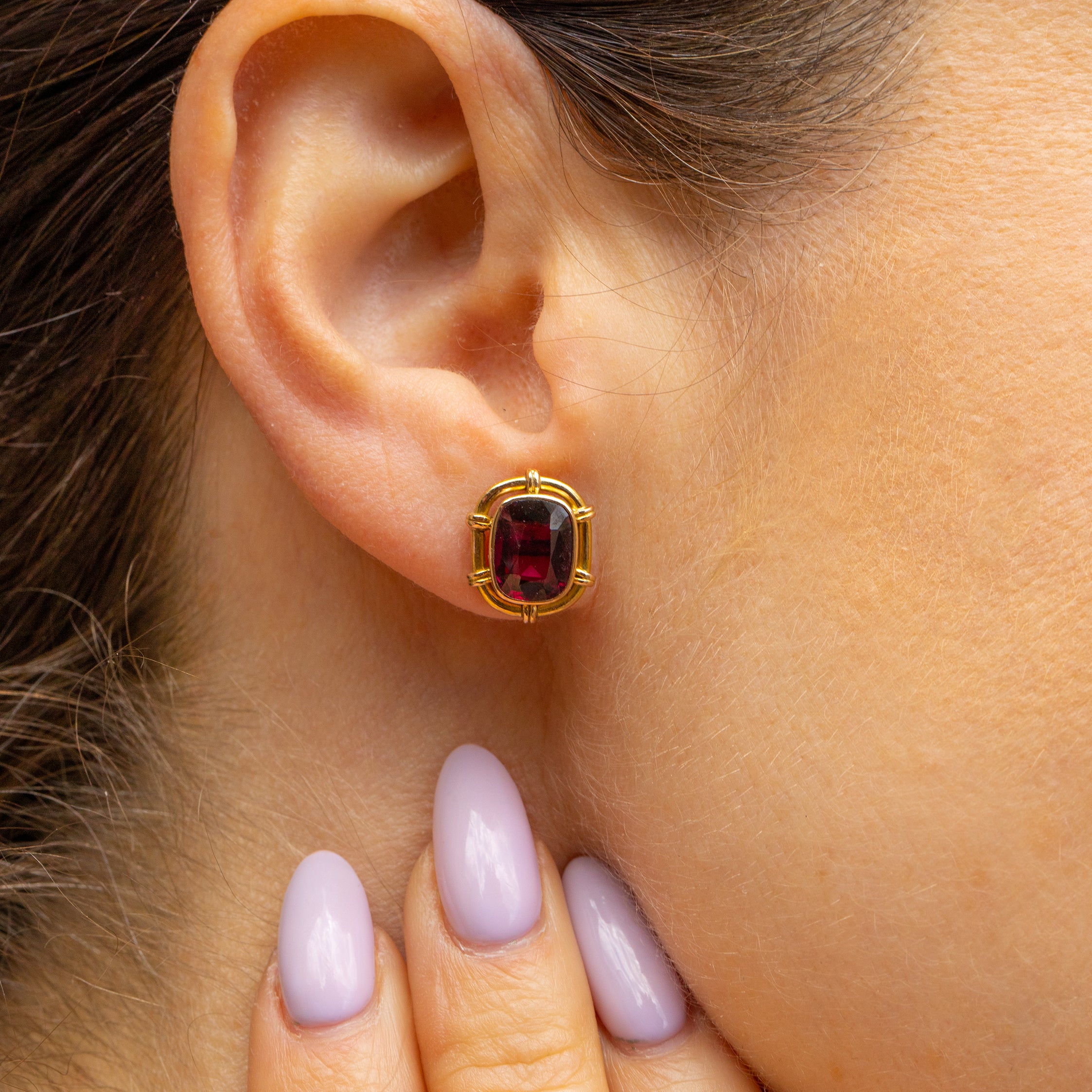 Exuding Victorian elegance, these antique 15ct Gold Garnet stud earrings will make a refined addition to your collection! Crafted from sumptuous 15ct Gold, each earring displays a deep cherry red Garnet revealing seductive flashes of crimson as the crisp cut facets catch the light.