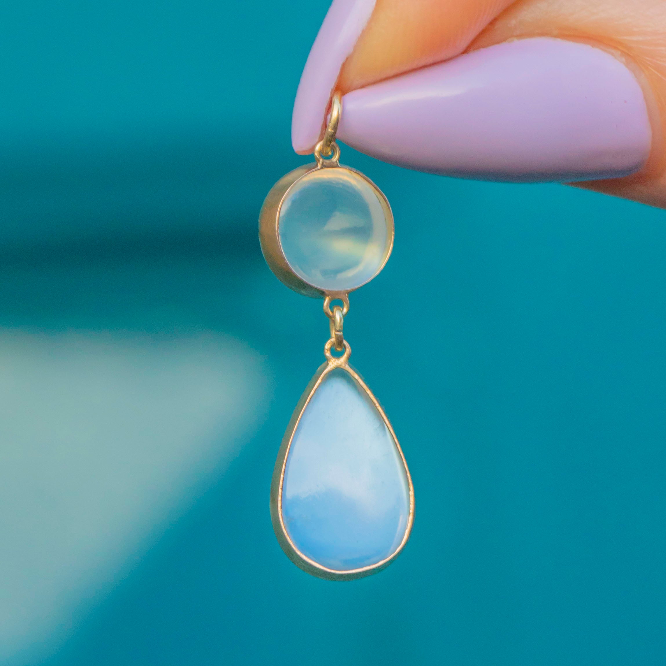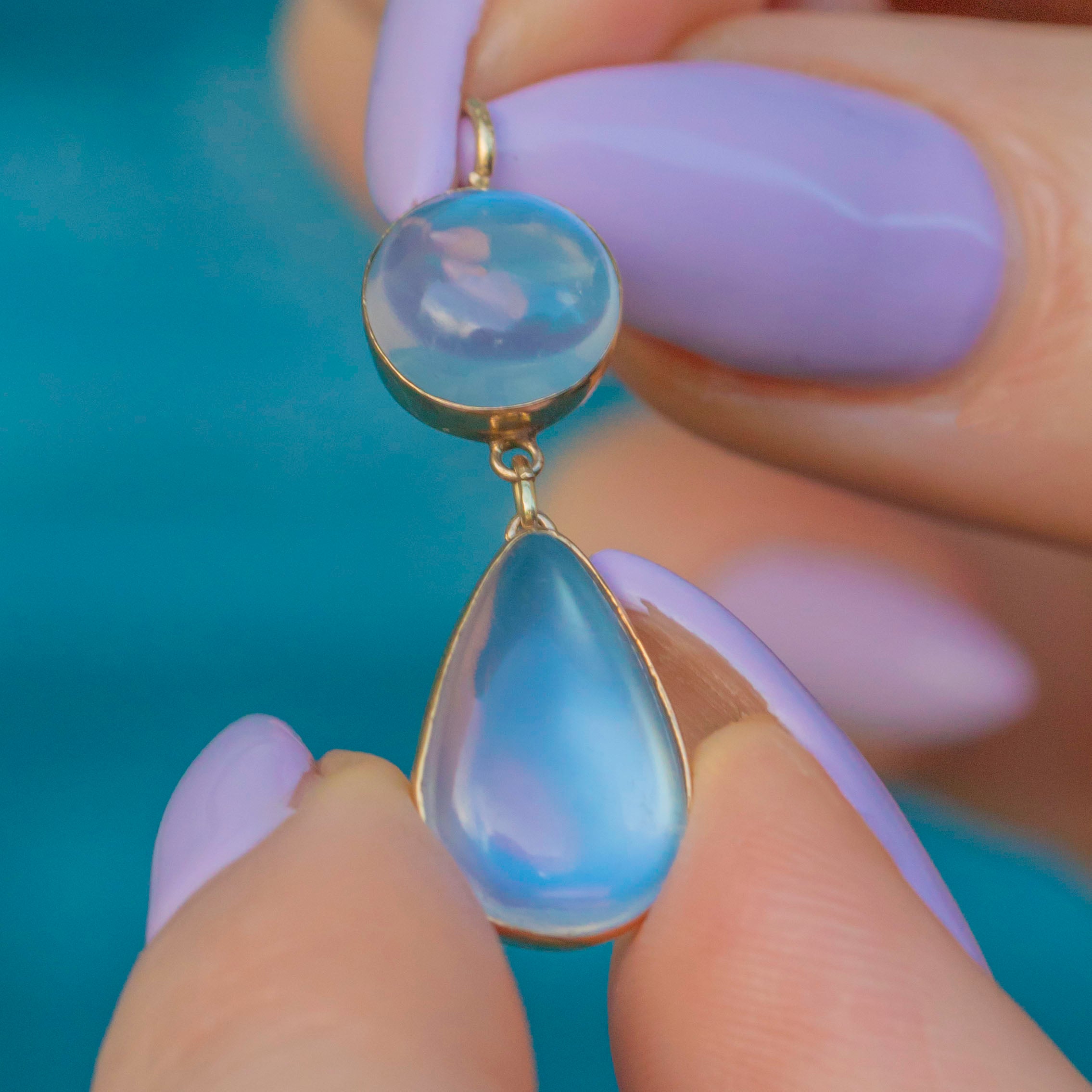Each plump Ceylon Moonstone catches the light beautifully, with a gorgeous shimmery adularescence. They are each set securely within their 15ct Gold bezel settings, the warmth effortlessly complimenting the milkiness of the Moonstones.
