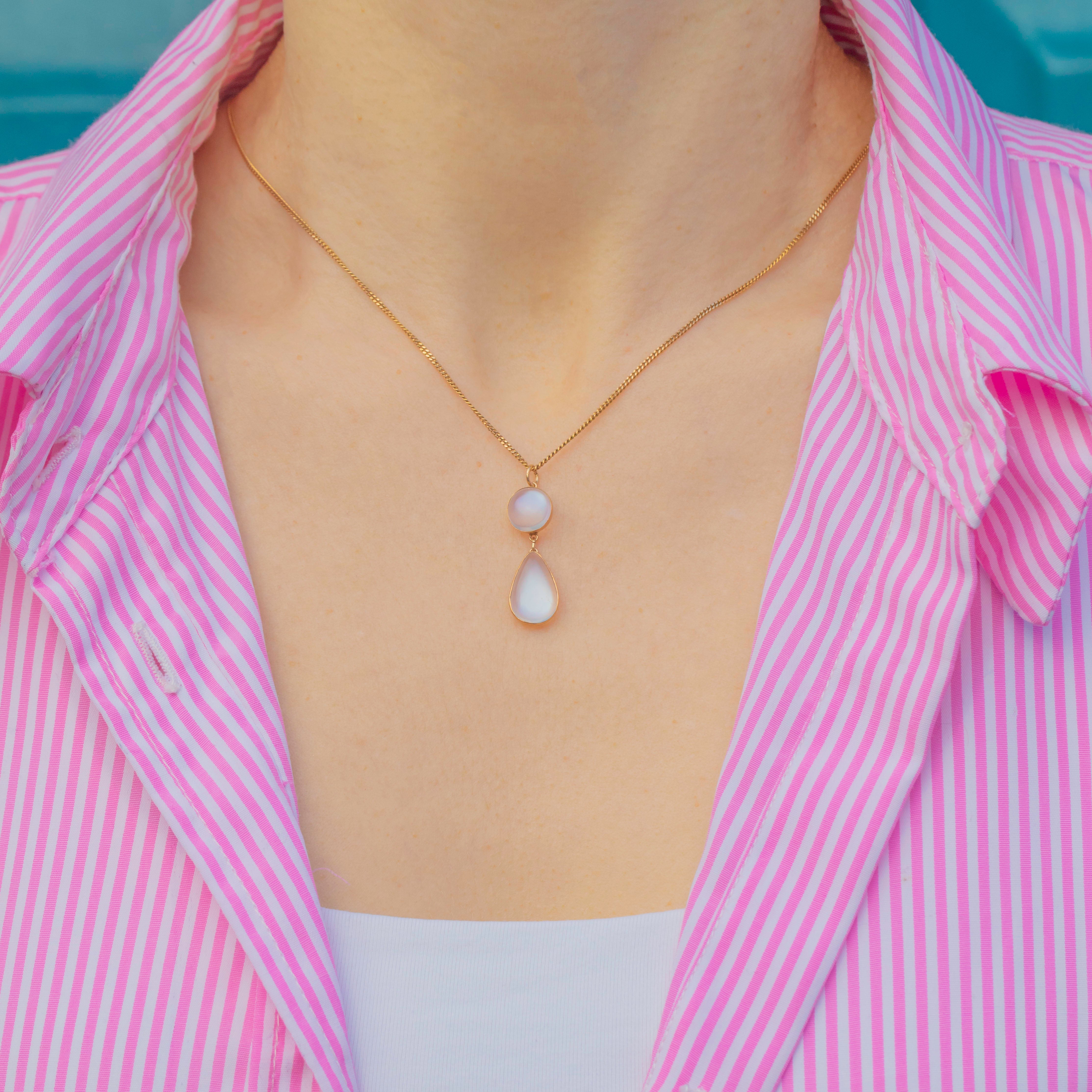 This curvaceous antique 15ct Gold Moonstone cabochon drop pendant will make a lovely addition to your necklace stack!