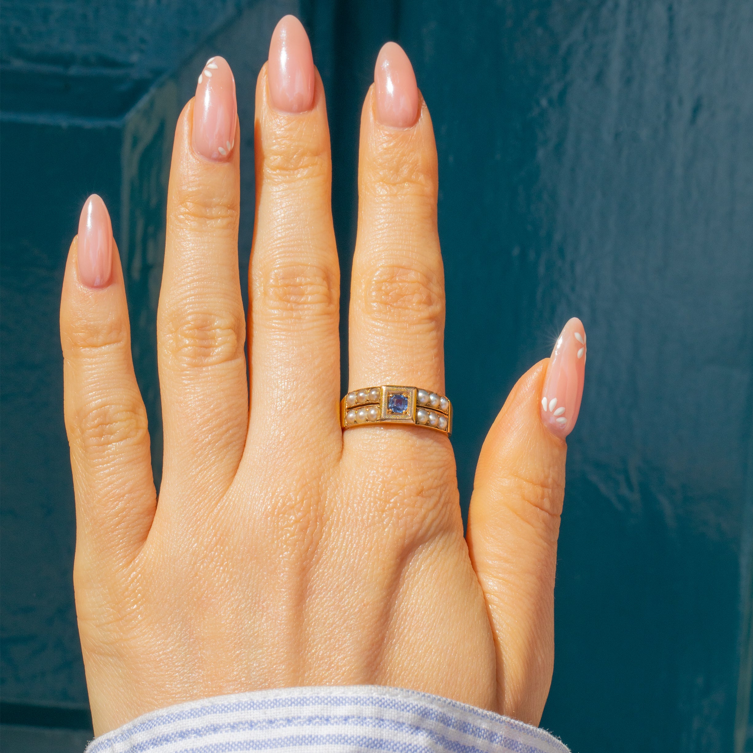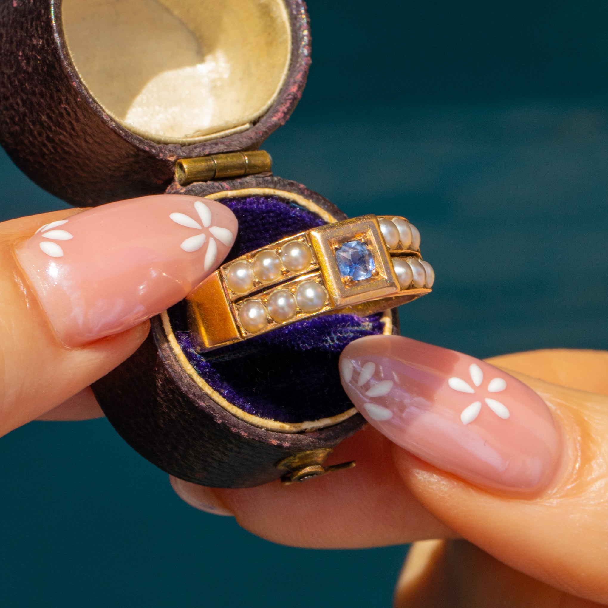 Antique 15ct Gold Natural Sapphire Pearl Ring, 0.20ct