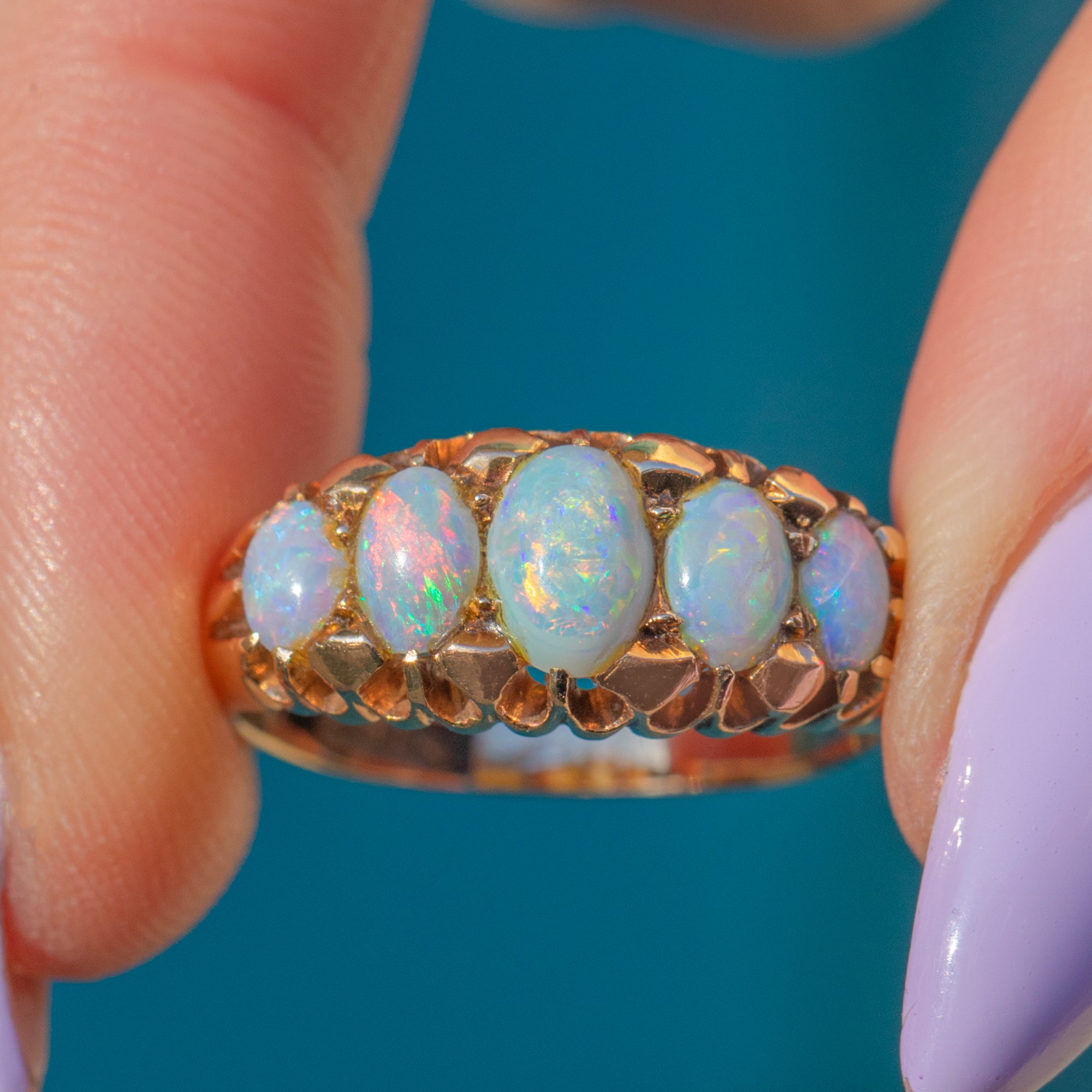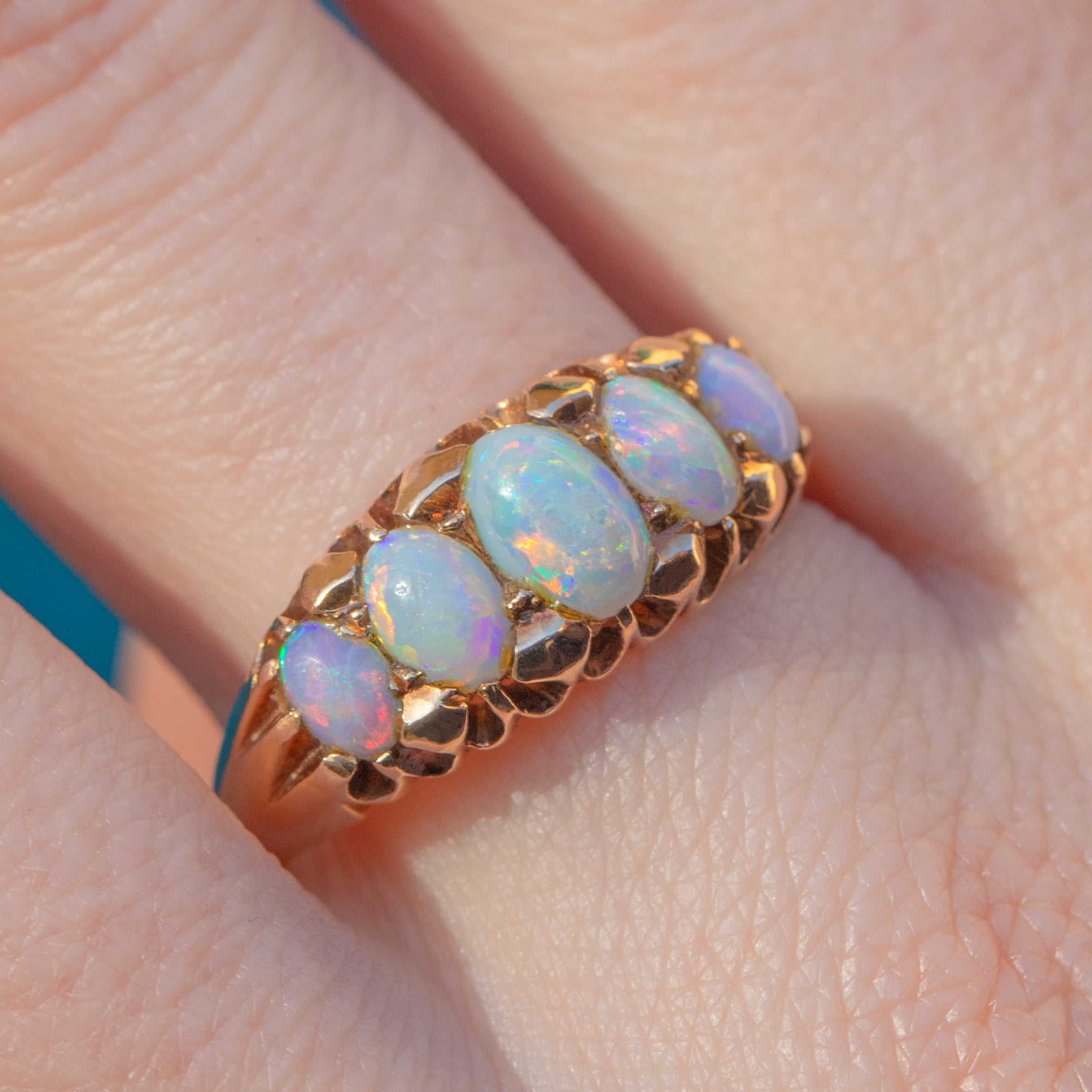 Antique 15ct Gold Opal Five Stone Ring, 1.18ct