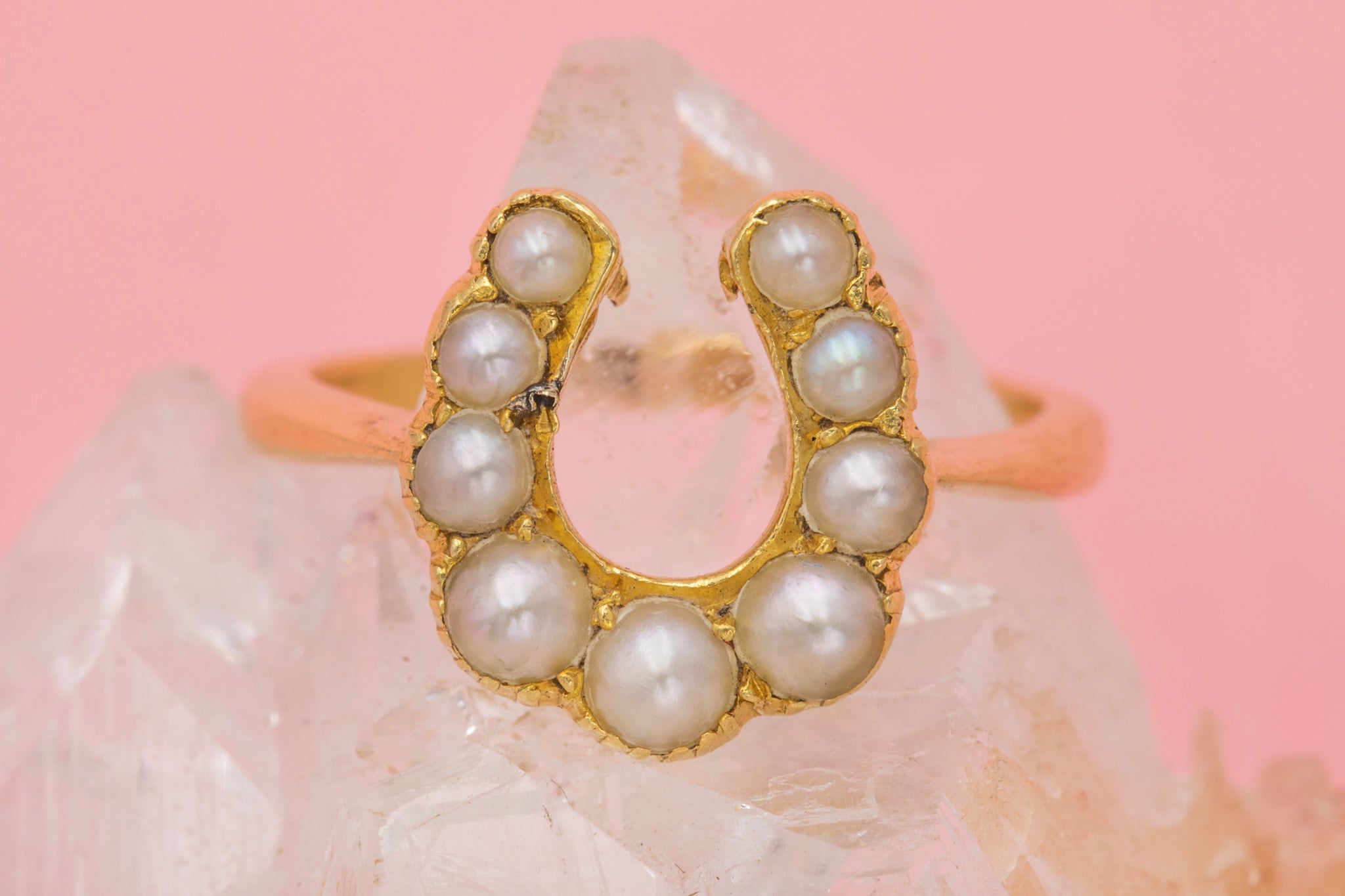 アンティーク 15ct ゴールド パール ホースシュー リング